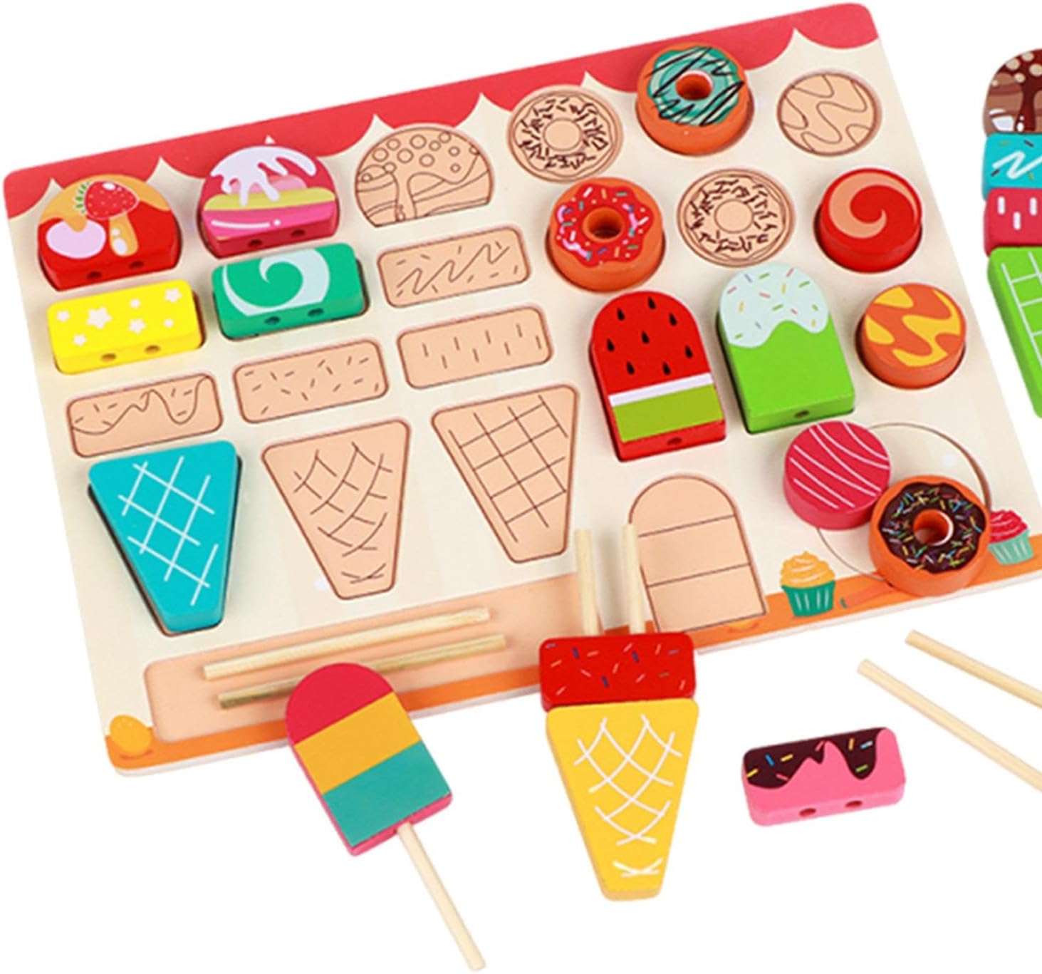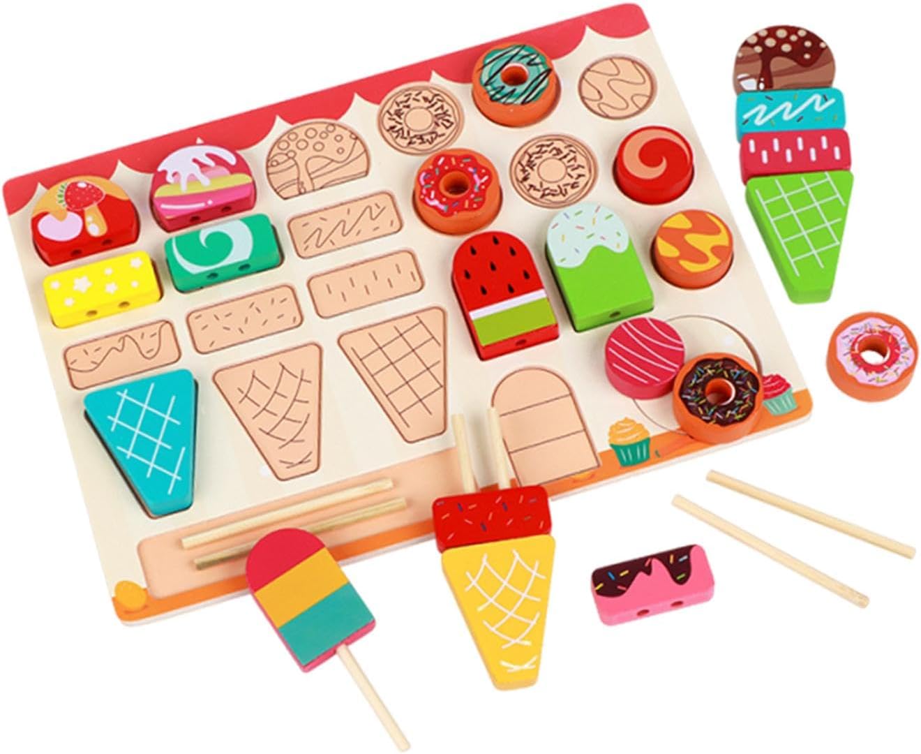 【Design realistico del gelato】: Ice Cream Toys presenta accessori per gelato realistici per il gioco di ruolo e promuove l'immaginazione dei bambini mentre si avvicinano del gioco di finzione 【Sviluppo delle capacità di equilibrio】: il design del set da gioco del gelato incoraggia i bambini a praticare e migliorare le loro capacità di equilibrio, rendendo il tempo di gioco sia divertente che educativo 【Materiale】: il bancone del gelato per bambini è realizzato in legno per resistere a un gioco entusiasmante mantenendo il suo aspetto affascinante 【Dimensioni compatte】: il gioco di finzione misura 30 cm x 22,5 cm x 0,6 cm / 11,81 pollici x 8,86 pollici x 0,24 pollici, una dimensione comoda per lo stoccaggio e il trasporto, adatta per l'uso domestico e in viaggio 【Ottimo regalo】: il set per gelato è un regalo ideale per bambini, ragazzi, ragazzi, ragazzi e ragazze