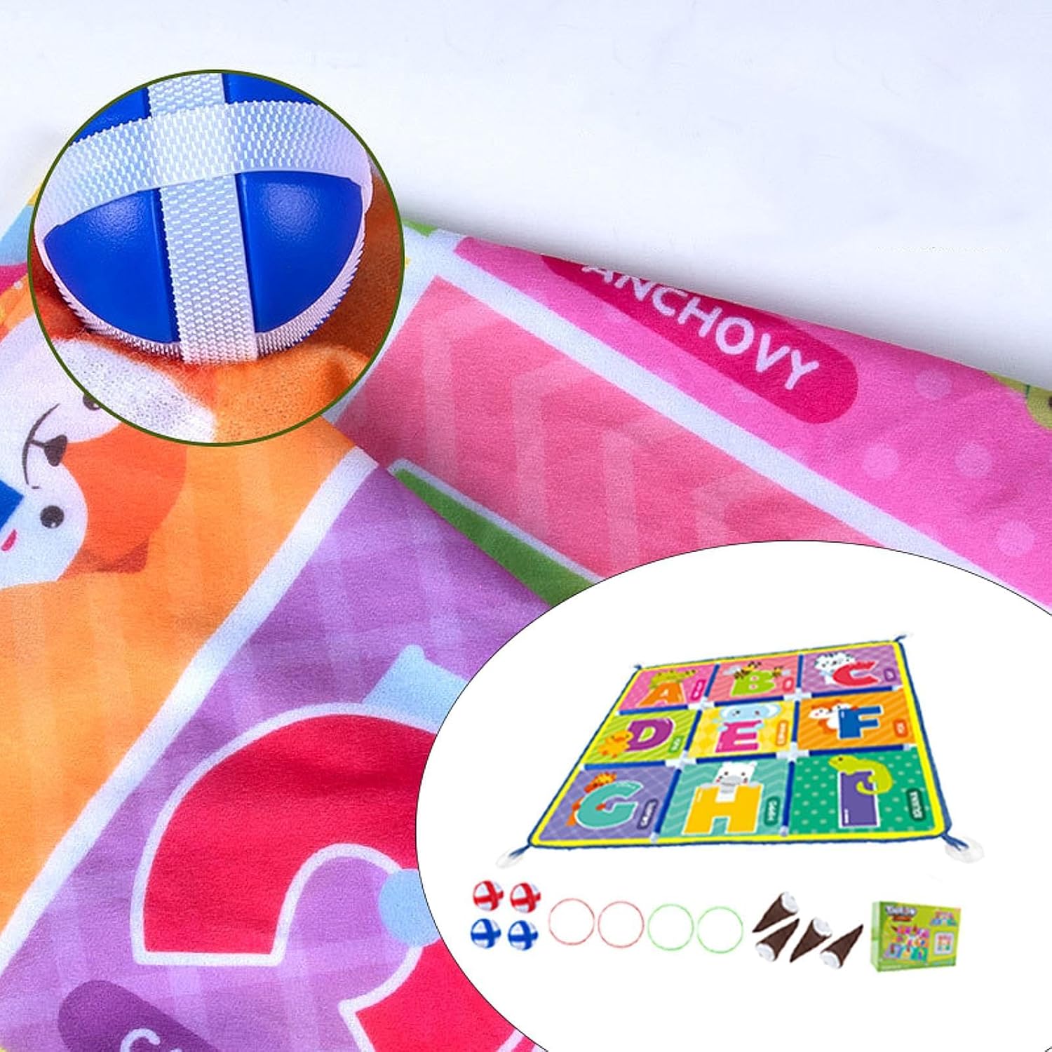 【Una divertente rivisitazione di un classico】: Lancio di dita dei piedi e anelli! Il grande tappetino da gioco in nylon presenta un design cartoon luminoso e che coinvolge immediatamente bambini e adulti. 【Installazione e portabilità senza sforzo】: inizia a divertirti in pochi secondi! Questo set di gioco leggero richiede meno assemblaggio: basta srotolare il tappetino e giocare. 【Gioco versatilnterni ed esterni】: non lasciare che il tempo la competizione! Realizzato in tessuto di nylon di qualità, questo gioco di lancio è abbastanza resistente per giocare sul prato all'aperto pavimenti interni. 【Ottimo per feste e legami familiari】: riunisci tutti per ore divertimento. Questo gioco interattivo è un fantastico rompighiaccio per le feste dei bambini, un ottimo strumento per esercizi di team building aziendale e un modo meraviglioso per incoraggiare l'interazione genitore-figlio durante i momenti di gioco . 【Tutte le occasioni】: questo gioco di lancio delle dita dei piedi è progettato per essere facilmente trasportato, rendendolo un'attività ideale da portare con sé nei parchi, nelle gite in spiaggia, nelle feste in giardino e nelle visite