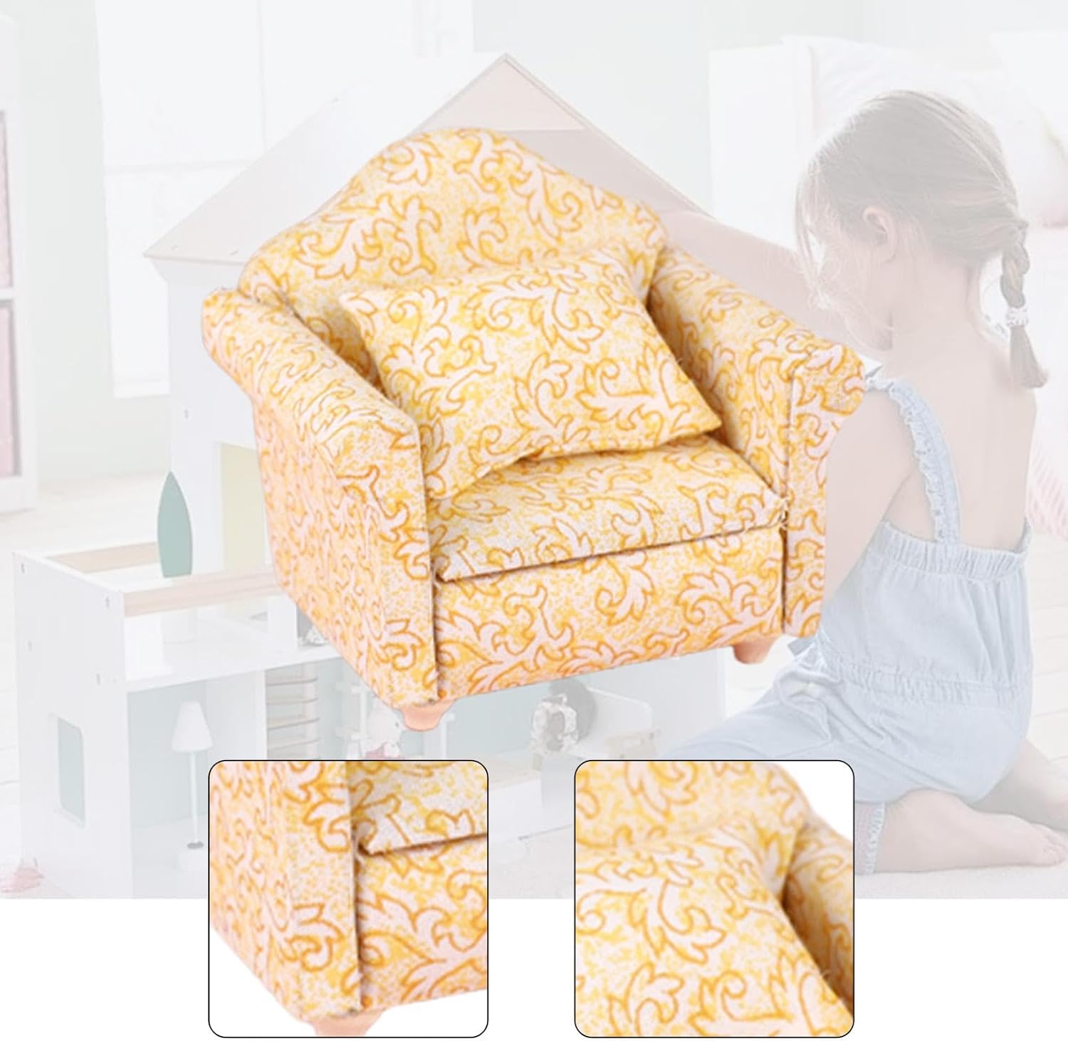 【Tipo di prodotto】: modello di mini divano, mobili per casa delle bambole in miniatura 1:12, semplici ed eleganti 【Accessori per la casa delle bambole】: il divano di simulazione per la casa delle bambole è una bella aggiunta alla decorazione della casa delle bambole e al supporto fotografico 【Materiale di alta qualità】: l'accessorio per la casa delle bambole in miniatura è realizzato in legno e tessuto, pregevole fattura e dettagli delicati, robusto e garantisce un lungo utilizzo 【Ampie applicazioni】: il divano giocattolo per casa delle bambole 1/12 è adatto per vari decori di micro paesaggi e decorazioni di scene di case delle bambole, come il soggiorno, la camera da letto, , ecc. 【Ottimo regalo】: il mini divano è un grazioso accessorio per la casa delle bambole, un oggetto di scena per foto e un giocattolo di finzione per bambini, un bel oggetto di scena per giochi fantasiosi e un'ottima scelta regalo