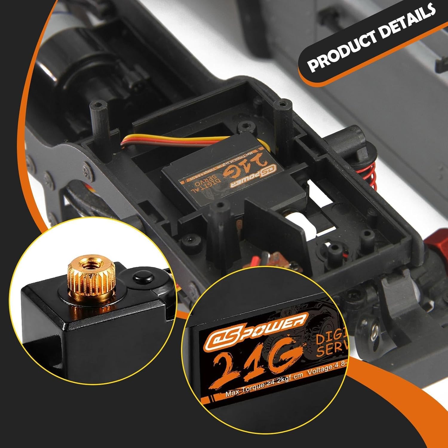 【Compatibile con】: il servo digitale con ingranaggi da 21 g è adatto per modelli di auto modello MN82, MN99S, MN168, 7MN8 e RC in 1/12 per aggiornamenti versatili 【Ingranaggio】: Il Micro Mini Servo per modelli in 1/12 è dotato di un design degli ingranaggi che resiste a carichi più elevati e prolunga significativamente il tempo di utilizzo del servo 【Design impermeabile】: il Mini Servo è realizzato in materiale metallico di qualità, impermeabile e robusto, garantendo prestazioni affidabili in varie condizioni meteorologiche 【Coppia elevata】: il mini servo con ingranaggi da 21 g offre una coppia elevata (fino a 4,20 kgf·cm a 6,0 V) e una velocità fino a 0,10 sec/60°, ideale per applicazioni RC impegnative 【La confezione include】: Ogni confezione include un servo digitale JST2.54 da 21 dimensioni di 2,96 cm x 1,32 cm x 4 cm/1,17 pollici x 0,52 pollici x 1,57 pollici e un braccio servo
