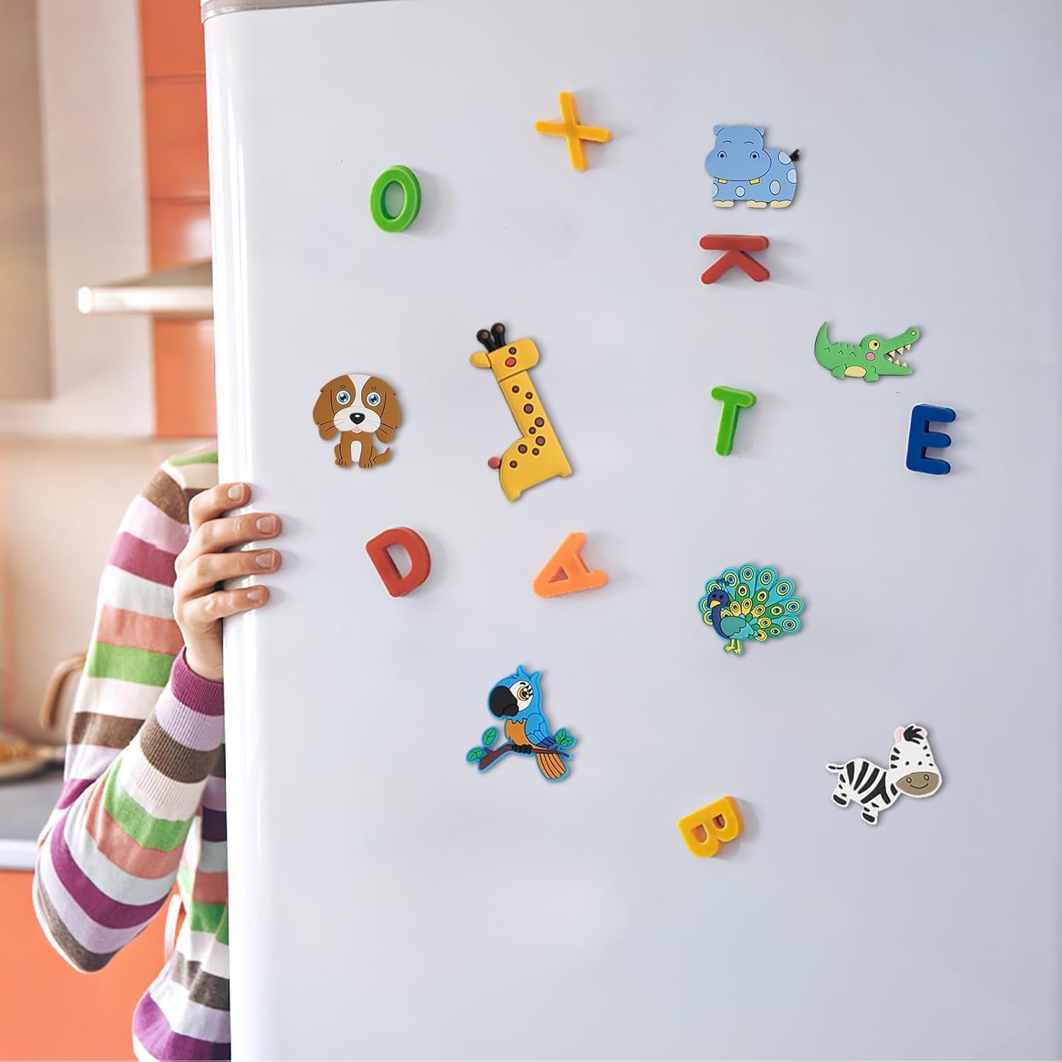 Sicurezza e Qualità Garantite: Realizzati in gomma morbida di alta qualità, questi magneti per bambini sono completamente sicuri e privi di componenti nocivi. La loro robustezza li rende ideali per l'uso quotidiano senza il rischio di danneggiarsi o perdere la loro forza magnetica. Design Attrattivo e Funzionale: Ogni magnete è progettato con colori vivaci e forme amichevoli di animali, che catturano l'attenzione dei bambini e stimolano la loro curiosità naturale. La dimensione di ciascun magnete è studiata per adattarsi perfettamente alle mani piccole, facilitando la presa e il movimento. Educativo e Stimolante: Questi magneti non sono solo divertenti, ma anche strumenti educativi che aiutano i bambini a imparare gli animali, i colori e le forme. Sono perfetti per incoraggiare l'interazione, il gioco di ruolo e lo sviluppo del linguaggio nei primi anni di crescita. Versatilità d'Uso: Utilizzabili su qualsiasi superficie magnetica, questi magneti sono perfetti per frigoriferi, lavagne bianche, e altri pannelli magnetici. Questa caratteristica li rende un ottimo strumento didattico sia a casa che in ambienti educativi come scuole materne e asili. Regalo Ideale per lo Sviluppo Precoce: Il set di magneti è un regalo pensato per stimolare l'apprendimento e l'intrattenimento dei bambini. È ideale per compleanni, festività e come supporto educativo prescolare, promuovendo l'apprendimento attraverso il gioco.