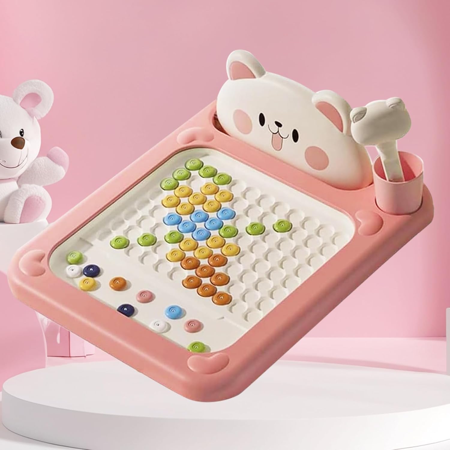 Costruzione di qualità: realizzata in materiale ABS ad alte prestazioni, la lavagna magnetica garantisce una lunga durata mantenendo il suo aspetto elegante, rendendola ideale per aule, case o spazi creativi Rafforzamento legami familiari: Con il suo design da lavagna magnetica, questo prodotto permette di disegnare e ricalcare con tratti ben visibili grazie alla tecnologia color line display, favorendo un modo piacevole per migliorare le connessioni emotive durante momenti condivisi Risparmio creativo di risorse: La lavagna magnetica a punti offre un pulsante scorrevole per rimuovere i agevolmente, incoraggiando la creatività senza sprechi; le superfici magnetiche portatili e leggere assicurano comodità in casa o all'aperto, migliorando l'esplorazione artistica con funzionalità riutilizzabili. Controllo Mano Potenziato: La lavagna magnetica a punti supporta lo sviluppo del bambino guidando le corrette pratiche di impugnatura, rinforzando i muscoli della mano e affinando le capacità motorie, rendendola scelta ideale per ambienti di apprendimento della prima infanzia in interni ed esterni Stimolazione Forme e Logica: La lavagna magnetica a punti per bambini stimola il riconoscimento delle forme e la logica con modelli integrati di lettere e numeri, soddisfacendo le esigenze di sviluppo cognitivo precoce in modo e creativo, creando un ambiente coinvolgente per migliorare la creatività e le capacità osservative durante il gioco pratico con attività manuali educative e divertenti per l'apprendimento base