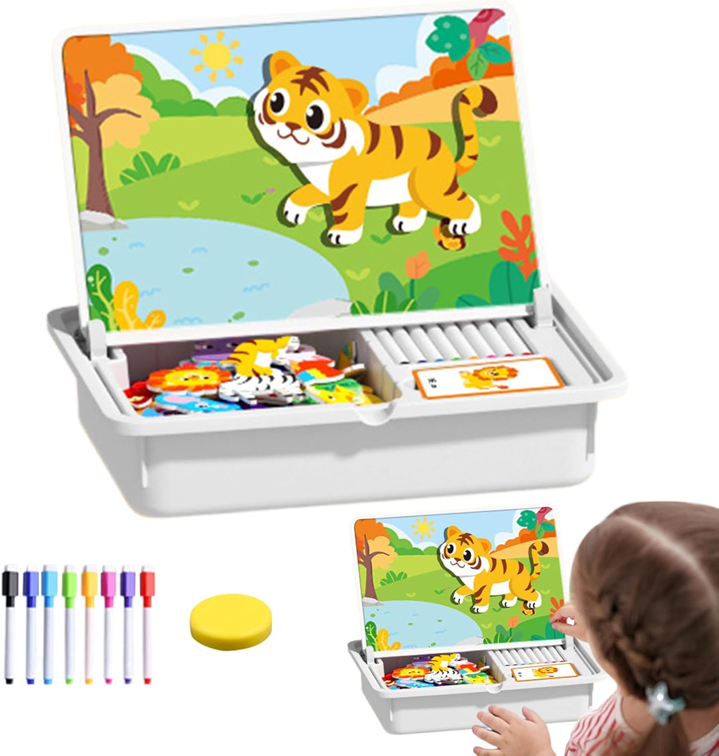 Strumento Creativo: Il puzzle magnetico permette ai bambini di mischiare e abbinare diverse combinazioni di acconciature, outfit e , accendendo l'immaginazione e soddisfando le esigenze creative, favorendo giochi interattivi Gioco creativo educativo: Questo magnetic puzzle game offre ore di esplorazione creativa per bambini, potenziando l'esperienza di apprendimento in ambienti prescolari e aggiungendo gioia ad occasioni speciali come Natale o compleanni, assicurando una scelta ponderata per genitori che cercano opzioni di gioco versatili e stimolanti per lo sviluppo infantile Costruzione Affidabile: Realizzato in materiali ABS di alta qualità, questo puzzle magnetico per bambini vanta una struttura robusta resistente a . I bordi lisci e arrotondati aggiungono un ulteriore livello di sicurezza, rendendolo adatto per lunghi periodi di gioco. Supporta lo sviluppo cognitivo mantenendo i bambini impegnati in ambienti protetti Gioco che Accende l'Immaginezione: Grazie alla capacità di stimolare la creatività e potenziare la coordinazione occhio-mano, questo puzzle magnetico trasforma il momento di gioco in un'esperienza di apprendimento coinvolgente, per suscitare curiosità e innovazione nei bambini mentre si divertono a risolvere puzzle da soli o con amici Opzioni Artistiche Infinite: Design a doppio scopo con lato patternato per costruire disegni e lato bianco per disegnare, questo puzzle magnetico promuove lo sviluppo cognitivo e funziona come strumento interattivo per gioco educativo e divertente per bambini e famiglie