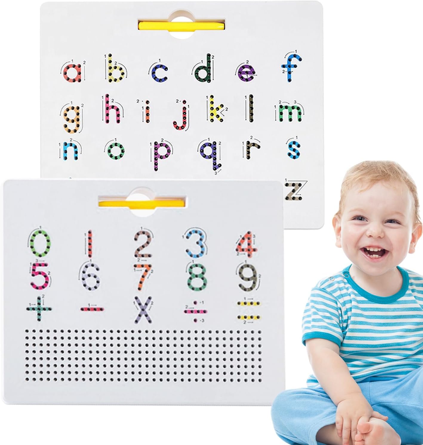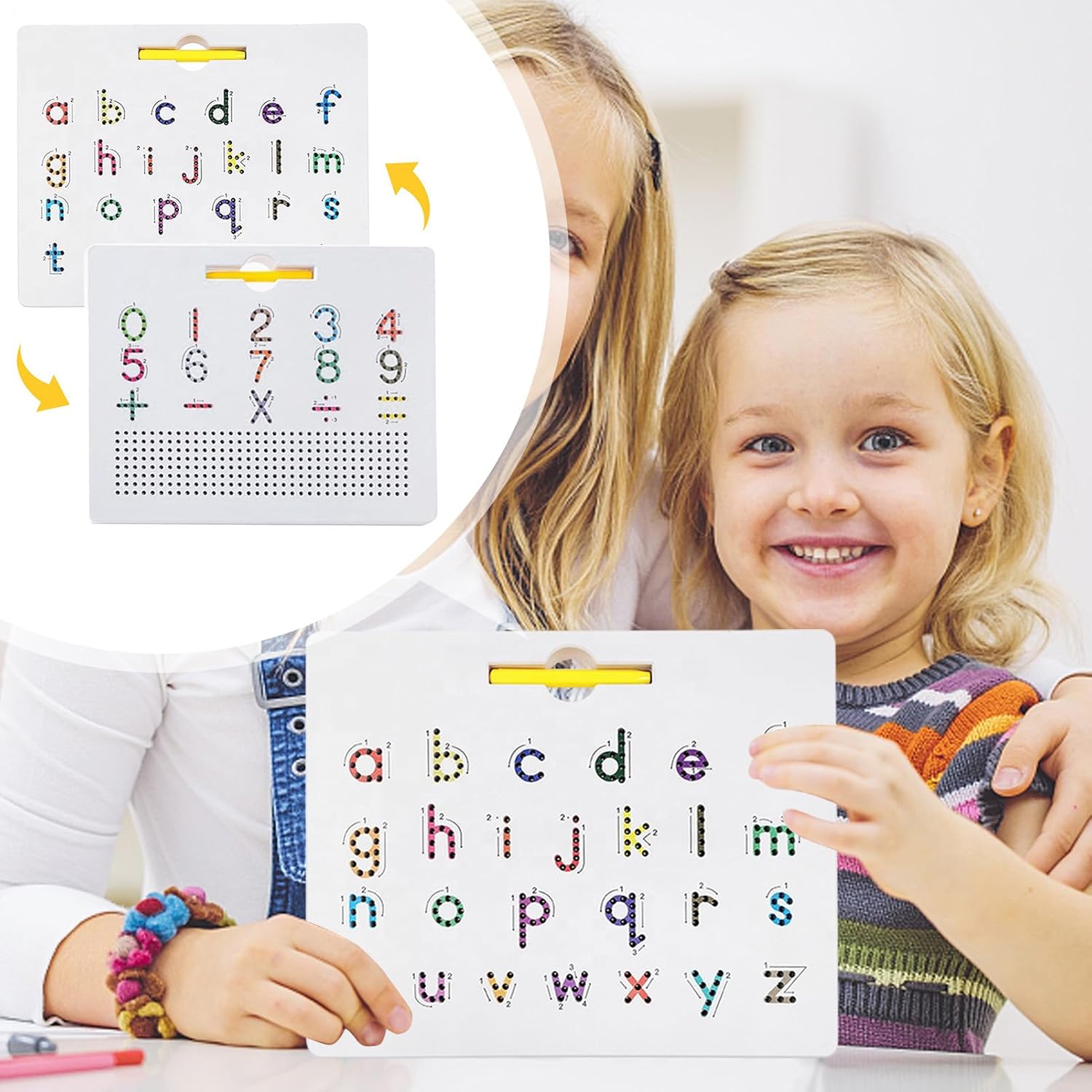 Magnetic Alphabet Tracing Board For : Features uppercase and lowercase letters on opposite sides allowing kids to practice letter formation and recognition while boosting early writing skills and muscle memory Educational STEM Toy With Magnetic Pen: Includes a that pulls beads up as children trace the letters providing tactile and visual feedback which enhances fine motor development and pre-writing confidence in and preschoolers Lightweight And Travel-Friendly Letter Board: Compact and easy to carry for learning on the go whether used during travel road trips or quiet time at home making it a useful resource for keeping focused and entertained Double-Sided Learning Playboard For Enhanced Engagement: Combines learning and fun with two activity sides that keep children engaged for longer perfect for home school or classroom use as part of a daily educational routine Safety Material For Kids' Daily Use: Crafted from high-quality ABS this tracing board is built to withstand enthusiastic learning while being safe smooth and easy to clean for repeated use over time