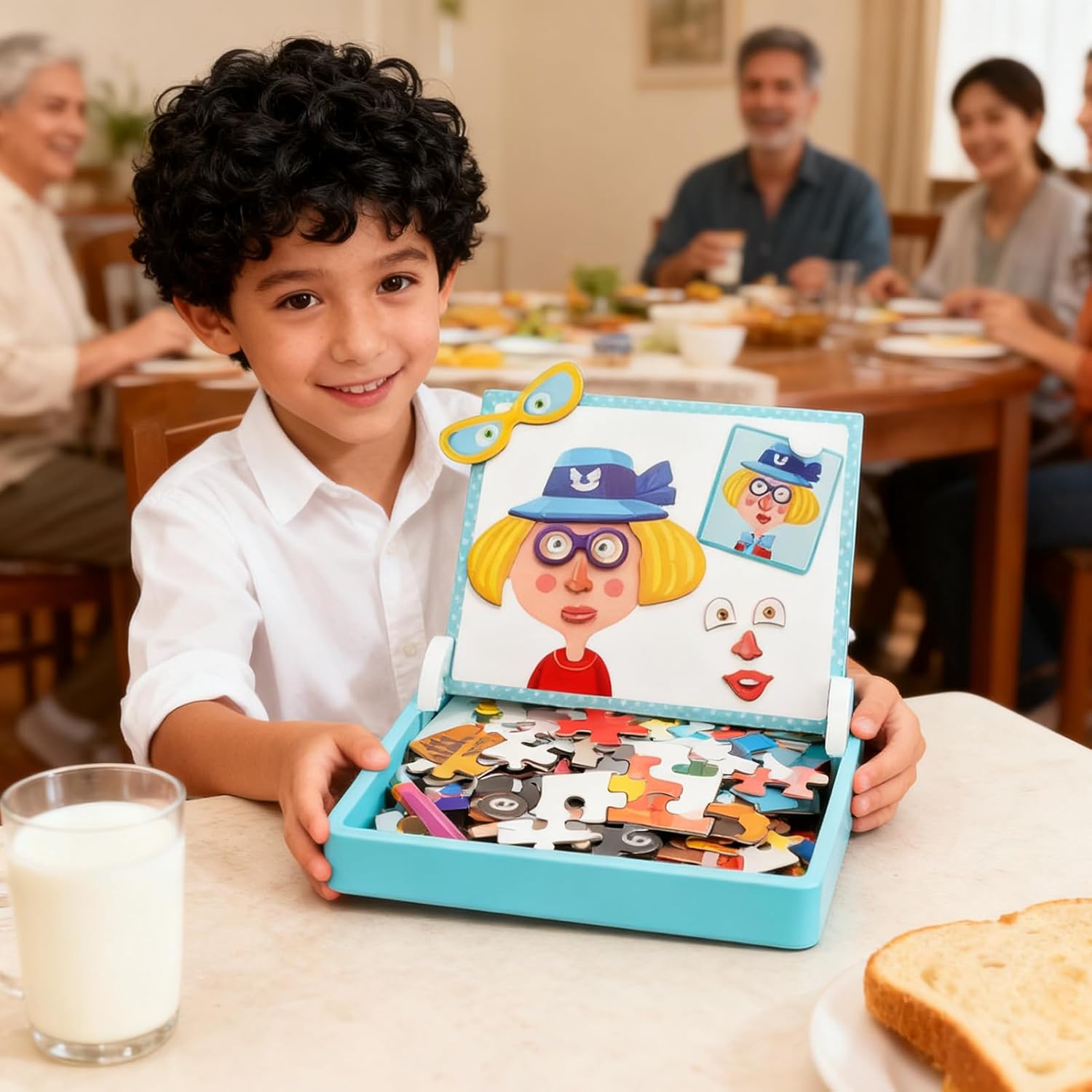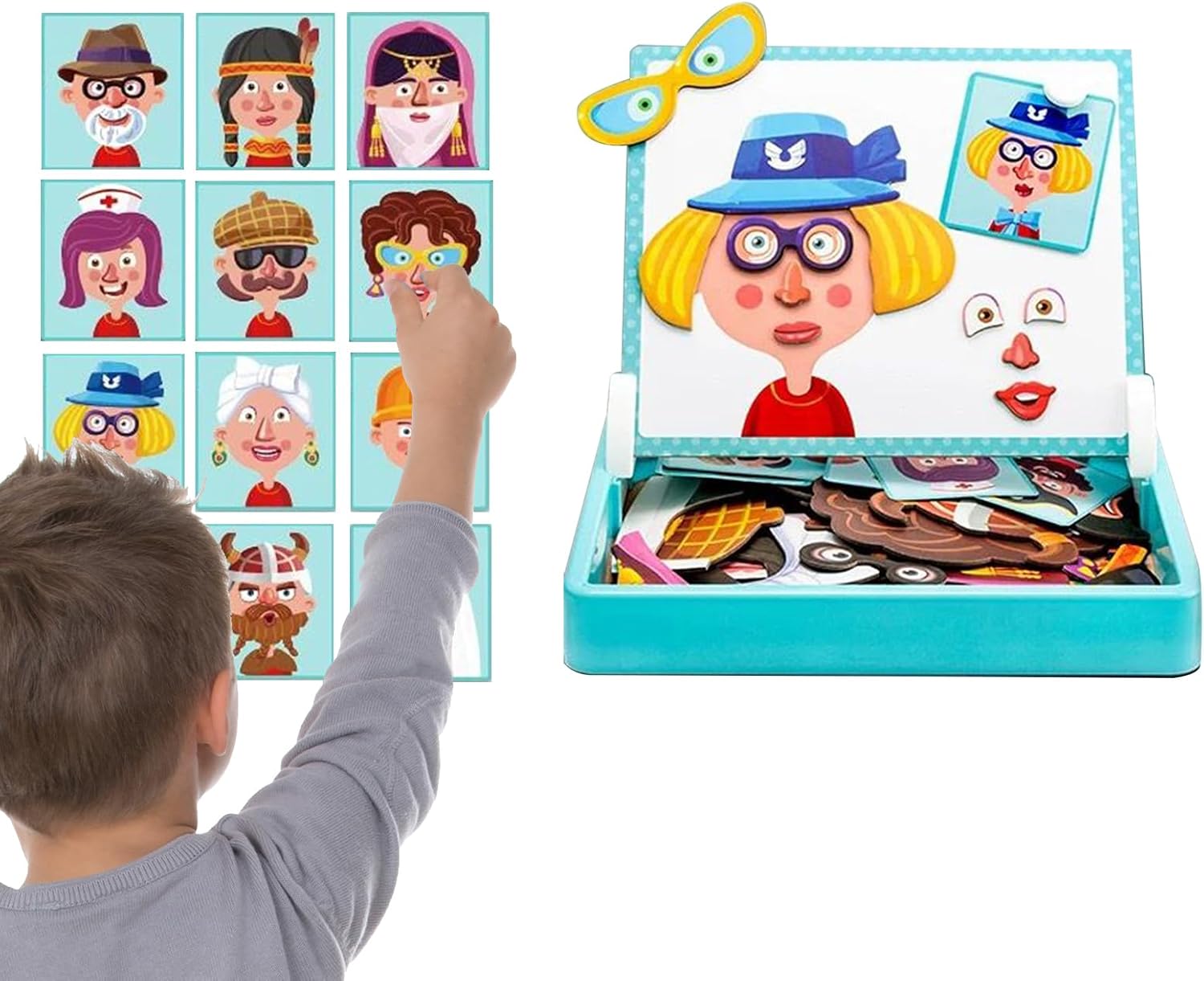 Facile da trasportare: progettati per una presa magnetica sicura delle parti, offrono divertimento ininterrotto come giocattolo portatile adatto per i viaggi. Le sue dimensioni compatte garantiscono un trasporto facile, migliorando le esperienze di viaggio in auto o in aeroporto fornendo attività interessanti per i bambini senza il fastidio di componenti smarriti, con divertimento continuo e pratico. Crescita del coordinamento Mano-: I magnetici per bambini ispirano la costruzione della consapevolezza estetica integrando lo sviluppo del ragionamento spaziale con il miglioramento della coordinazione mano-, incoraggiando la creatività e il pensiero logico durante esperienze di gioco artistico che affascinano le giovani menti, promuovendo un apprendimento coinvolgente e divertente per lo sviluppo di capacità motorie e cognitive. Uso a lungo termine: i magneti per bambini piccoli combinano materiali resistenti all'usura con un design di sicurezza con bordi arrotondati, offrendo durata affidabile e tranquillità per i genitori incoraggiando capacità di risoluzione dei problemi attraverso esperienze di apprendimento pratiche e coinvolgenti che promuovono lo sviluppo continuo. Altre opzioni di stile: Questo costruttore di personaggi magnetico supporta combinazioni di stile a doppia faccia, consentendo ai bambini di esplorare più opzioni di guardaroba e sviluppare la loro creatività in scenari single player e multiplayer. In questo modo, i piccoli godono di ore di intrattenimento creativo con numerose possibilità di design che guidano il gameplay fantasioso e il divertimento continuo. Guida alle espressioni facciali: Il Viaggio combina l'apprendimento per gioco di ruolo con la simulazione di espressioni emotive, promuovendo la base dell'etichetta sociale e migliorando i vantaggi dell'aiuto didattico cognitivo durante le attività educative o ricreative a casa o in viaggio. Questo strumento facilita la comprensione delle emozioni attraverso rappresentazioni realistiche, contribuendo allo sviluppo completo dei bambini e al rafforzamento delle interazioni sociali