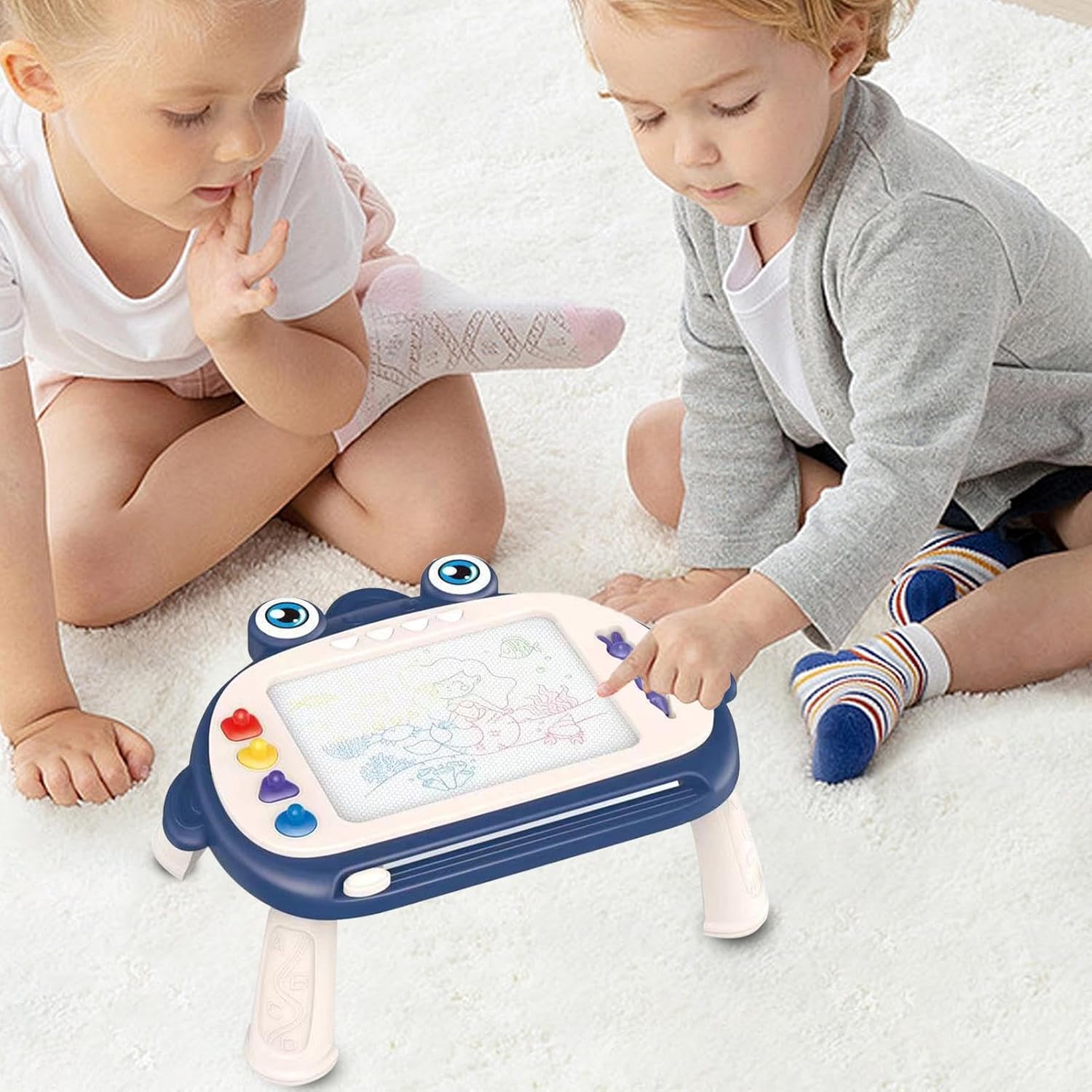 Fördert junge Köpfe: Ausgestattet mit farbigen Stiften in vier Farben regt dieses magnetische Zeichenbrett Kreativität und Fantasie an und regt Kinder zum Zeichnen an Langlebige Nutzung: Unser magnetisches Zeichenbrett besteht aus zuverlässigem ABS-Material und bietet eine langlebige und konstante Leistung. Dieses Board ist ideal, damit Ihre Kinder ihrer Kreativität ohne Unterbrechungen freien Lauf lassen können. Es ist eine robuste und zuverlässige Wahl Detaillierter Prozess: Unser magnetisches Zeichenbrett fördert die Fantasie und Kreativität Ihres Kindes, während die zuverlässigen und glatten Oberflächen seinen Fingern nicht schaden. Hervorragend zum Pudeln geeignet und für stundenlanges spielerisches Lernen geeignet Einfache Wartung: Das magnetische Zeichenbrett macht das Kritzeln für Kinder zum Kinderspiel und regt ihre Fantasie ohne lästiges Aufräumen an. Dank der leicht zu reinigenden Oberfläche spart es Zeit und Mühe, ist wiederverwendbar und leicht zu reinigen Verbessern Sie die Lernfähigkeiten: Wir stellen Ihnen unser magnetisches Zeichenbrett vor, das geeignete frühe Lernspielzeug zur Förderung der Kreativität und der kognitiven Entwicklung bei Kleinkindern