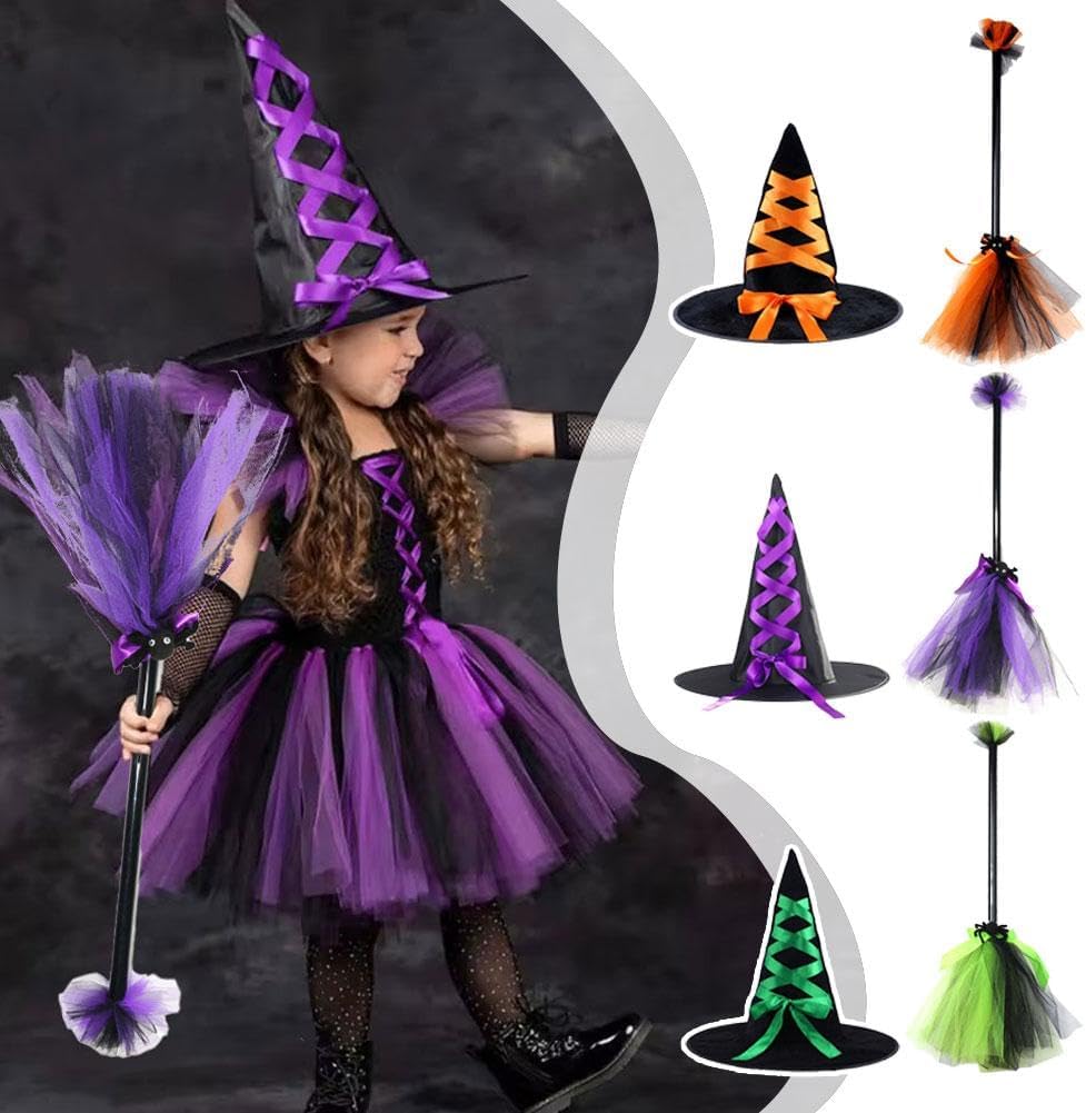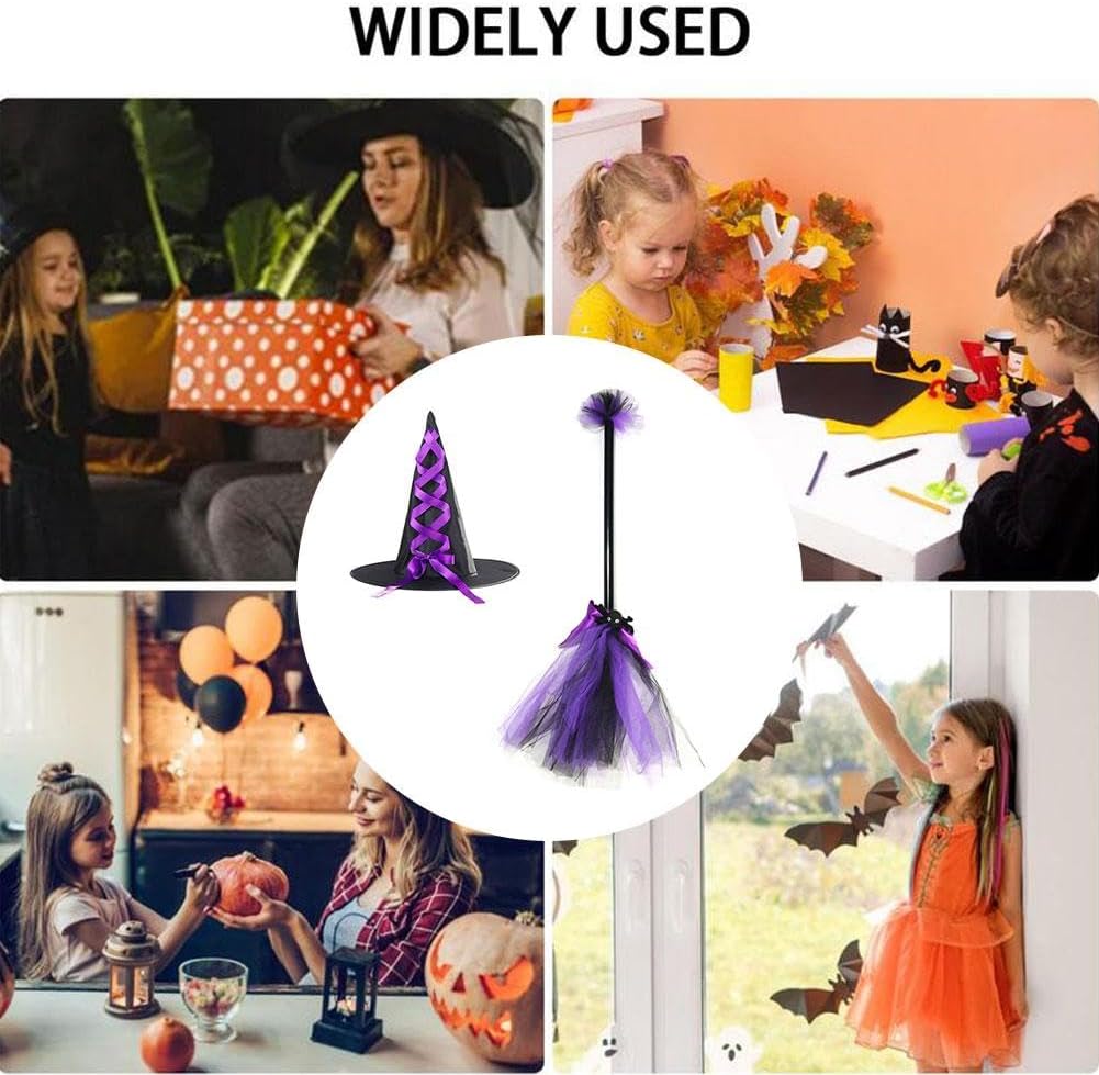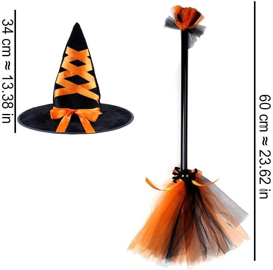 Stile classico da mago: abbraccia la magia di Halloween con questo set di scopa da strega caratterizzato da un vivace cappello da mago e una scopa magica decorata con ragni per un'autentica esperienza di decorazione di Halloween da strega. da indossare e maneggiare】 Il cappello da mago è facile da regolare, mentre il manico della scopa è progettato ergonomicamente per una presa sicura, rendendo facile simulare voli magici o gesti incantevoli Atmosfera festosa: trasforma qualsiasi evento con questo set di scopa e cappello da strega, crea istantaneamente un'atmosfera mistica e magica che delizia allo stesso modo bambini, adulti e appassionati di Halloween