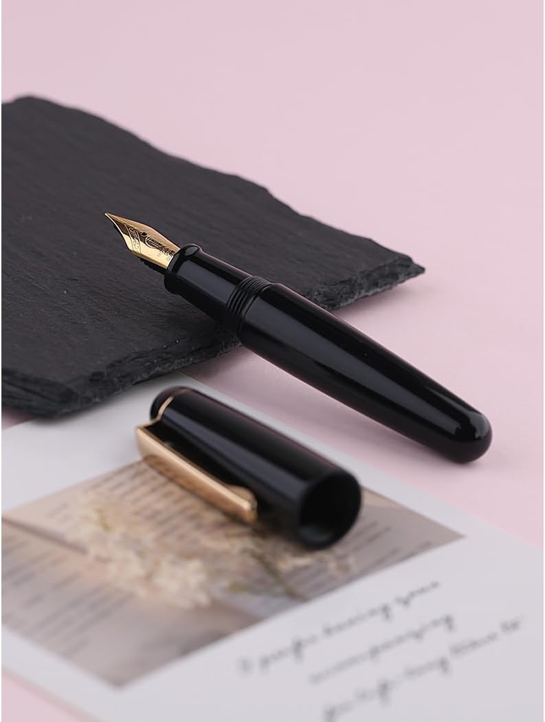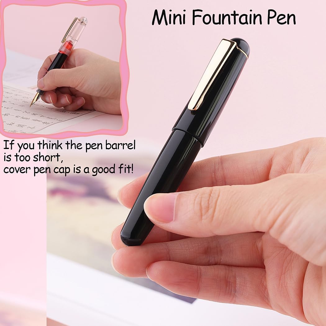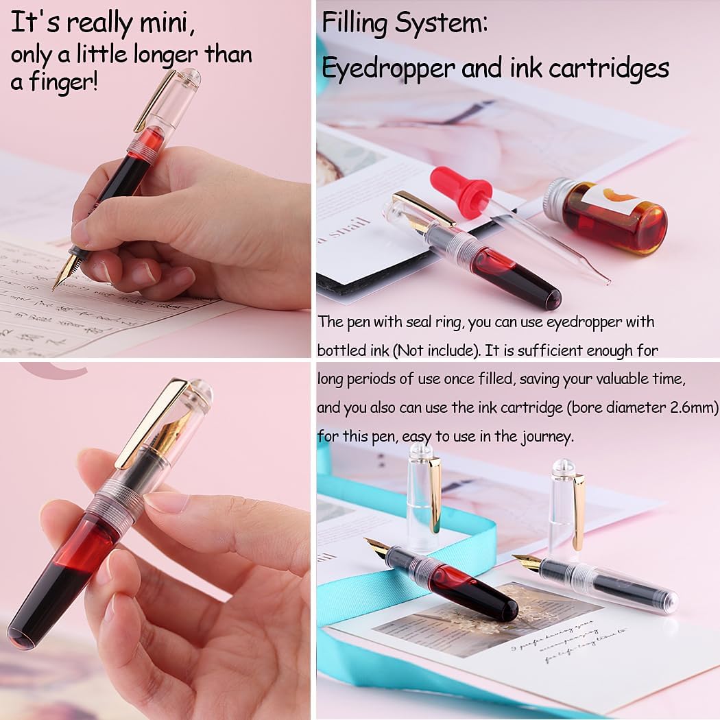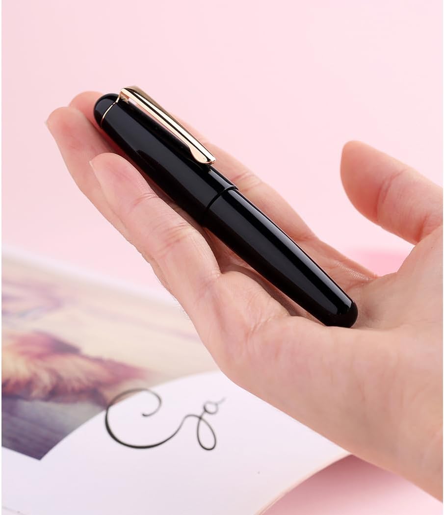 Mini Pocket Pen: questa penna è molto carina e piccola, la lunghezza è di soli 91 mm, sembra un rossetto, ma quando inserisci la vite del cappuccio nell'estremità del corpo della penna (112 mm), diventa una normale penna stilografica, facile da trasportare quando si viaggia. Piccolo, ma non piccolo, così meraviglioso. Sistema di riempimento: Con 20 cartucce d'inchiostro e pipetta. Con la penna ad anello è possibile utilizzare una pipetta con inchiostro in bottiglia. È sufficiente per un lungo periodo di utilizzo quando è pieno, risparmiando tempo prezioso. E puoi anche utilizzare la cartuccia d'inchiostro nero (diametro del foro 2,6 mm) con questa penna, facile da usare quando sei in viaggio. 【Scrittura fluida】 La penna utilizza la punta in iridio, scrive in modo fluido e senza graffi, adatta per la scrittura quotidiana. La punta della penna viene fornita con una punta extra fine da 0,38 mm, una punta fine da 0,5 mm e una punta curva (punta della penna per calligrafia) tra cui scegliere. 【Ampia applicazione】 Può essere utilizzato per la scrittura quotidiana, il lavoro d'ufficio, l'apprendimento e la pittura. È un regalo perfetto per chiunque. Contenuto della confezione: la penna tascabile viene fornita con 3 punte (penna EF, punta F, punta curva) + 20 cartucce d'inchiostro + pipetta.