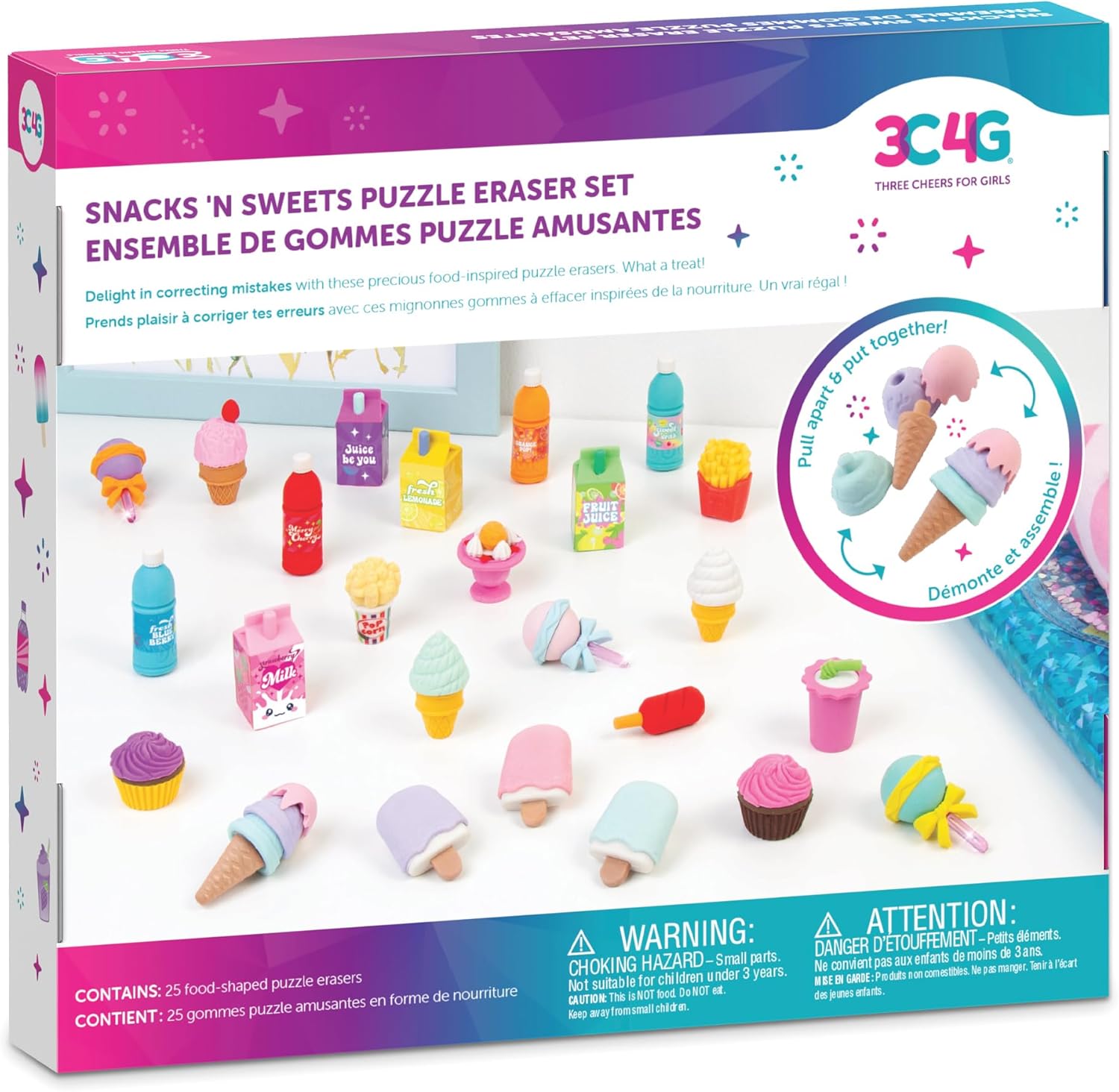 Gomme puzzle 3D: questo set viene fornito completo di 25 gomme puzzle 3D uniche. Goditi la soddisfazione di smontare ogni snack e gomma a tema dolce e rimetterli insieme. A tema snack: dalle patatine fritte alle gomme per gelato e tutto il resto, questo set è una vera delizia! Completa qualsiasi set di cancelleria: sbagliare non è mai stato così divertente! Includere queste gomme puzzle in qualsiasi set di cancelleria per aggiungere un po 'di divertimento. Delizia negli errori corretti con queste preziose cancellazioni di puzzle ispirate al cibo. Tweens età 8+ sono sicuri di amare giocare con questo set di gomme puzzle.