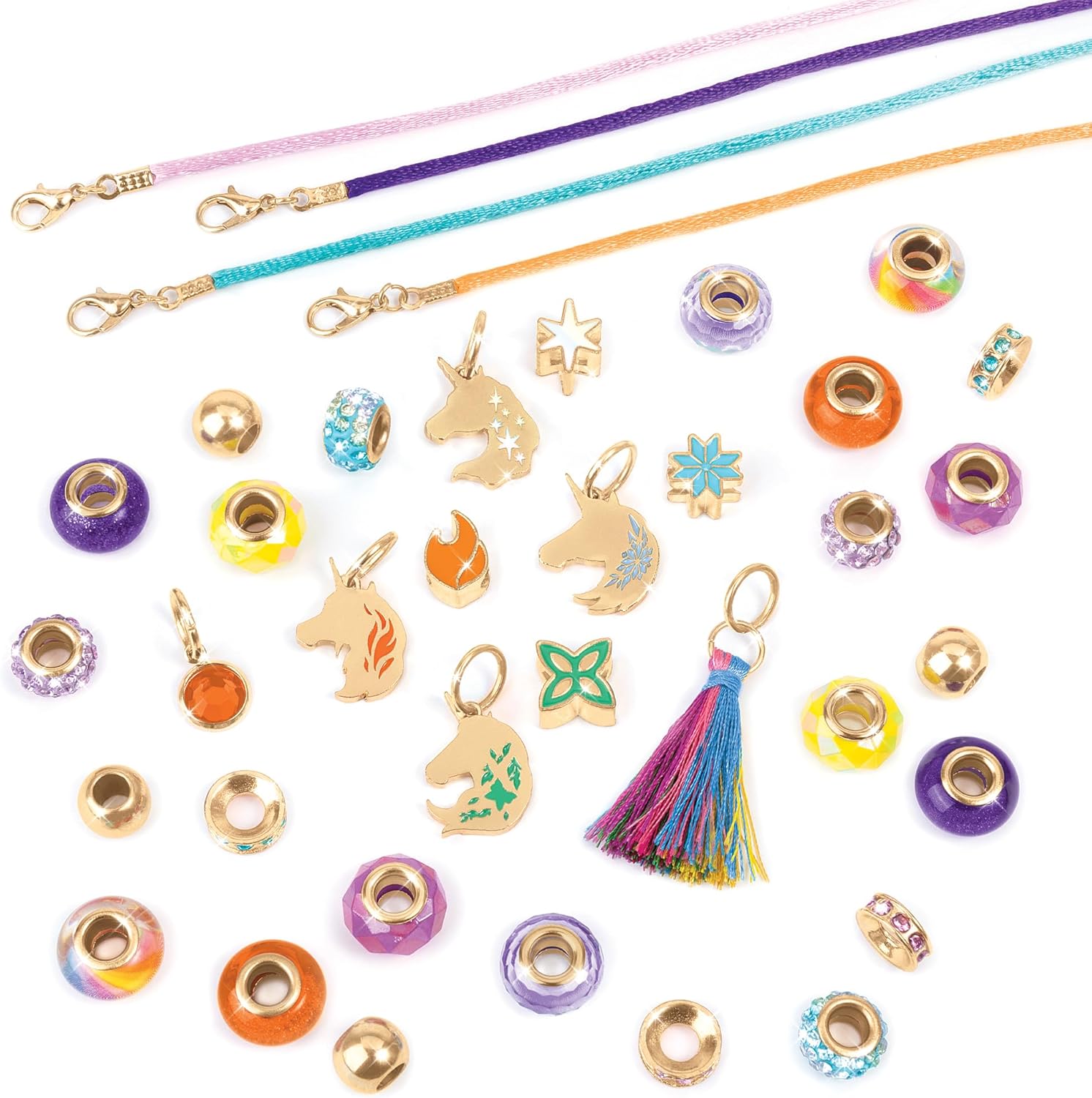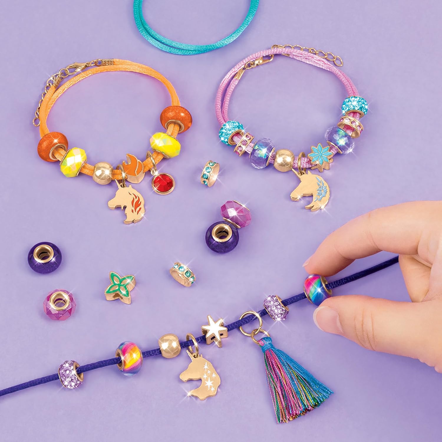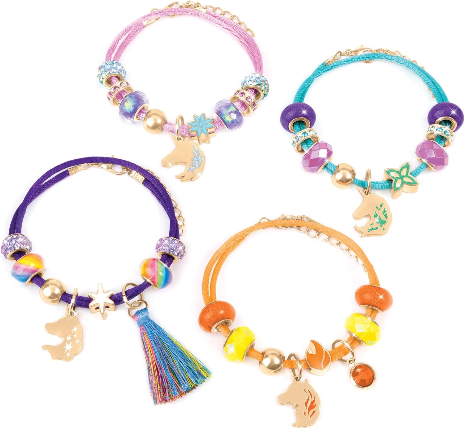 Design ispirato all'Accademia di unicorni: questo kit per la creazione di braccialetti si ispira al magico mondo di Unicorn Academy, permettendo ai fan della serie Netflix di creare gioielli che riflettono il fascino e la meraviglia dei loro personaggi preferiti. Set completo per la creazione di braccialetti: il kit include tutto il necessario per creare 4 bellissimi braccialetti: cordini, perline, ciondoli e ciondoli, inclusi ciondoli pendenti. La varietà di materiali consente una vasta gamma di design. Istruzioni facili da seguire: semplici istruzioni guidano i progettisti attraverso il processo di creazione del braccialetto, rendendo questo kit una perfetta introduzione al design dei gioielli. Le istruzioni dettagliate garantiscono un lavoro divertente e senza stress. Regalo creativo per ragazze: perfetto per interpolazioni creative, questo kit è un ottimo regalo per vacanze, compleanni o qualsiasi occasione. Che si tratti di creare per se stessi o di fare regali, questo kit stimolerà sicuramente la loro creatività. Divertimento sociale e condivisibile: dopo aver creato i loro bellissimi bracciali, i giovani designer possono scambiarli con gli amici, rendendolo un'attività sociale ideale. Il kit incoraggia la creatività, l'amicizia e la condivisione.