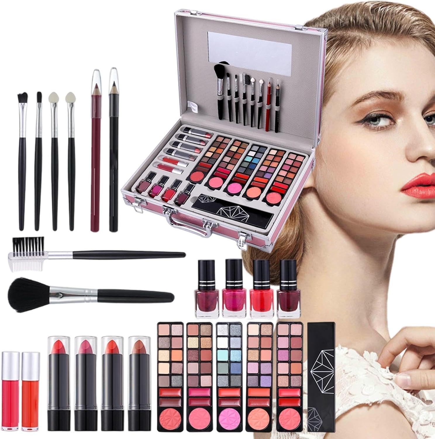 All in Makeup Set for Girls: Includes a coordinated collection of eyeshadows, blush, and lipsticks—everything needed to explore beauty, creativity, and self-expression. Waterproof & Long-Lasting Formula: Designed to stay vibrant and smudge- throughout the day, whether it's for a dance recital, wedding event, or photoshoot. Portable & Travel-Friendly Design: Compact case fits easily in bags or luggage—ideal for touch-ups or for use during vacations, sleepovers, or stage performances. Perfect for Beginners & Young Makeup Fans: Easy-to-apply textures and playful shades make this set great for teens, tweens, or first-time makeup users learning the basics. Great Gift for Any Occasion: A fun and stylish present for birthdays, holidays, or special events—perfect for girls who love dressing up, performing, or experimenting with looks.
