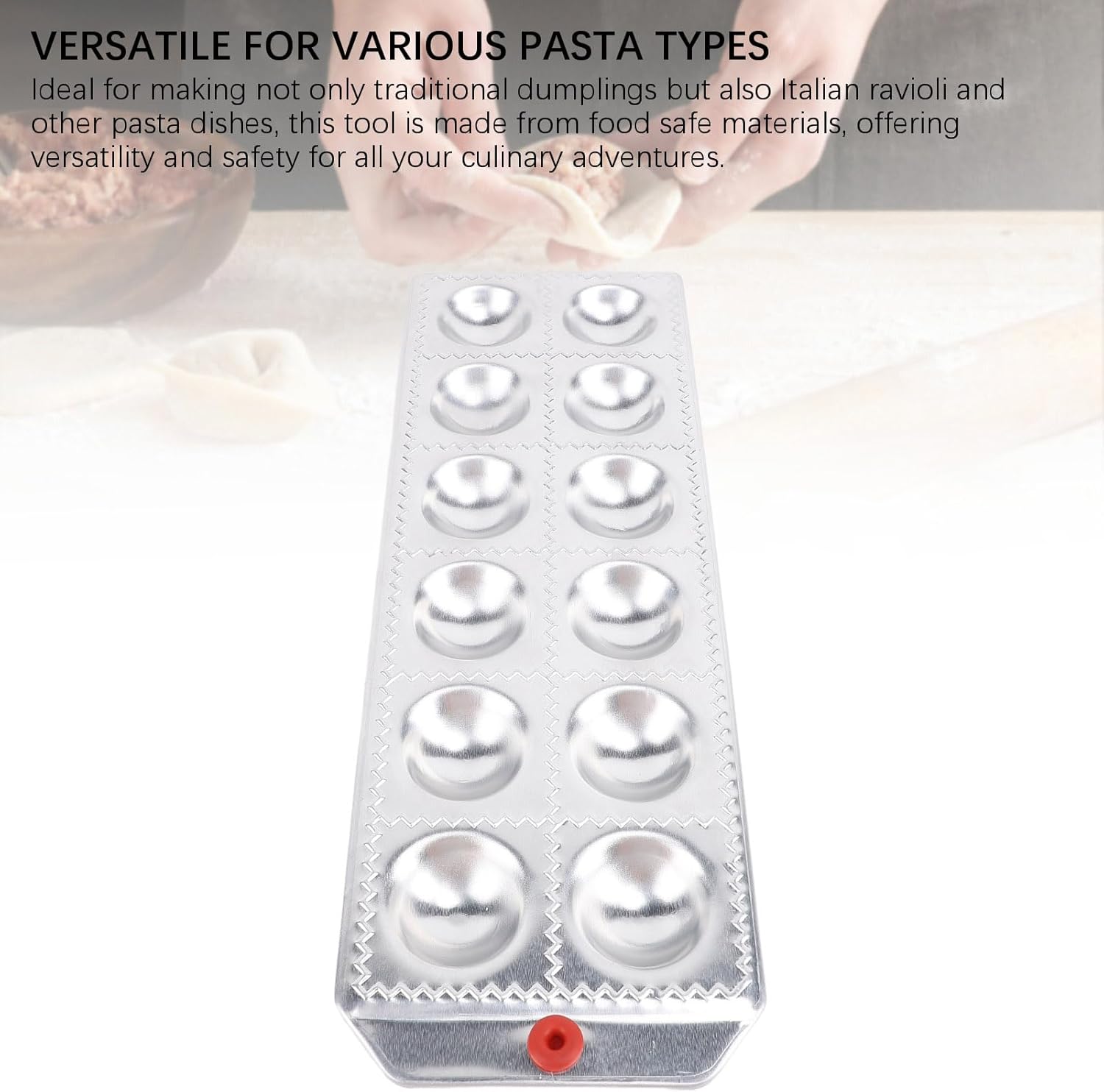 [Preparazione senza sforzo] Il produttore di pelmeni facilita la preparazione rapida e rapida del gnocchia, risparmiando tempo e seccatura. [Design sofisticato] Il produttore di ravioli a 12 buche consente una rapida creazione di gnocchi multipli, per cucine e ristoranti familiari. [Uso versatile] Ideale per vari piatti di pasta, questo strumento è realizzato con materiali a sicuro di cibo, offrendo versatilità e sicurezza per tutte le tue avventure culinarie. [& Safe] realizzato in lega di alluminio, questo strumento è facile da pulire e garantisce un uso a lungo termine con la sua robusta costruzione. [Forma costante] Il design a forma rotonda garantisce l'aspetto attraente di ogni ravioli, migliorando il fascino visivo dei tuoi piatti.