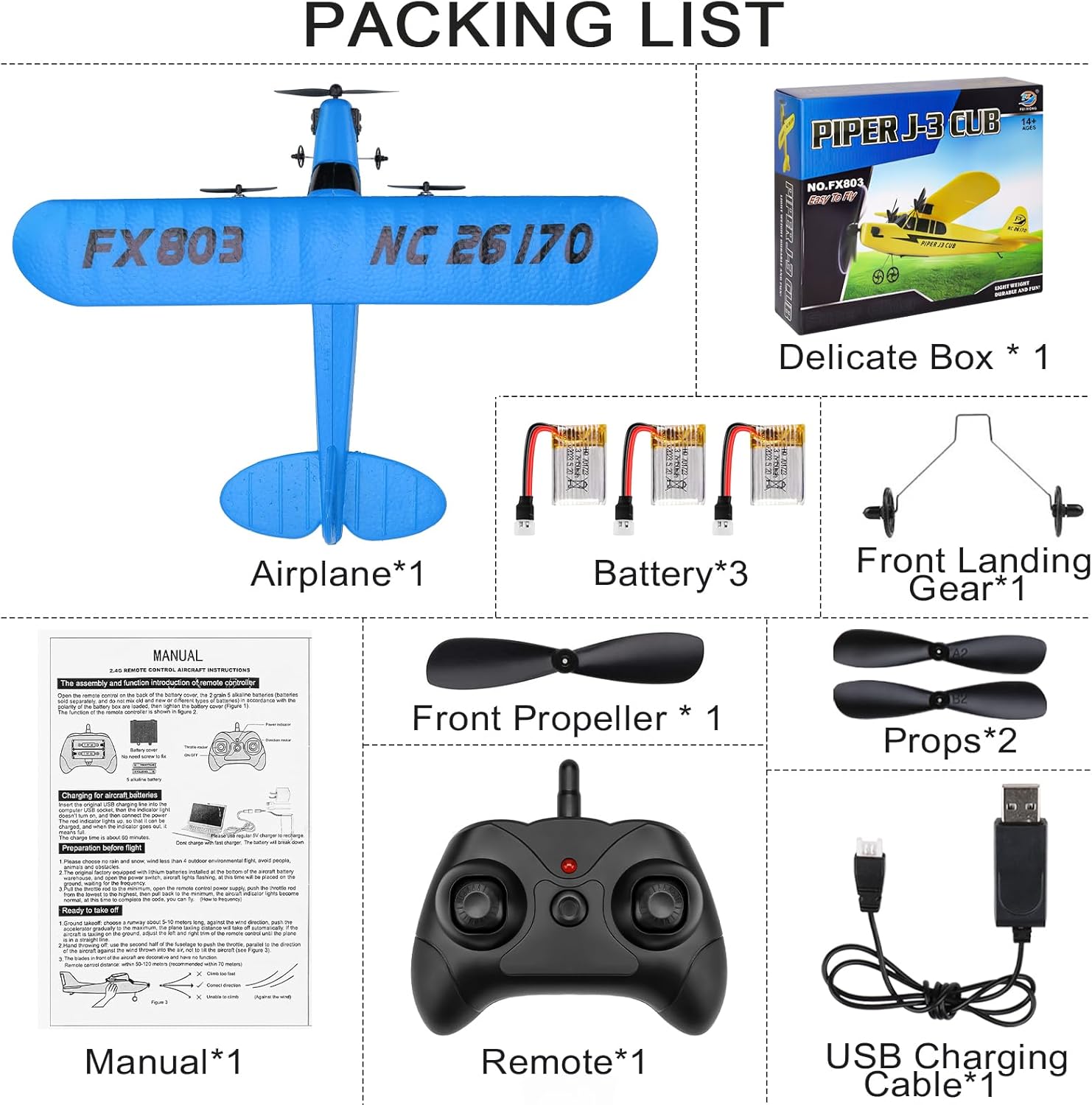 ✈ Pronto per il volo: questa versione viene fornita con tutto il necessario per volare, incluso un telecomando da 2,4 GHz. Aprilo e gioca con i bambini in modo semplice e immediato ✈ Doppio tempo di volo: viene fornito con 3 batterie lipo ricaricabili da 3,7 V 150 mAh, questo aereo telecomandato può volare per circa 15 minuti con ciascuna batteria, tempi di volo tripli, tripla felicità ✈ Resistente e leggero: l'aereo RC è realizzato in EPP leggero, rende questo aereo RC facile da pilotare e durevole da usare, anche con un carrello di atterraggio affidabile che previene efficacemente un incidente ✈ Sistema giroscopico a 6 assi integrato: integrato sistema giroscopico a 6 assi autostabile, che fornisce ai piloti un volo stabile e un'esperienza perfetta. Facile per bambini e principianti RC ✈ Cosa ottieni: 1 aereo RC FX-803, 1 telecomando, 3 batterie lipo da 3,7 V 150 mAh, 2 ruote di atterraggio, 2 supporti di ricambio, 1 cavo di ricarica USB