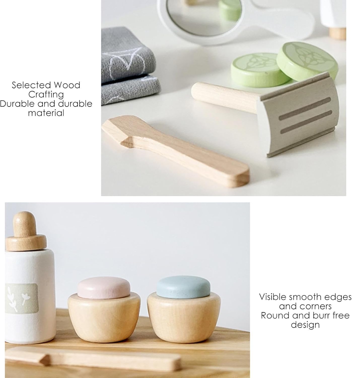 Sicuro e durevole: realizzato con materiale in legno di alta qualità, il nostro set di giocattoli per il trucco è una scelta sicura, inodore, durevole e rispettosa dell'ambiente per il tempo di gioco del tuo bambino. Facile sul pianeta, grande nel divertimento. Migliorare la creatività: con la sua struttura in legno naturale e il design delle dimensioni di un bambino, il nostro set di giocattoli per il trucco in legno è perfetto per creare un tempo di gioco esclusivo per genitori e figli. Goditi accessori lucidi e dai colori eleganti mentre trascorri momenti di qualità e interattivi con i tuoi piccoli. Tempo di gioco portatile: questo set di giocattoli per il trucco in legno è leggero e facile da trasportare, in modo che i tuoi bambini possano divertirsi a giocare con esso ovunque. È molto conveniente per te. Giocattolo educativo: sviluppare abilità sociali ed emotive. Questo set di giocattoli per il trucco in legno è un giocattolo educativo che supporta lo sviluppo dei bambini migliorando la loro intelligenza sociale ed emotiva. È progettato per incoraggiare l'immaginazione, la creatività e le capacità di problem solving incoraggiando l'empatia e la comunicazione. Ampiamente usato: per le ragazze che amano fingere, questo set di giocattoli per il trucco in legno è perfetto. Possono rendere la loro bellezza con accessori realistici. Questa è una fantastica idea regalo per Natale, feste di compleanno, feste di principessa o qualsiasi altra festa.