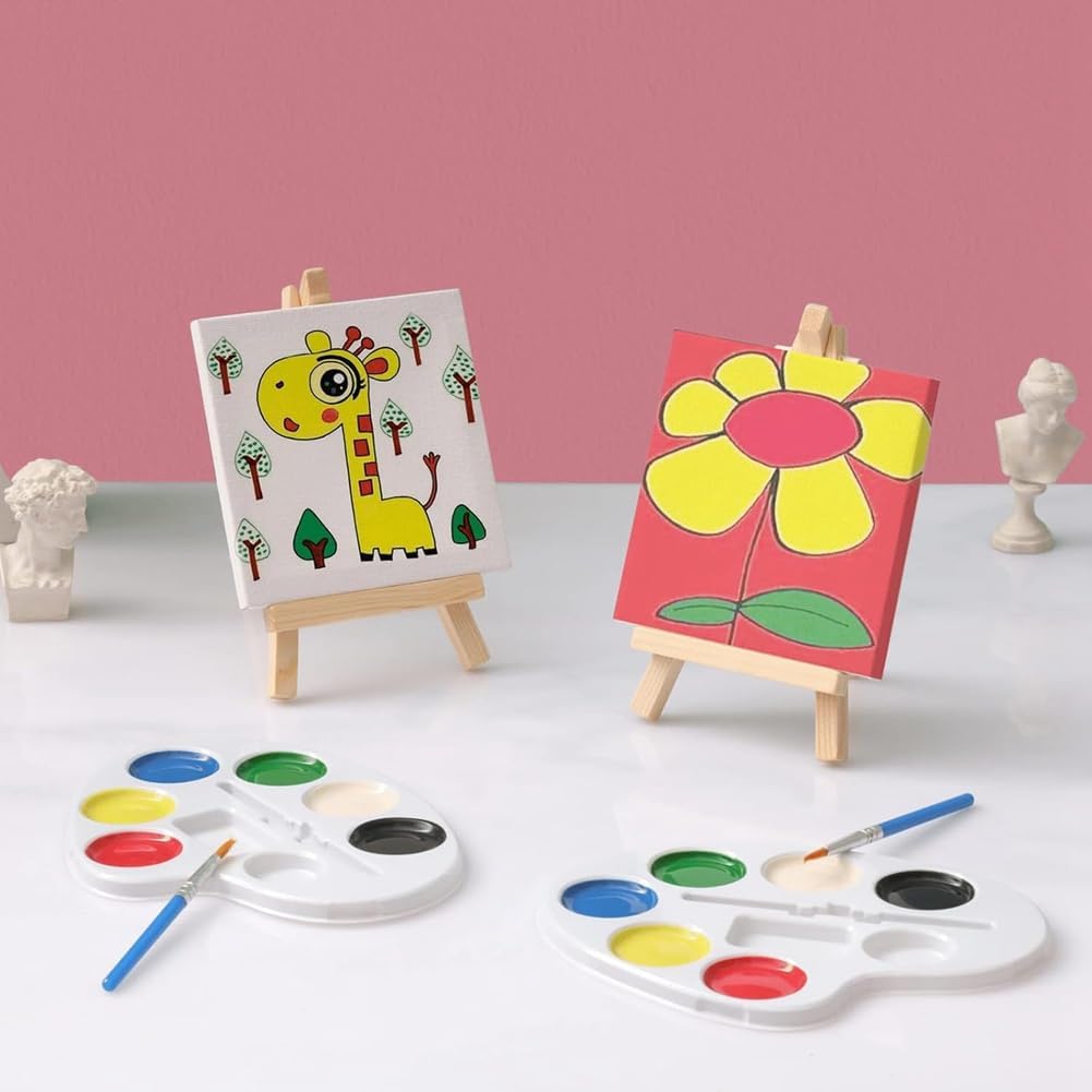Migliora l'interesse per la pittura: i mini set di pittura su tela possono essere regali, premi, lezioni di disegno e programmi artistici scolastici per bambini, principianti di pittura e dilettanti, per aiutarli a praticare la pittura, migliorare le loro abilità e stimolare il loro interesse per la pittura e migliorare la creatività. Confezioni risparmio di mini con cavalletto: include mini da 16 pezzi con cavalletto. Ottimo per progetti domestici, attività artistiche in classe e altri materiali artistici. , liscio e affidabile: realizzato su tela da pittura in cotone al 100% montata su cartone privo di acidi. Il primer di alta qualità mantiene la superficie eccellente flessibilità e tensione, perfetto per l'uso con acrilici, , acquerelli e altri supporti pittorici. Dimensioni tela mini: le piccole misurano circa 10 x 10 cm/4 x 4 pollici, il cavalletto artistico misura ca. 8,5 x 15 cm/3,35 x 5,91 pollici. Questa tela da pittura per bambini è leggera, facile da maneggiare e trasportare e non occupa molto spazio per essere esposta Utilizzo versatile: ottima tela da tavolo e set da cavalletto per bambini, studenti, adulti, principianti e professionisti con diversi livelli di pittura. La confezione sfusa è per esercitazioni di pittura, aule per bambini, lezioni di pittura e feste di pittura.