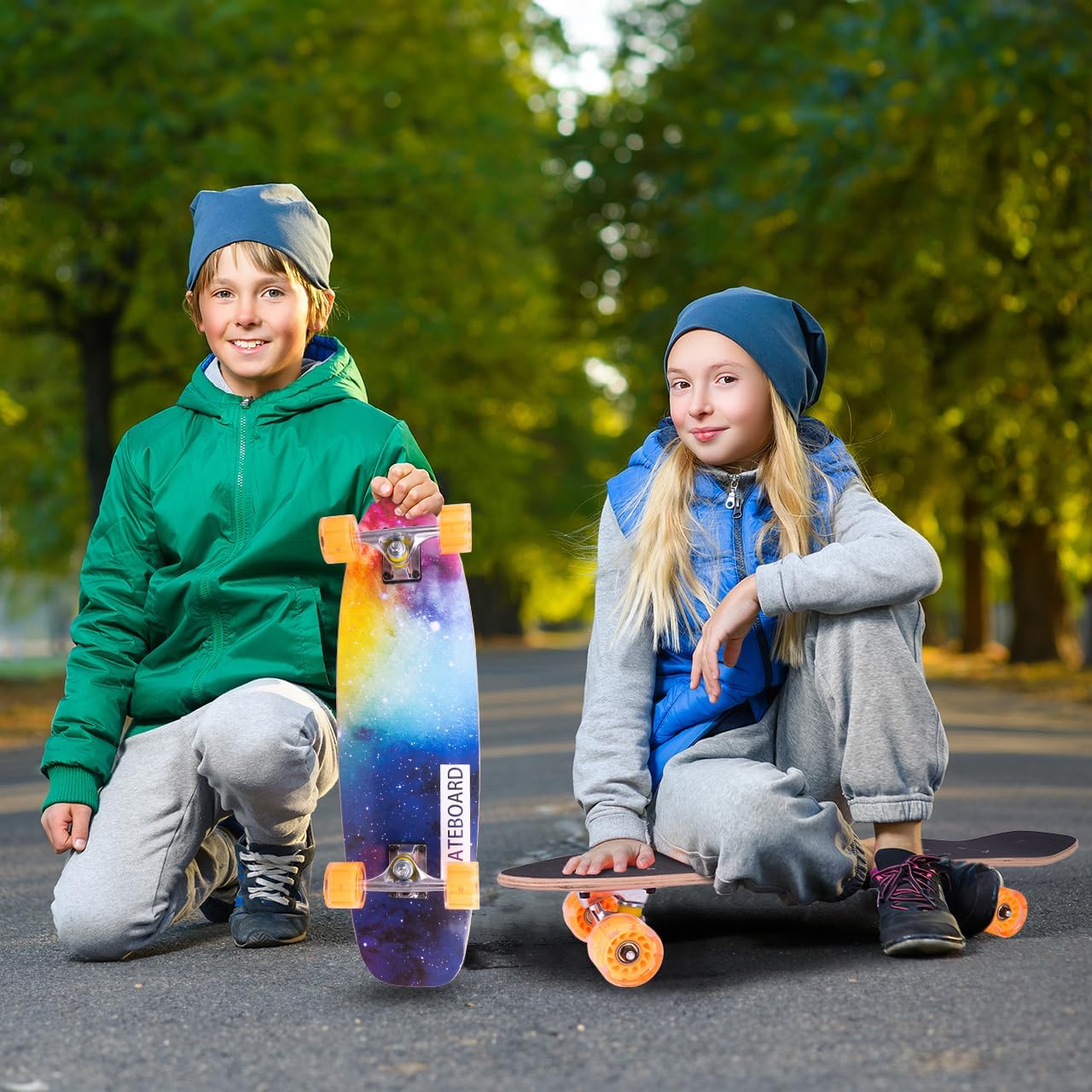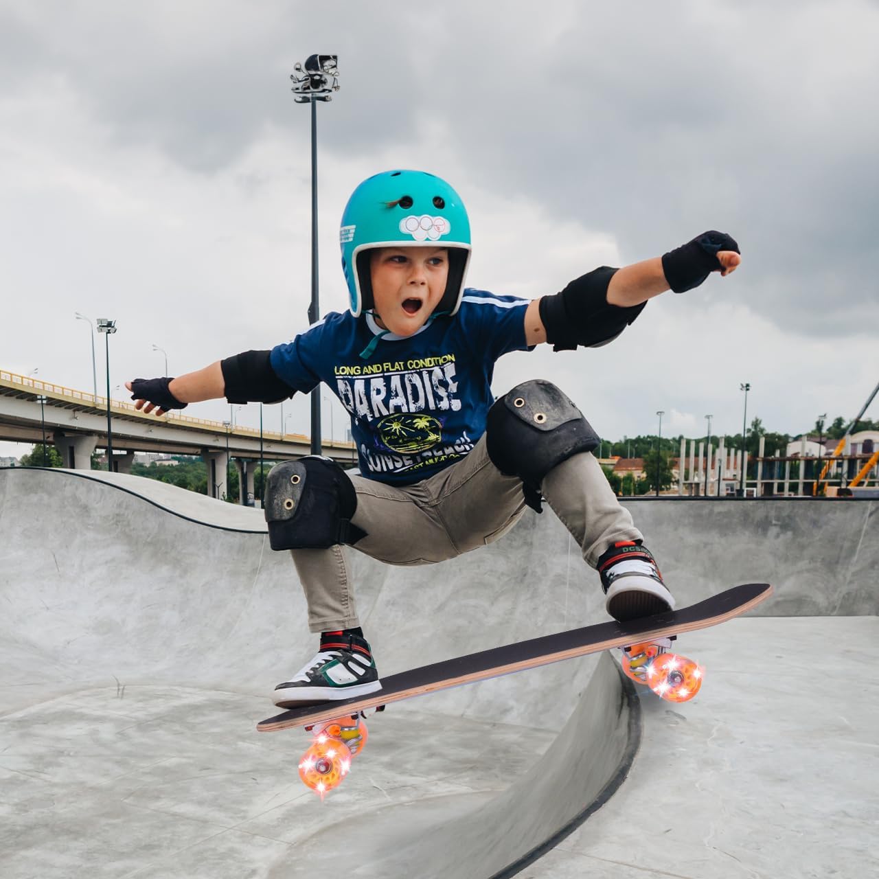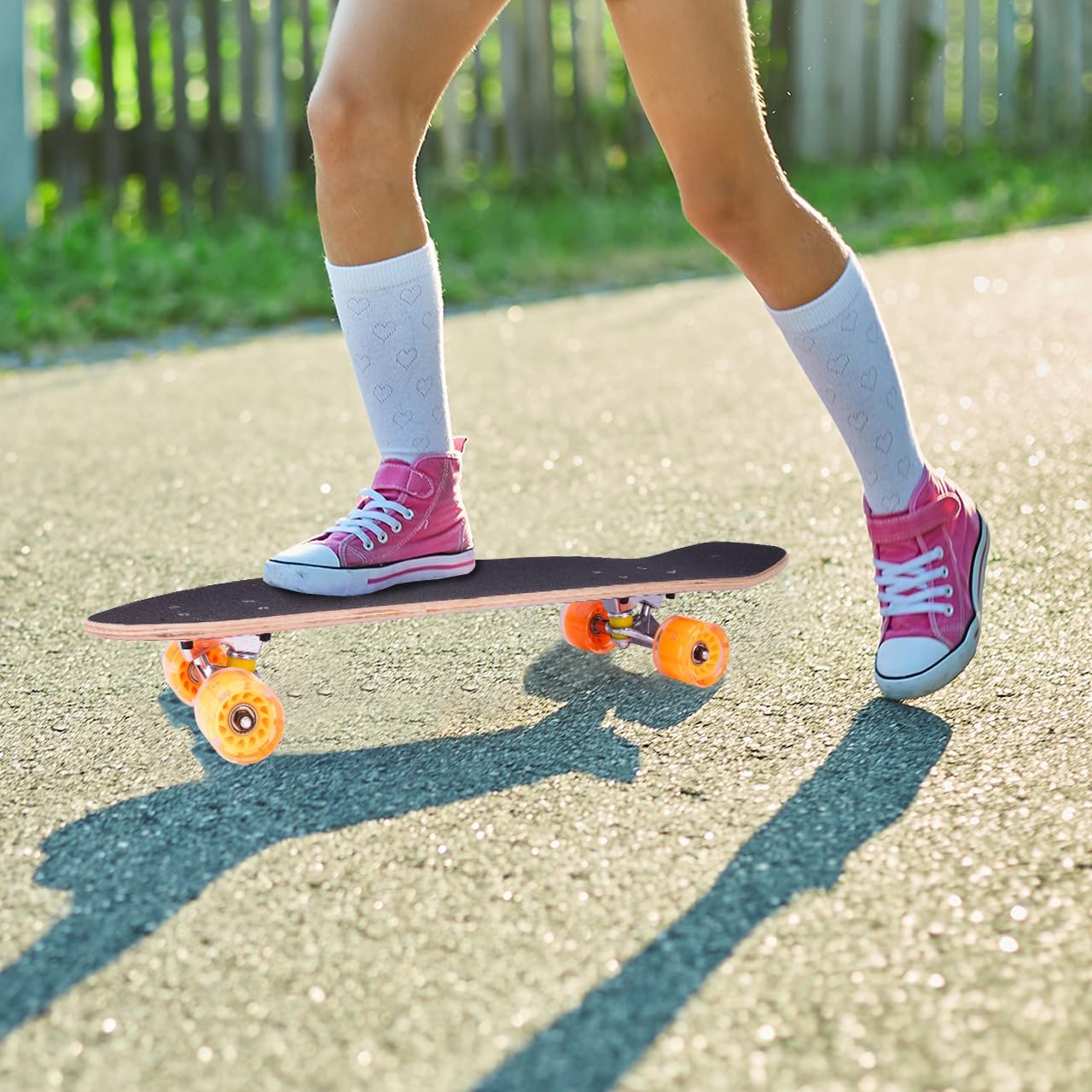 Materiali di alta qualità e costruzione durevole: il ponte è realizzato in legno di acero cinese a 7 strati, robusto ma leggero. Grandi ruote in gomma e cuscinetti ABEC-7 ad alte prestazioni: le ruote in PU da 60 mm offrono un buon assorbimento degli urti e sono dotate di LED. I cuscinetti ABEC-7 garantiscono una guida fluida. Ruote con luci a LED: aumentano la visibilità e la sicurezza, soprattutto al buio, e rendono la guida più emozionante. Piattaforma antiscivolo: la piattaforma antiscivolo garantisce stabilità e impedisce scivolamenti indesiderati. Ideale per l'attività fisica: lo skateboard favorisce la coordinazione motoria, la concentrazione e rinforza i muscoli mentre ci si diverte e si sta all'aria aperta.