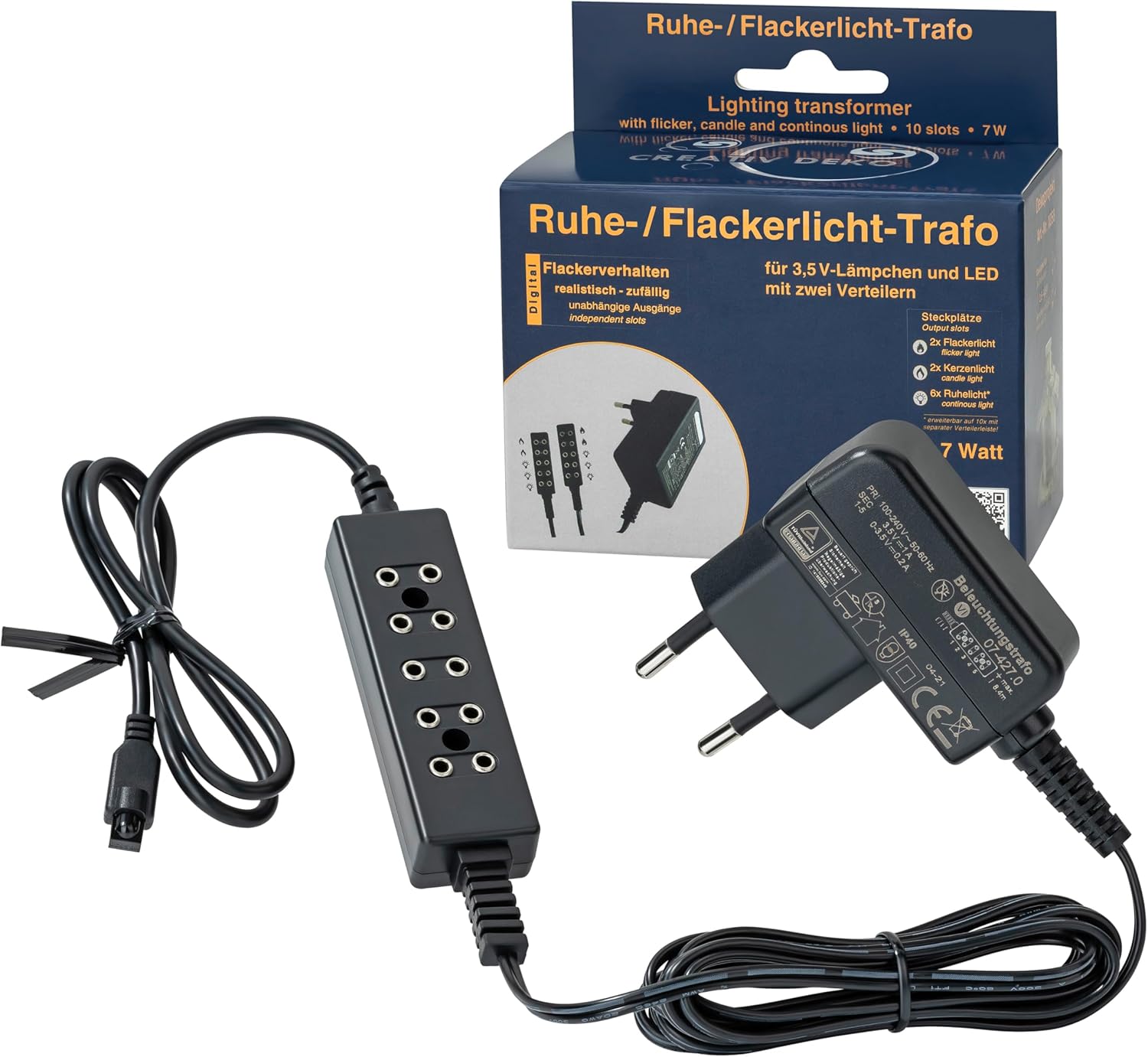 Trasformatore presepe per presepi, modellismo e casa delle bambole Per la calma e la luce tremolante Include cavo di prolunga da 1 metro Per LED e lampadine da 3,5 Volt Prodotto di qualità