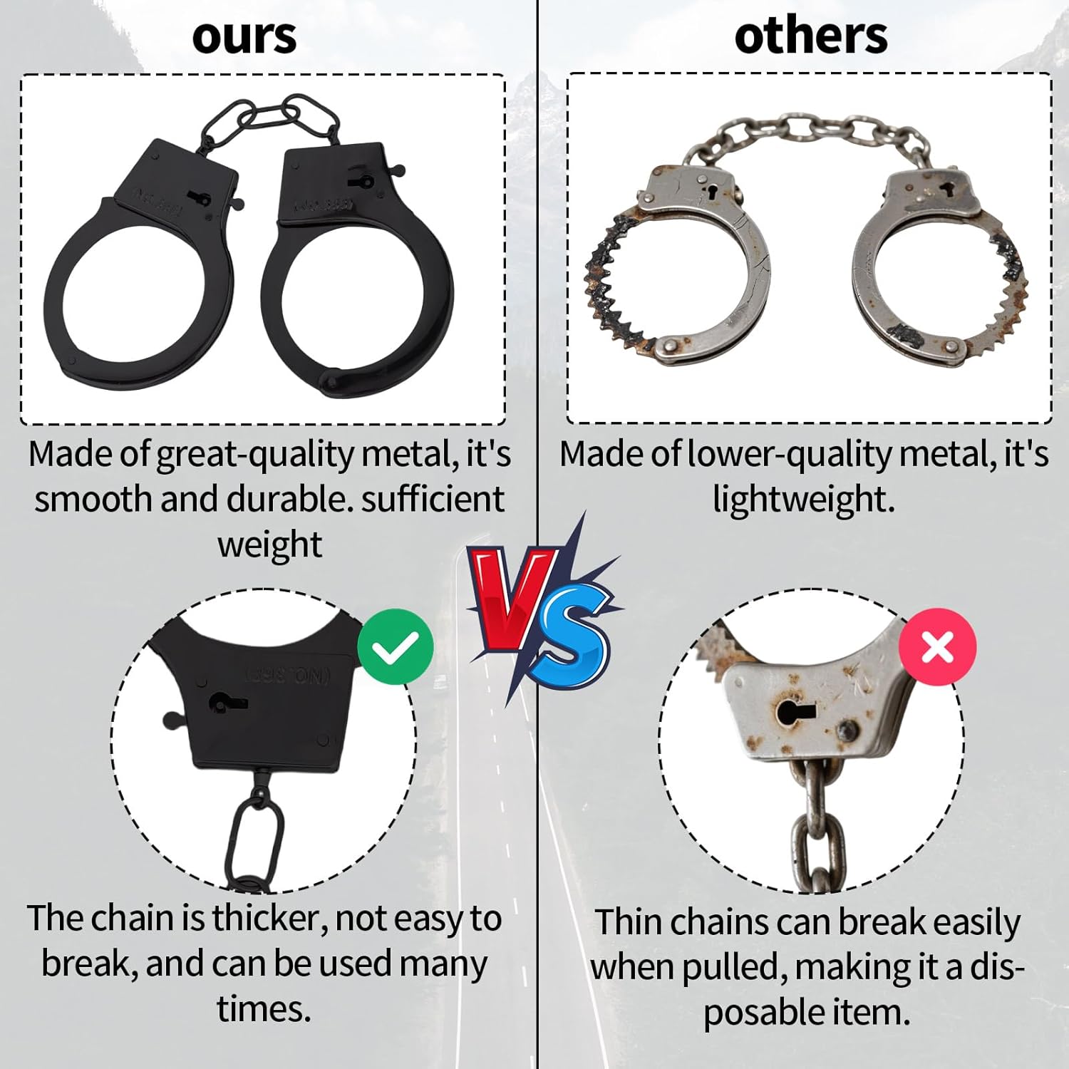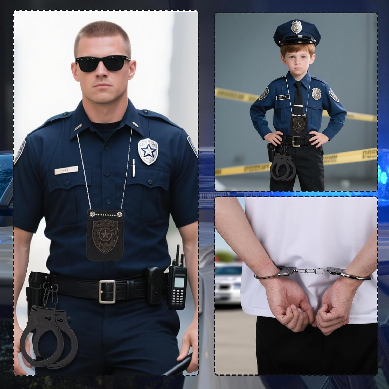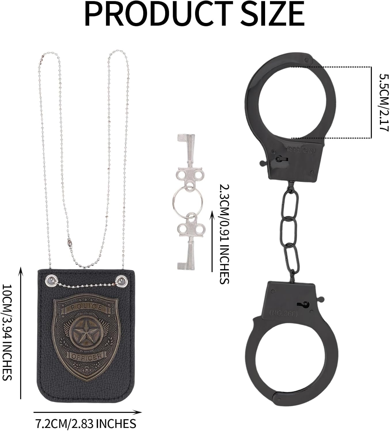 Contenuto del prodotto: riceverai 1 paio di manette giocattolo, 2 tasti e 1 badge della polizia con la catena. Il kit completo soddisferà le tue esigenze di partite per feste. Materiale durevole: realizzato in un robusto lenzuolo di ferro, queste manette sono affidabili, non facili da deformarsi e possono resistere al gioco approssimativo pur rimanendo facile da gestire per i bambini. E il distintivo della polizia è realizzato in lega di zinco e pelle PU per prestazioni durature. Pratiche manette giocattoli: il set di cuffie a mano giocattolo è un impeto di gioco di ruolo divertente, che non è solo un giocattolo per fornire intrattenimento, ma per migliorare le capacità di interazione sociale. Dotato di un semplice dispositivo di sicurezza, può essere aperto anche senza una chiave. Ottimo per i costumi e il gioco finto: ideale per i giochi di poliziotti e robber, missioni di spionaggio o avventure di supereroi, aggiungendo eccitazione al travestimento e al tempo di gioco. Sono bei accessori per costumi di Halloween, cosplay e giochi. Ampia applicazione: il set di manette giocattolo può essere ampiamente utilizzato nel gioco di ruolo della polizia, feste di Halloween, accessori in costume da palcoscenico, costumi in classe, ecc. Regali ideali per la tua famiglia, amici e altri appassionati di giochi di ruolo.