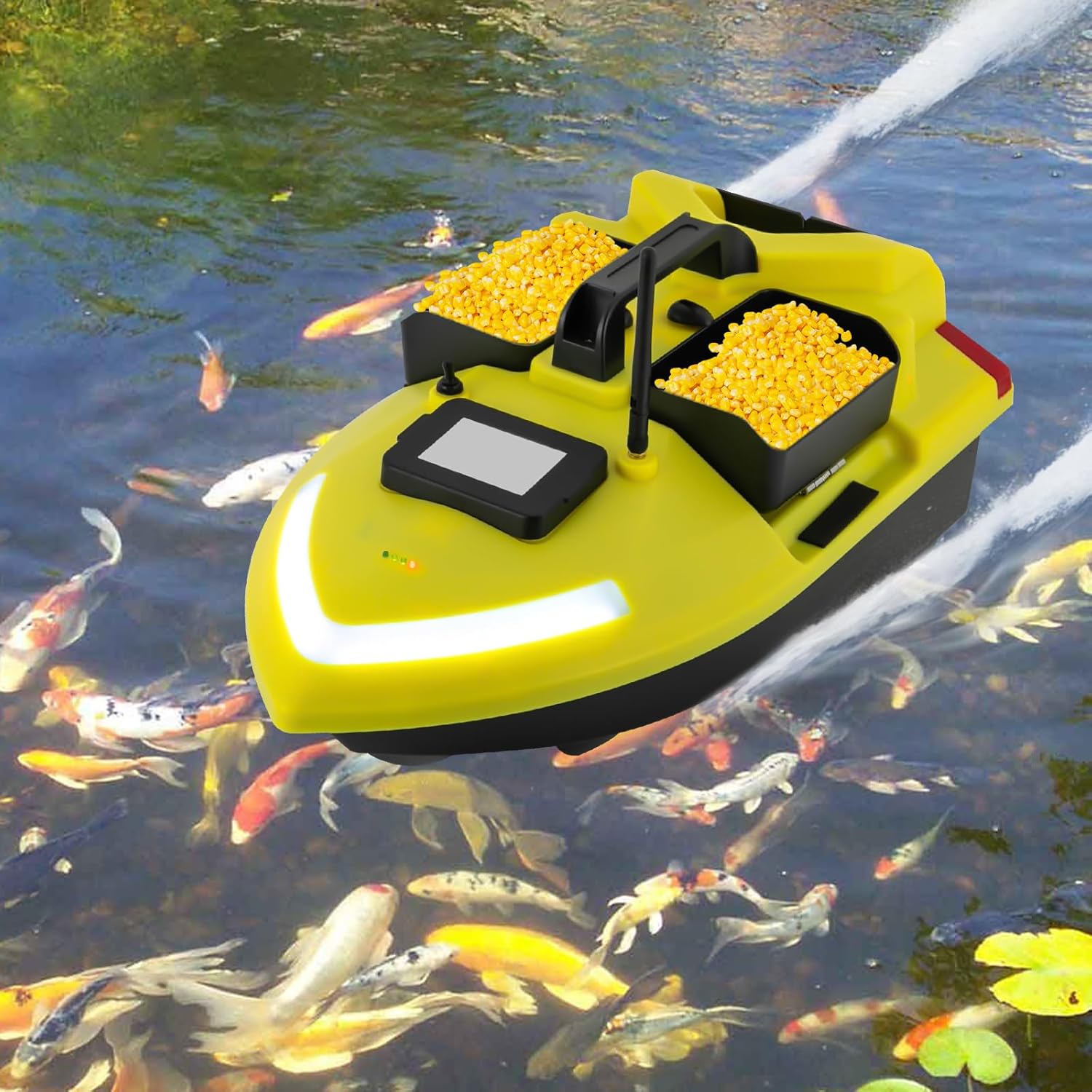 【Forte potenza】è progettato con due motori forti per fornire potenza sufficiente alla barca per viaggiare, ed è dotato di un'elica a tre pale per aumentare la spinta e la portata della pagaia in acqua. La batteria al litio da 12000mAh lo rende più veloce da caricare e di lunga durata. 【Buone prestazioni】Adotta una frequenza di controllo 2.4G e la distanza di controllo remoto è fino a 1640,42 piedi. Con il sistema di calibrazione automatica BeiDou e il sistema di posizionamento GPS, può impostare 40 punti di posizionamento per garantire un avvistamento preciso e migliorare l'efficienza della pesca. 【Elevata sicurezza】Lo schermo del telecomando mostra il livello di potenza dell'imbarcazione; quando l'imbarcazione ha poca potenza o il segnale è scarso per un lungo periodo di tempo, le luci dell'imbarcazione lampeggiano, il telecomando suona a intermittenza l'allarme “drip” e l'imbarcazione torna automaticamente in mare. Allo stesso tempo, lo scafo lineare riduce la resistenza all'acqua con una resistenza alle onde di 7-8, per garantire la sicurezza delle operazioni e dell'utilizzo. 【Correzione automatica della rotta】Il prodotto è dotato di un sistema di bilanciamento automatico integrato, in grado di correggere in modo intelligente la rotta di viaggio e di garantire che la barca mantenga una velocità uniforme e una linea retta di viaggio in presenza di vento, onde e carichi. 【Design accurato】Questo prodotto è stato progettato con tre scomparti per esche a controllo indipendente, con una capacità di carico di circa 4,41 libbre, che consente di controllare il posizionamento del nido a piacimento. Nel frattempo, la tramoggia posteriore per le esche è anche aggiunta con un design anti-detachment, che può inviare il gancio per rilasciare la linea e impedire che la linea si aggrovigli.