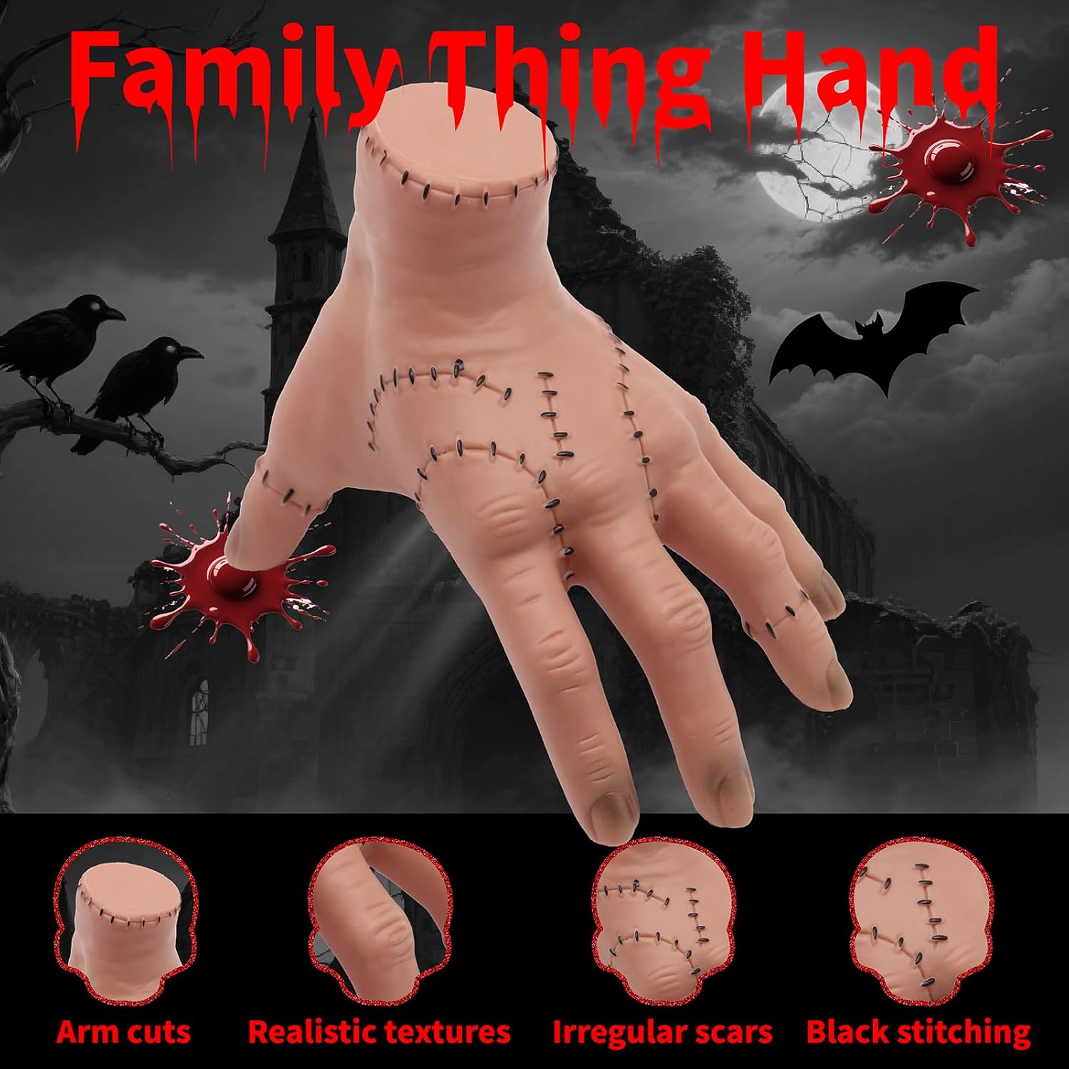 Mani ghiacciate – Wednesday mani con cicatrice sul palmo, mani fredde di Wednesday per un'atmosfera spaventosa di festa di Halloween. Dimensioni: 13,5 cm x 18 cm, mano wednesday con texture realistica, cicatrici irregolari e cuciture nere sul palmo della mano, sensazione come una vera mano. Materiale: le mani familiari sono realizzate in vinile, sono resistenti, morbide, comode e robuste e possono essere utilizzate a lungo. La mano fredda per Halloween. Regali spaventosi: la mano della famiglia è il regalo ideale per gli amici di Halloween. Il costume da mano freddo per la spalla spaventerà i vostri amici Occasione applicabile: la mano di Wensday è adatta per la casa, per creare un'atmosfera festosa ad Halloween. Wednesday family hand è pratica per giochi di ruolo, feste horror e come decorazione all'aperto.