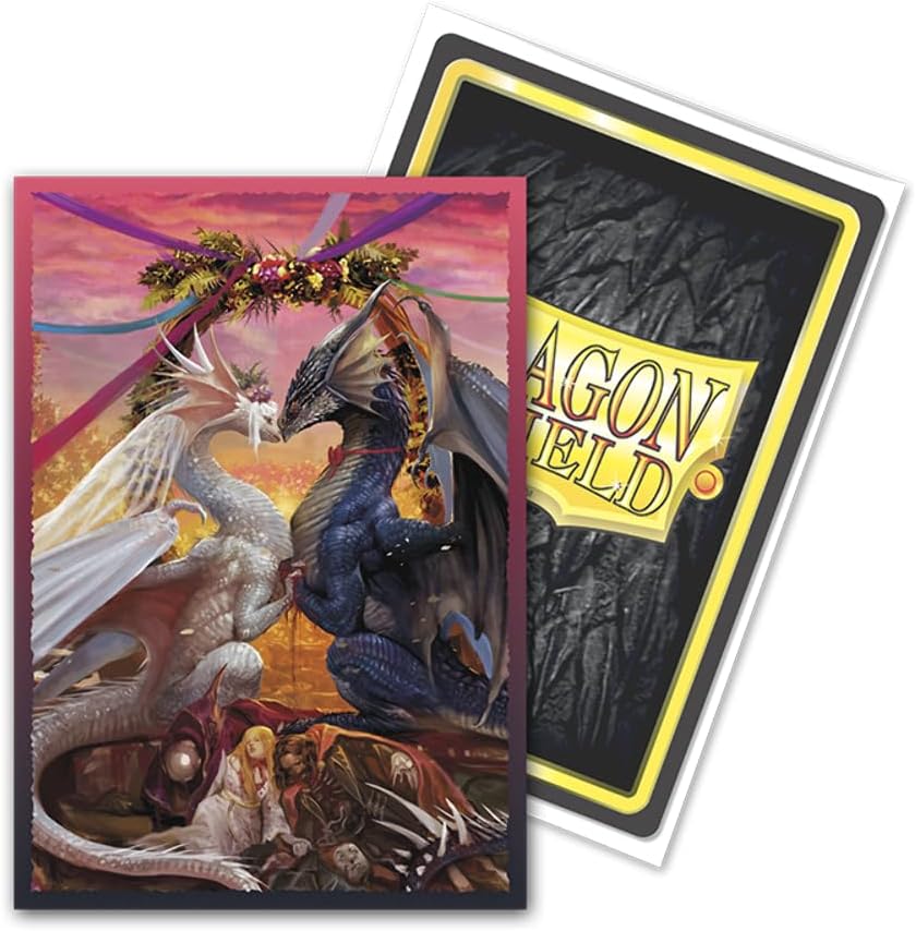 Gli adorabili draghi di San Valentino si sono appena sposati. Dopo aver rubato i cuori della gente del posto e organizzato feste, finalmente si sposano con un matrimonio tutto loro. Festeggia San Valentino con questi due uccellini innamorati, o dovremmo dire... amano i draghi? Prova la sensazione setosa delle buste artistiche spazzolate Dragon Shield. Le maniche spazzolate presentano un retro leggermente ruvido che consente alle carte di scivolare senza sforzo durante il mescolamento. Con cornici sfumate e stampe dettagliate che non si scheggiano né si spezzano, i mazzi con maniche spazzolate hanno un aspetto fantastico. Personalizza i tuoi giochi TCG ed esprimi te stesso con opere d'arte straordinarie e altamente dettagliate