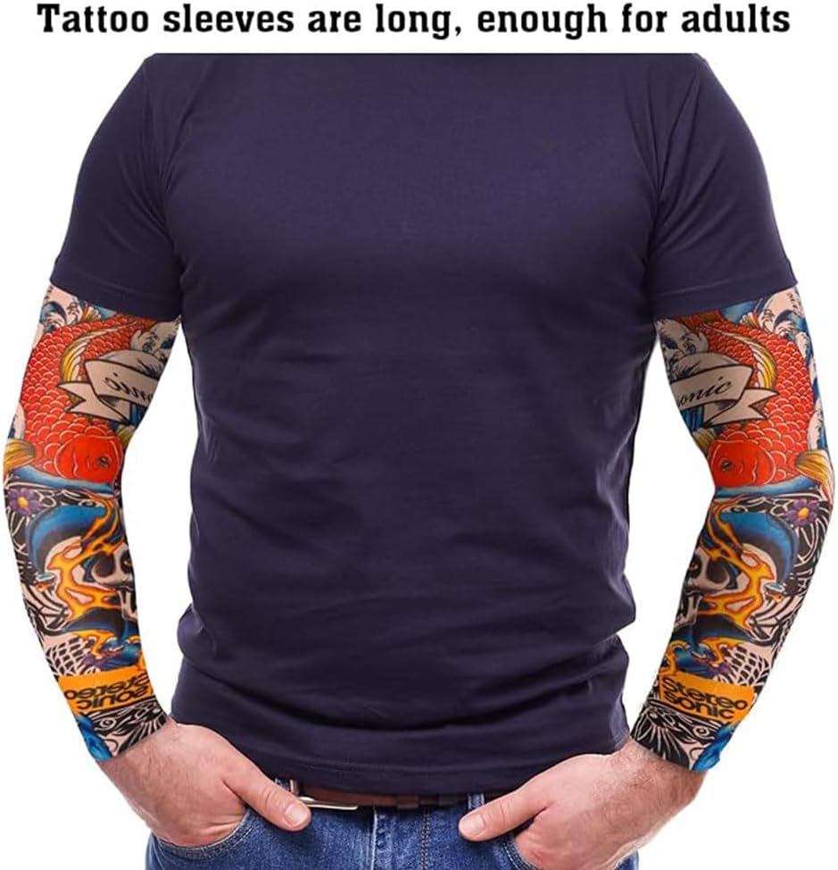 Copri maniche per tatuaggi finti per braccio da 6 pezzi, tatuaggio temporaneo finto per feste unisex Manicotto per braccio alla moda cool indossabile per feste in maschera di Halloween Rock Star Day. Specifica: Materiale::92% nylon e 8% spandex Dimensioni: circa 38 cm/15 "* 8,5 cm/3,4" (non allungato) Materiale: 92% nylon e 8% spandex Peso: 2,1 libbre Funzione: Questa custodia è facile da infilare e togliere e puoi anche usarla ripetutamente. Il design elegante ti fa risaltare tra la folla e ottimo per mostrare la tua personalità. Una volta indossate queste maniche, il tuo tatuaggio sembra così reale, ed è spaventoso, può essere usato per ingannare e stupire la tua famiglia e i tuoi amici. Accessori perfetti per feste, cosplay, Natale, Pasqua, Halloween o altri vestiti per feste. Meravigliosa scelta di regali per la famiglia e gli amici. Il pacchetto include: 6 pezzi di maniche per tatuaggi