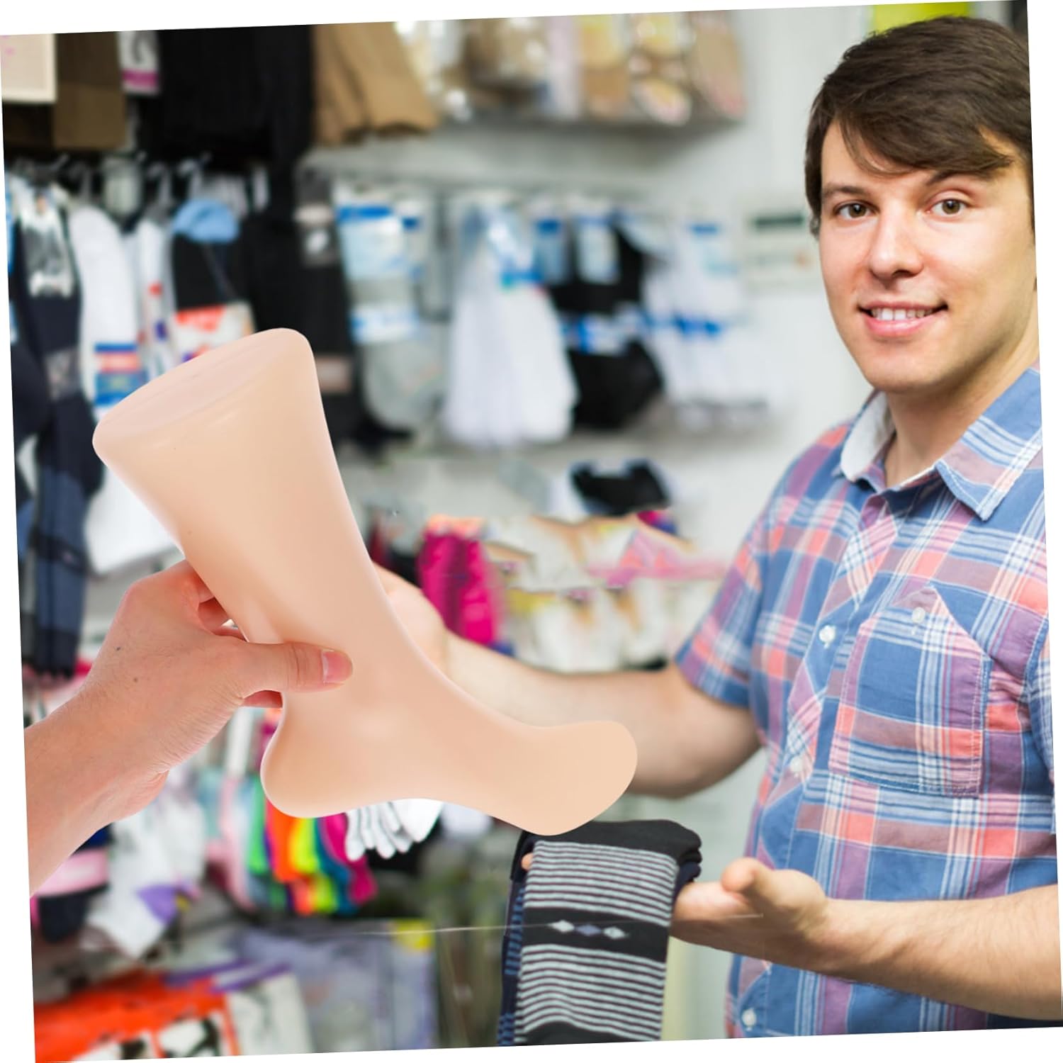 Versatile: leggero e compatto, ideale per i viaggi, così puoi portarlo facilmente in luoghi diversi. Pratico: ideale per esporre e fotografare calzini corti. Questo piede artificiale migliora la presentazione dei tuoi prodotti. Piede di manichino, stampi per esposizione di calze Realistico: progettato con una forma realistica del piede, migliora notevolmente la presentazione di calzini, accessori di gioielli per calzini, piedi di manichino per calzini Solido: questo modello di piede è realizzato in plastica e progettato per durare, garantendo durata e uso a lungo termine È utilizzato per conservare calzini, come manichino per calzini Accattivante: ideale per creare esposizioni accattivanti Questo modello di piede per scarpa è realizzato in plastica aiuta ad attirare facilmente l'attenzione dei clienti su calzini corti, supporti per calzini e piedi di manichino