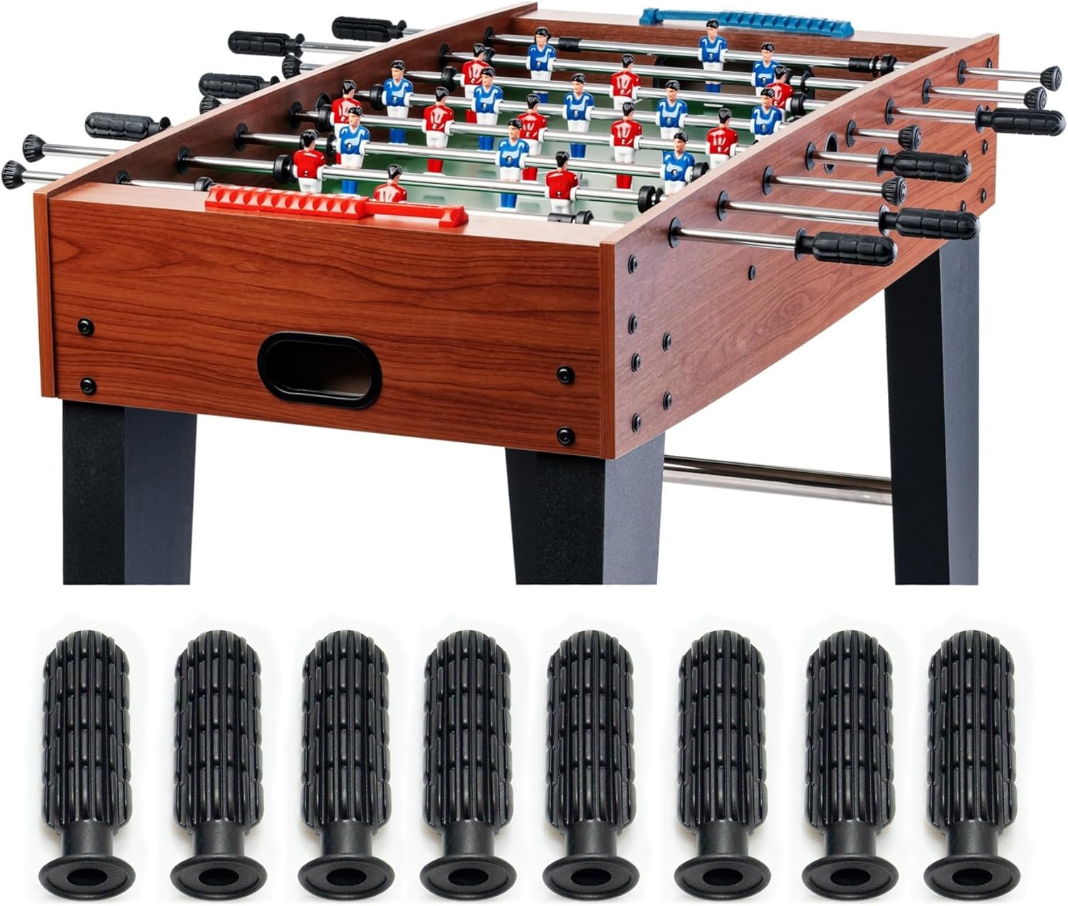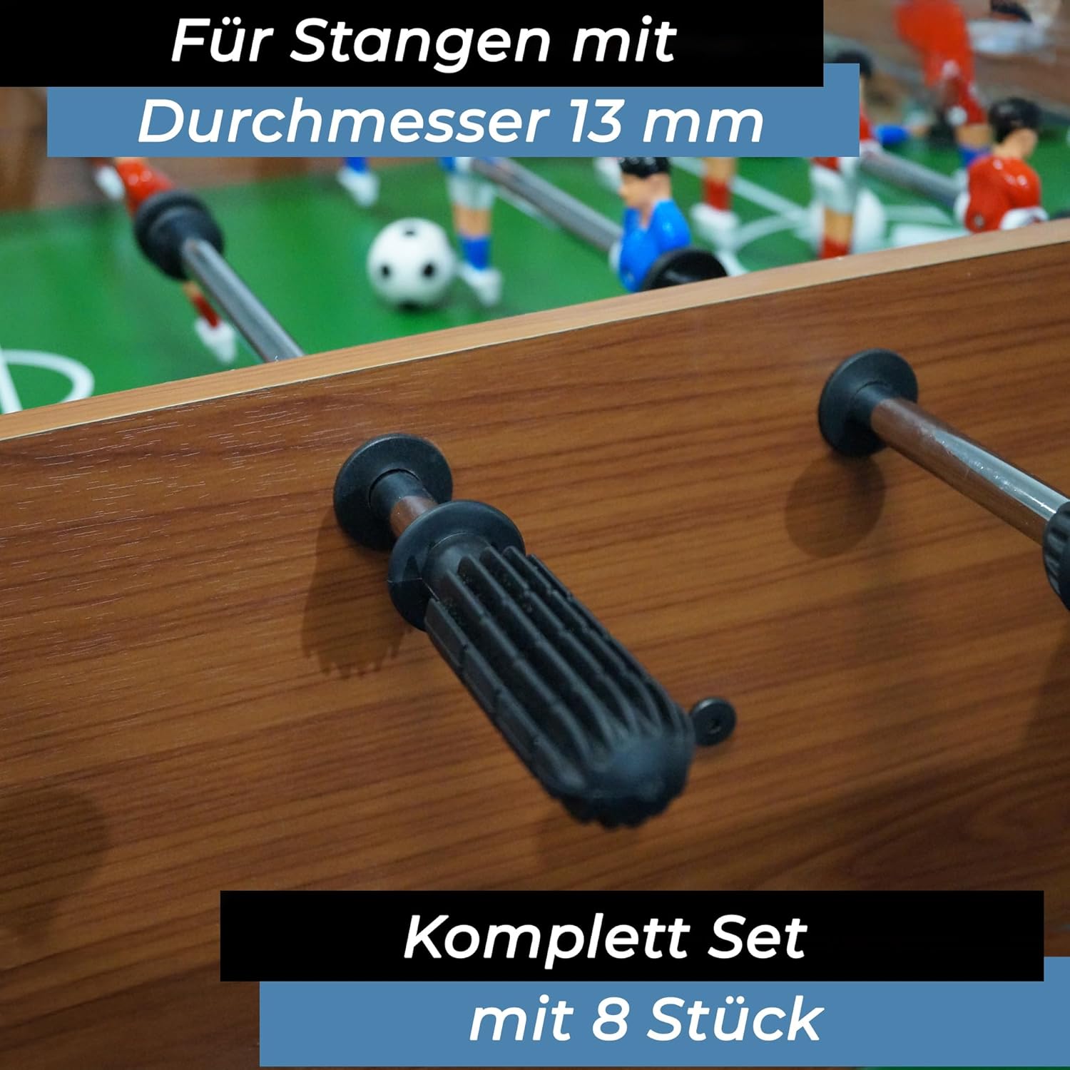 Ogni giocatore di biliardino sa quanto siano cruciali la dimensione e la forma delle maniglie del biliardino per il gioco. La maniglia da biliardino Hobby è adatta per tavoli da biliardino più piccoli con barre di gioco da 13 mm ed è quindi utilizzata principalmente per bambini e ragazzi. La speciale miscela plastica lo rende antiscivolo e garantisce una presa ottimale. Il manico lungo 95 mm e spesso solo 27 mm presenta numerose scanalature longitudinali e quindi si adatta bene alle mani dei bambini. La maniglia è molto robusta e si adatta al palo senza allentarsi o scivolare. Prodotto di qualità testato per le sostanze nocive di Bandito, il marchio leader negli sport professionistici del calcio balilla. La maniglia si adatta a tutti i pali da biliardino standard da 13 mm. Viene consegnata in confezioni da 8. In set, ovvero per la dotazione completa di 4 canne da gioco per lato giocatore.