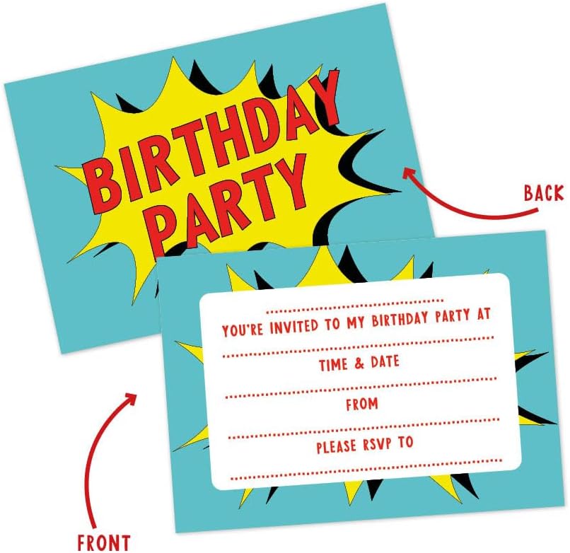 Dalla gamma Manta Makes di inviti per feste. Adatto a feste di qualsiasi età, hanno un design accattivante stampato con accenti di colore abbinato. 12 inviti per festa di compleanno per bambini, formato A6 (105 mm x 148 mm) Stampato su entrambi i lati su cartoncino allo stesso modo una cartolina, design divertente e brillante. (Senza buste). Gli inviti per feste di compleanno sono stampati professionalmente nel Regno Unito. Inviti per feste e includere spazi per scrivere i tuoi ospiti, la data, l'ora, il luogo e anche la persona a cui inviare l"RSVP. Manta Makes ha una vasta gamma di inviti per ragazze e ragazzi nel nostro negozio, si prega di esplorare. Amiamo creare inviti per feste per bambine e ragazzi, nonché inviti che donne e uomini adoreranno. Manta Makes Produce inviti per feste e biglietti di compleanno per adulti e bambini dalla New Forest, Regno Unito. Amiamo ciò che facciamo, illustrando i nostri disegni e imballando a mano con amore per raggiungerti.