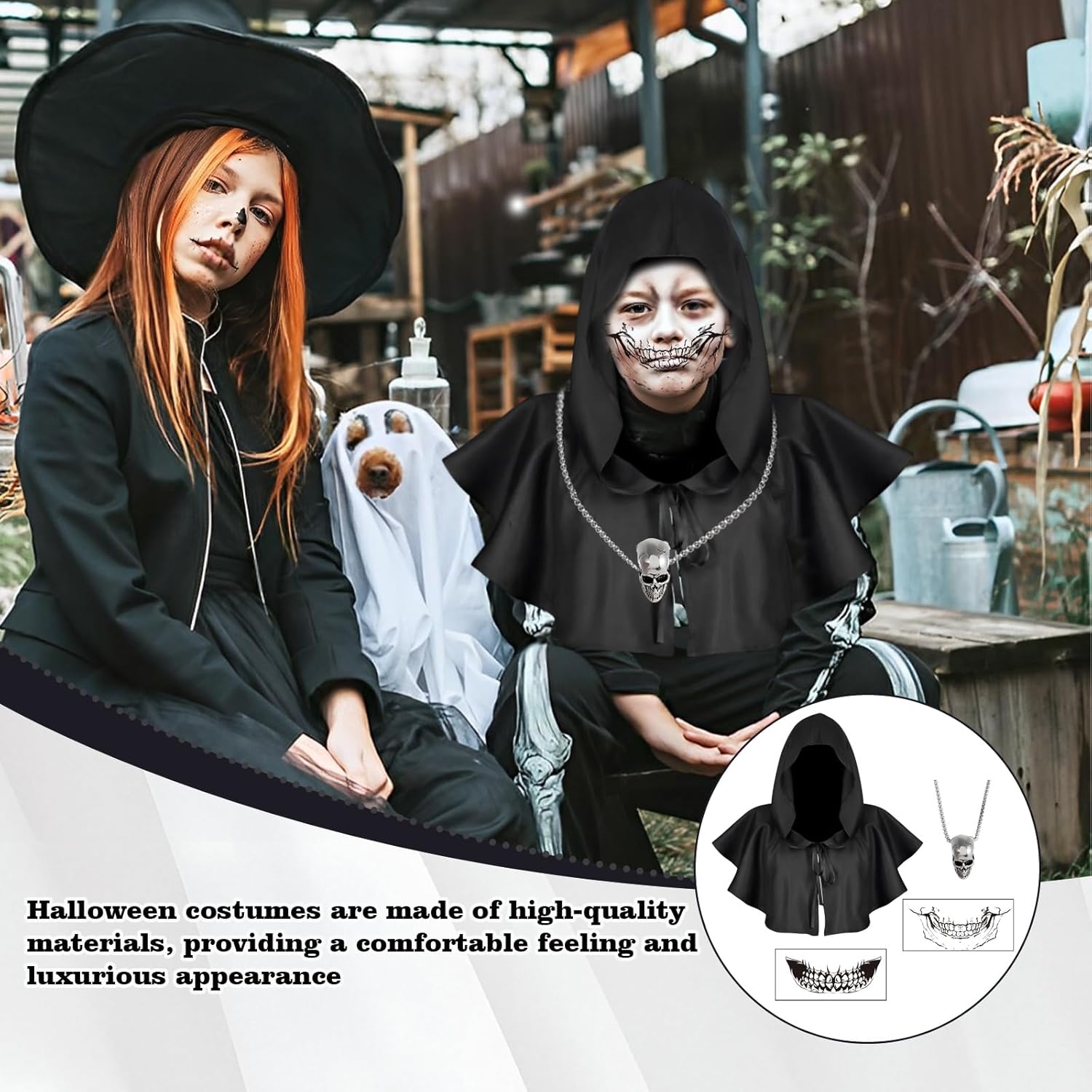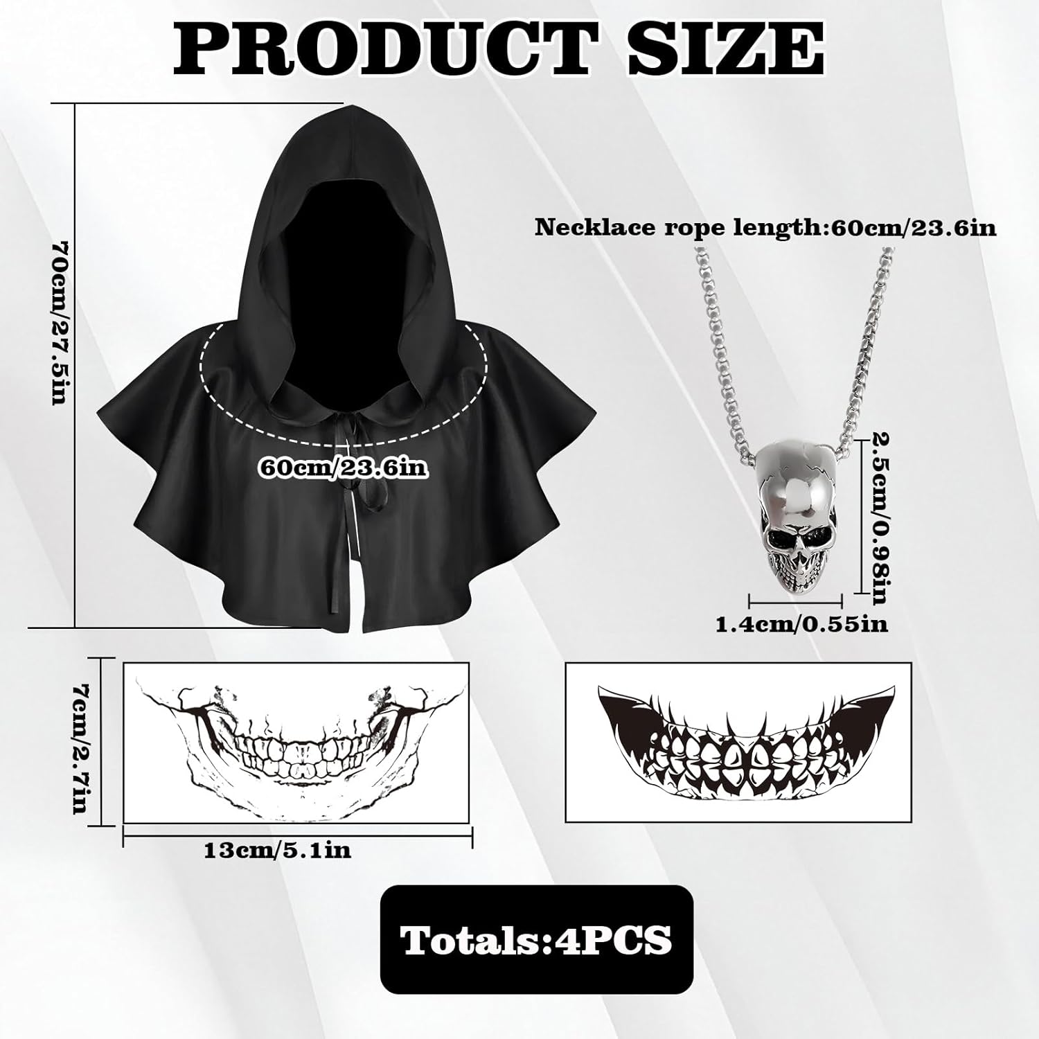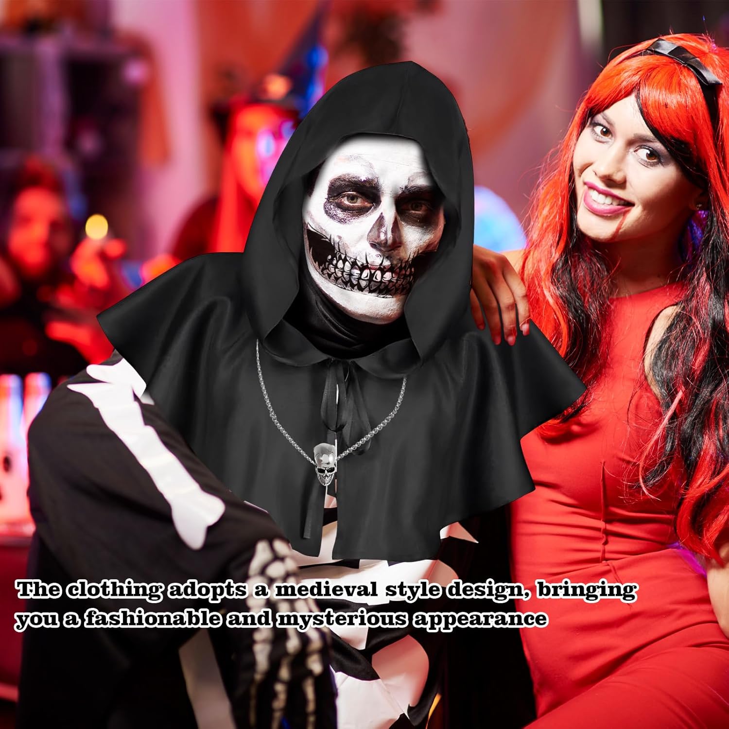 1. Materiale di Alta Qualità: La mantella medievale è realizzata con materiali di alta qualità che offrono comfort e un aspetto lussuoso. La sua morbidezza e resistenza garantiscono che tu possa indossarla durante tutta la notte senza alcun disagio, mantenendo sempre un aspetto elegante e sofisticato. 2. Design Medievale Unico: Ispirato allo stile medievale, il design di questa mantella con cappuccio aggiunge un tocco di mistero e fascino al tuo look. Perfetta per ricreare il personaggio di un mago, strega o cavaliere, ti farà sentire protagonista di una storia epica. 3. Taglia Unica Unisex: La mantella è progettata per adattarsi alla maggior parte delle persone, sia uomini che donne. Con una vestibilità comoda e versatile, è l'ideale per chi ama il cosplay e i costumi tematici, rendendola la scelta perfetta per tutti gli appassionati di giochi di ruolo. 4. Accessori Perfetti per Halloween e Non Solo: Questo set include una collana con teschio e due adesivi con facce da teschio, ideali per arricchire ulteriormente il tuo look. La mantella è perfetta per Halloween, ma può essere utilizzata anche in occasione di feste a tema medievale, performance teatrali e altre celebrazioni. 5. Perfetta per Ogni Occasione: La mantella è versatile e può essere utilizzata per una varietà di eventi, tra cui Halloween, Natale, feste di compleanno, balli in maschera e spettacoli. Può anche diventare un regalo ideale per un amico o per te stesso, aggiungendo un tocco speciale a qualsiasi festa o evento.