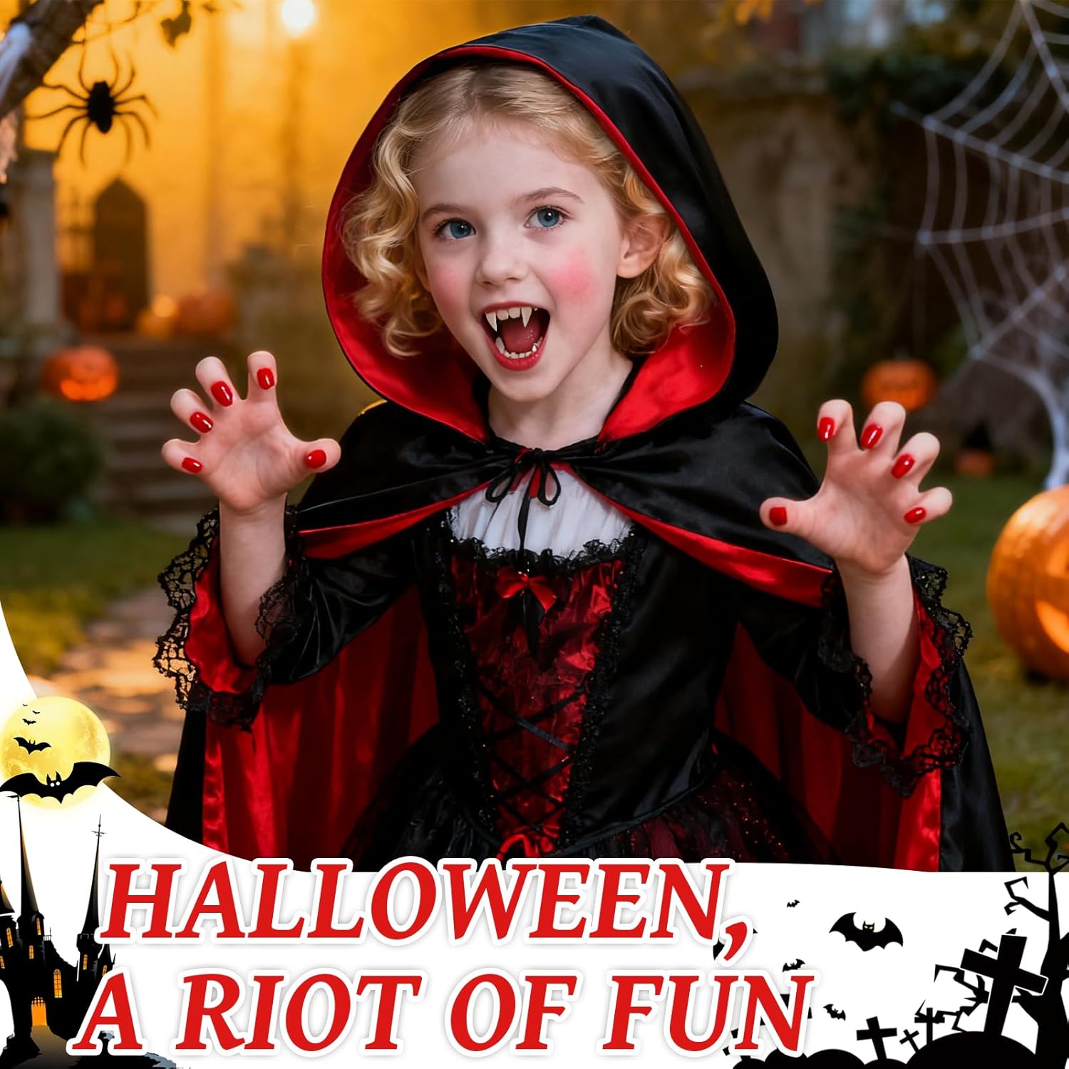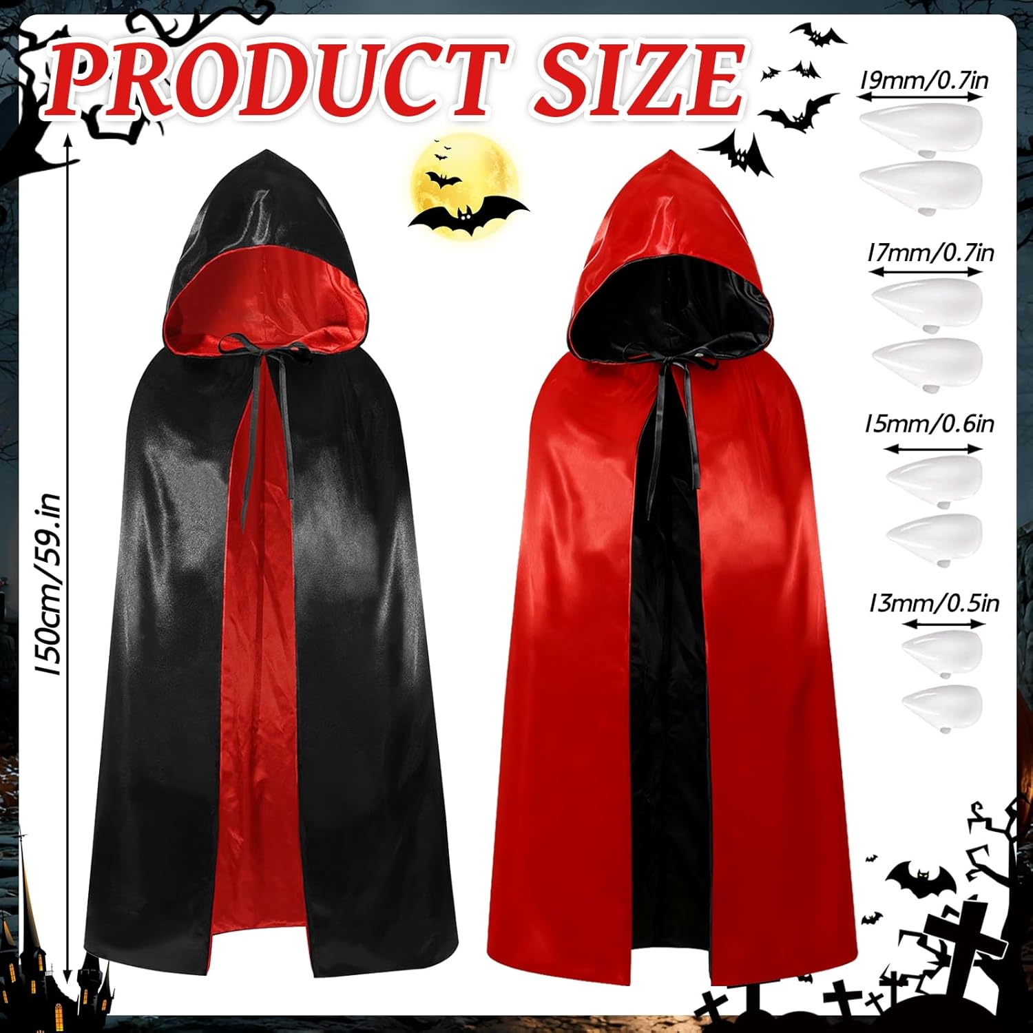 Descrizione prodotto Negra Roja Reversible Cape Disfraz Halloween Vampiro Cape à Capuche è realizzato in un tessuto tessuto leggero e di alta qualità, sottile e piacevole sulla pelle. Gli Vampiro Capo possono essere utilizzati su entrambi i lati, i denti di vampiro rendono il trucco più spaventoso. Non si sa mai cosa potrebbe succedere a Halloween. Aspetta che si tramonti, che sperimenti sorprese spaventose. Le creature della notte aspettano. Ho un piangendo Halloween! Questo Mantello con Cappuccio è adatto per uomini e donne per giocare una grande varietà di ruoli, come vampiro, morte, mago, strega, ecc. È perfetto per feste di Halloween, Natale, Carnevale, Pasqua, Rinascimento e Medioevo, matrimoni, feste, ecc. Nome del prodotto: Cape Nero Rosso Vampiro con Cappuccio Colore del prodotto: Capo a doppia faccia nero e rosso Dimensioni del prodotto: Abbigliamento di vampiro da 150 cm; La dimensione dei denti del chupasangre è: 13 MM * 1 coppia; 15 mm * 1 coppia; 17 mm * 1 coppia; 19 mm * 1 par Avviso di sicurezza Nessun avviso applicabile