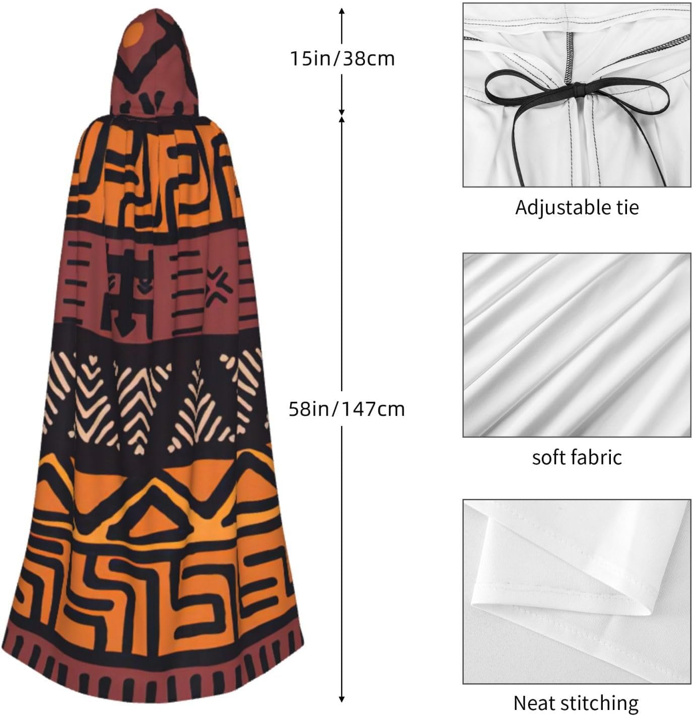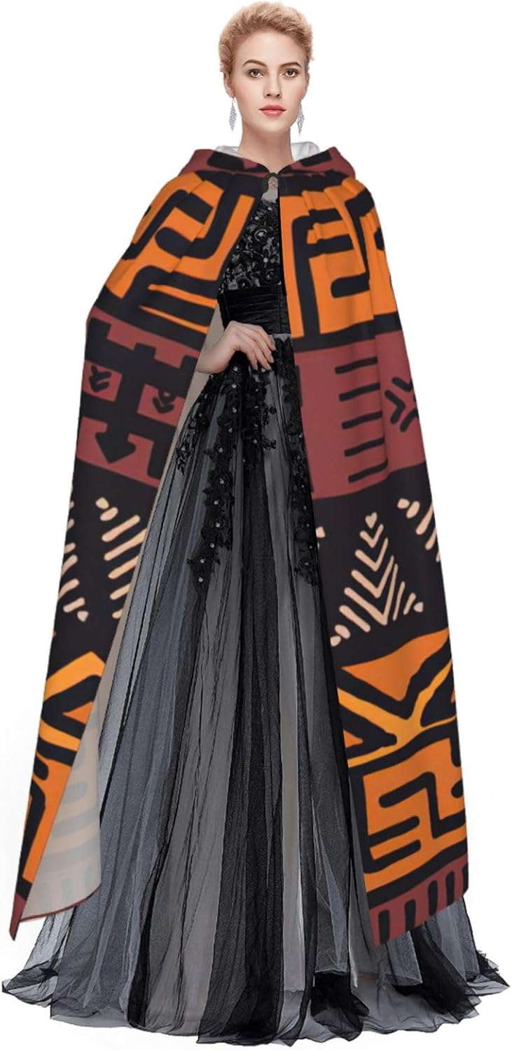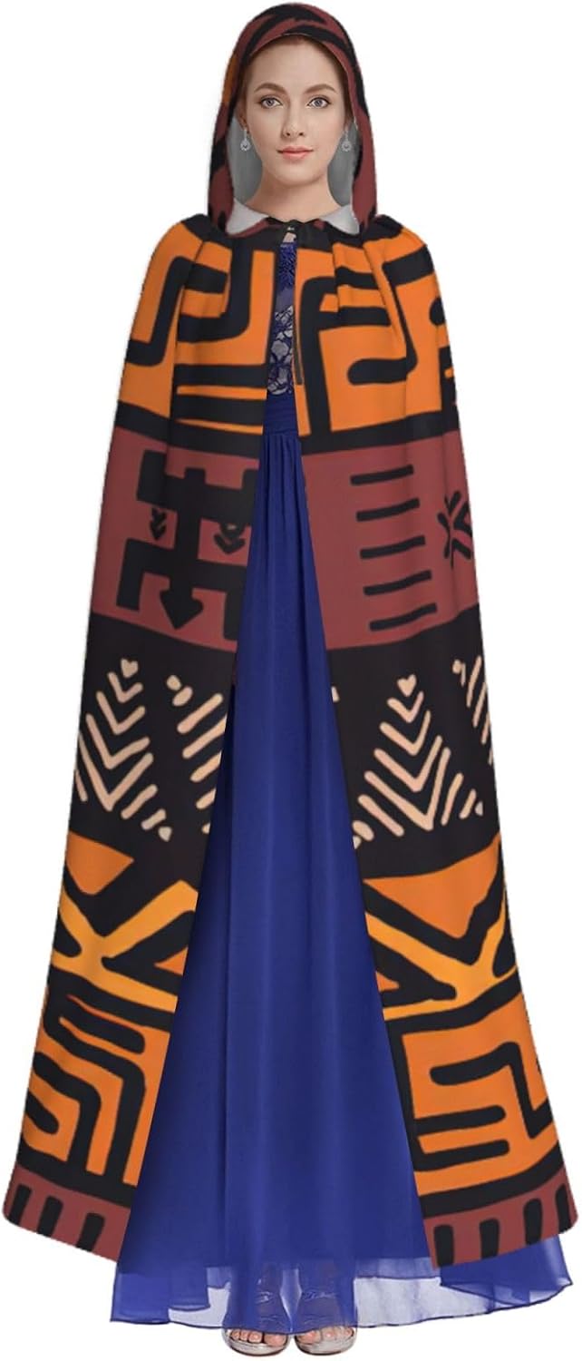 Mantello africano con cappuccio con stampa tribale in tessuto fango con cappuccio, un accattivante mantello con cappuccio per adulti per cosplay e Halloween