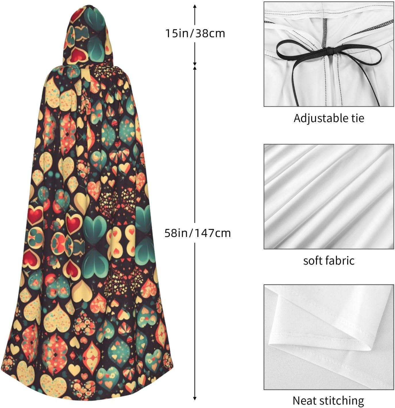 Materiale e design del fiore schiacciato a cuore: il tessuto è realizzato in 100% fibra di poliestere (poliestere) tessuto di alta qualità, morbido e confortevole. Il design con cappuccio non è solo elegante e bello, ma fornisce anche calore extra alla testa e al collo. Caratteristiche del prodotto: il poncho oversize con cappuccio è un poncho con cappuccio senza lacci, senza cerniera, comodo realizzato in tessuto lungo, resistente e non prurito. Dimensioni del prodotto: il cappello misura 38,1 cm di altezza, 147,3 cm di lunghezza, 154 cm di larghezza. Adatto per occasioni: feste di Natale, feste di Halloween, feste in costume, celebrazioni pagane. Ideale per travestimenti, cosplay, costumi da scena, streghe, vampiri, royalty, scelta regalo perfetta per amici o familiari. Persone applicabili: adulti, unisex