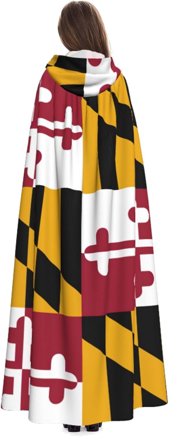 Ruba lo spettacolo a qualsiasi evento di Halloween o a tema con il nostro mantello con cappuccio. Realizzato con un tessuto confortevole, non pruriginoso, questo mantello con stampa bandiera del Maryland è progettato per assicurarti di distinguerti tra la folla. Il mantello è facile da indossare e togliere, grazie alla cravatta e all'assenza di una cerniera. Con un design facile da pulire, può essere lavato in lavatrice o a mano per garantire che sia sempre pronto per il tuo prossimo evento. Prova la perfetta miscela di comfort, stile e versatilità con il nostro mantello con cappuccio.