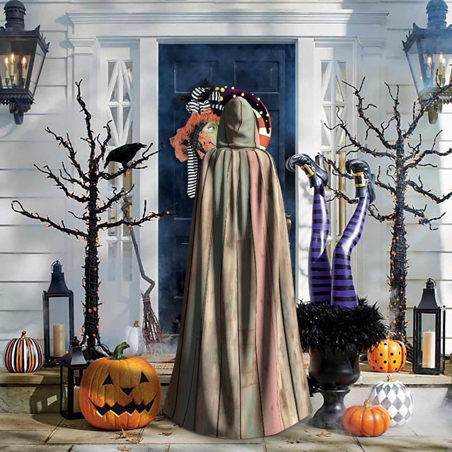 Mantello con cappuccio a quadri a righe mantello medievale mantello da mago mantello nero per adulti costume da strega