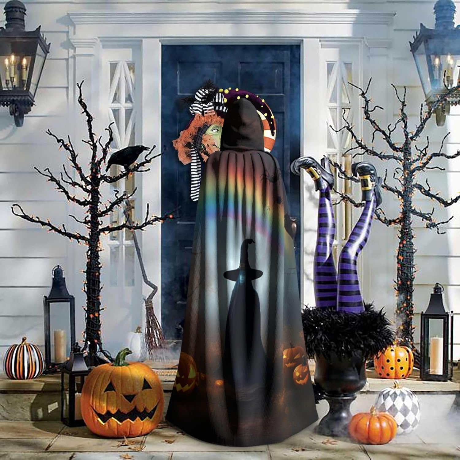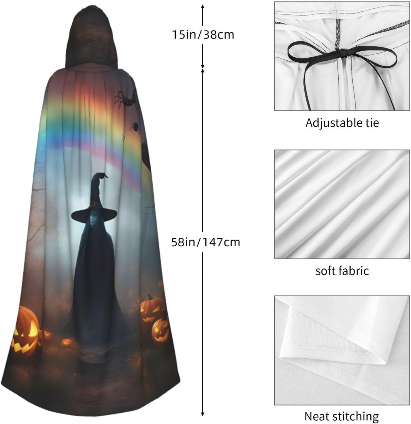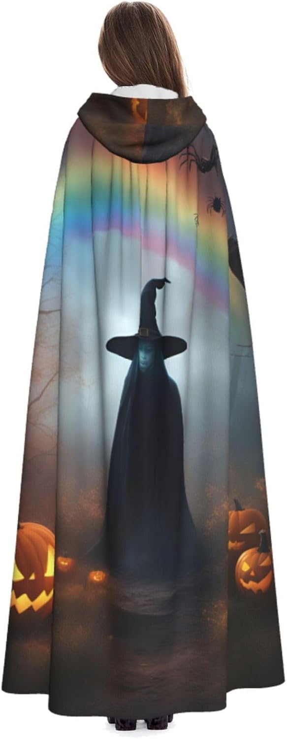 Mantello con cappuccio arcobaleno per Halloween, fantasma, con ragni, per adulti, elegante, per carnevale, feste a tema, cosplay