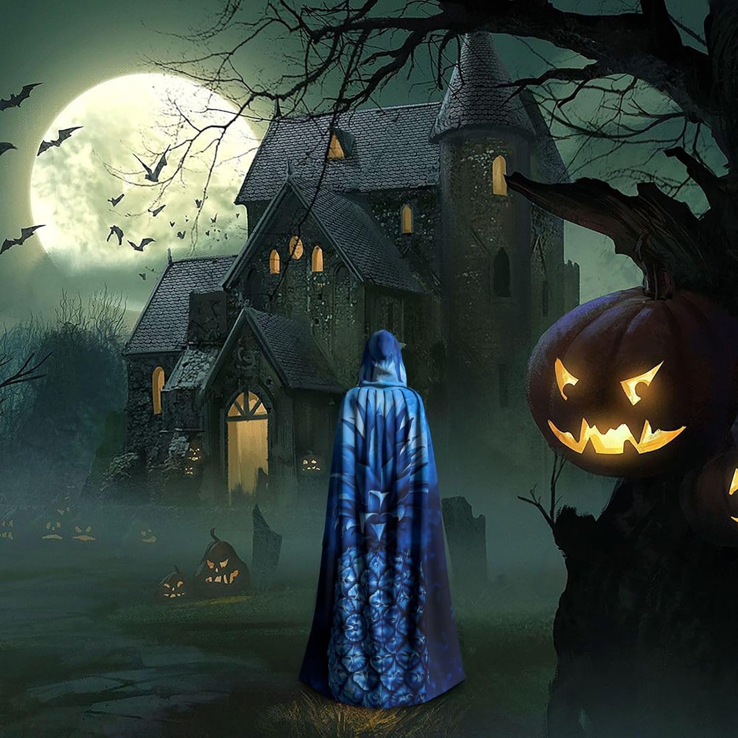 Mantello con cappuccio blu ananas mantello medievale mantello mago mantello nero mantello da strega costume adulto