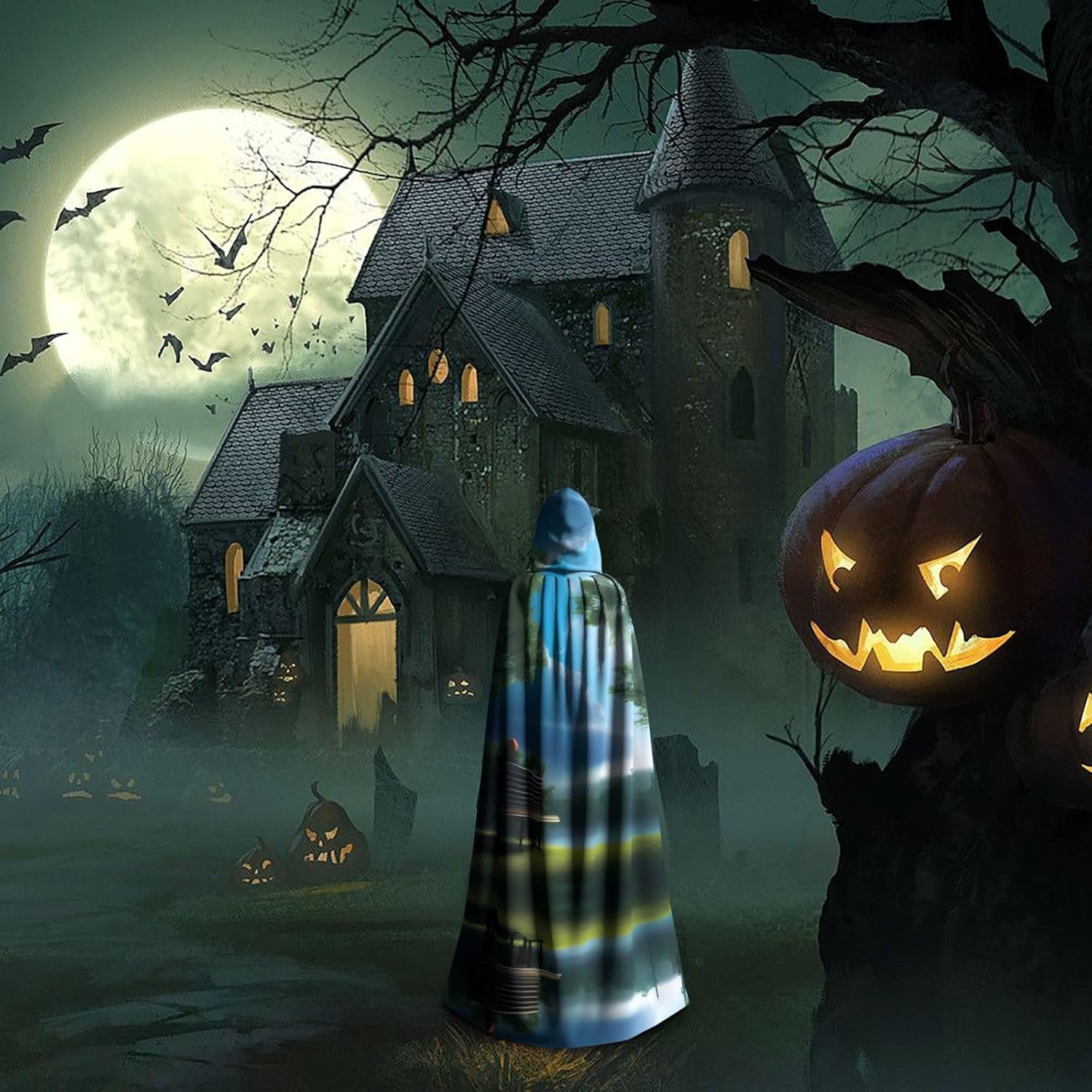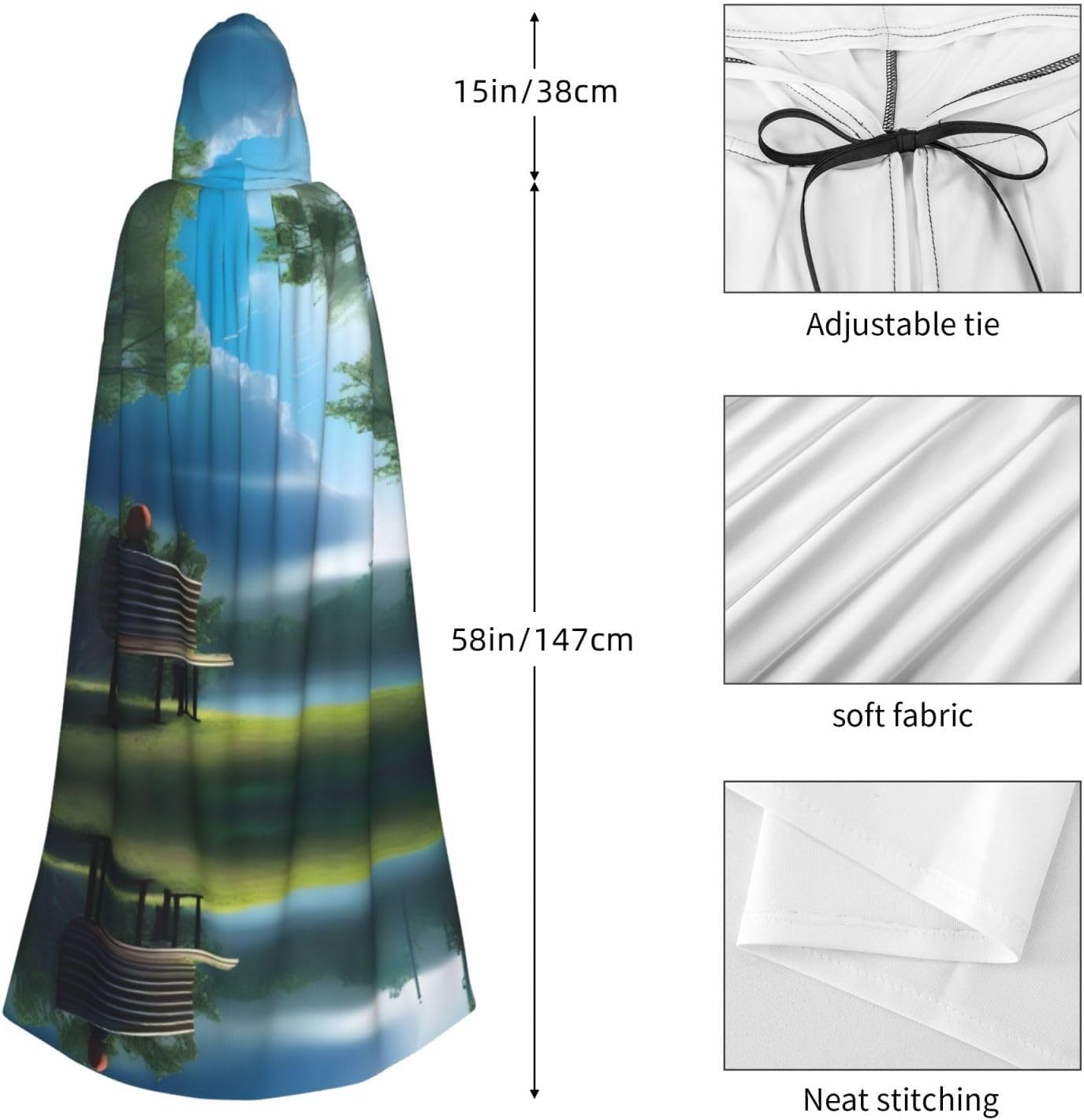 Mantello con cappuccio per adulti con fumo e pioggia blu cielo con mantello con cappuccio oversize, è con papillon, senza cerniera, adatto per Halloween, costumi cosplay, costumi da palco, mascherata, feste a tema, balli, fumetti, ecc. Può essere utilizzato per feste, martedì grasso, Halloween, feste in costume e molto altro ancora.