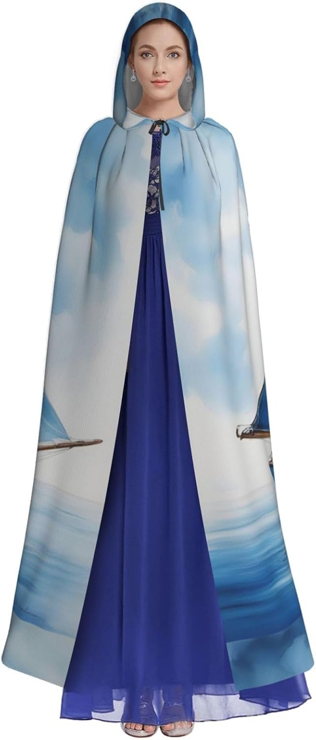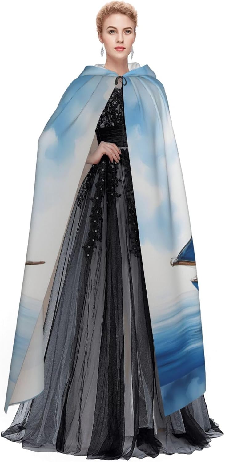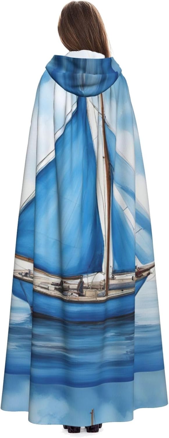 Mantello con cappuccio blu con stampa di barca a vela per tutti i costumi cosplay unisex decorazione di Halloween forniture di carnevale