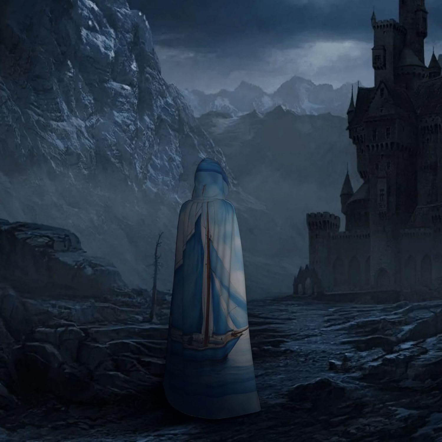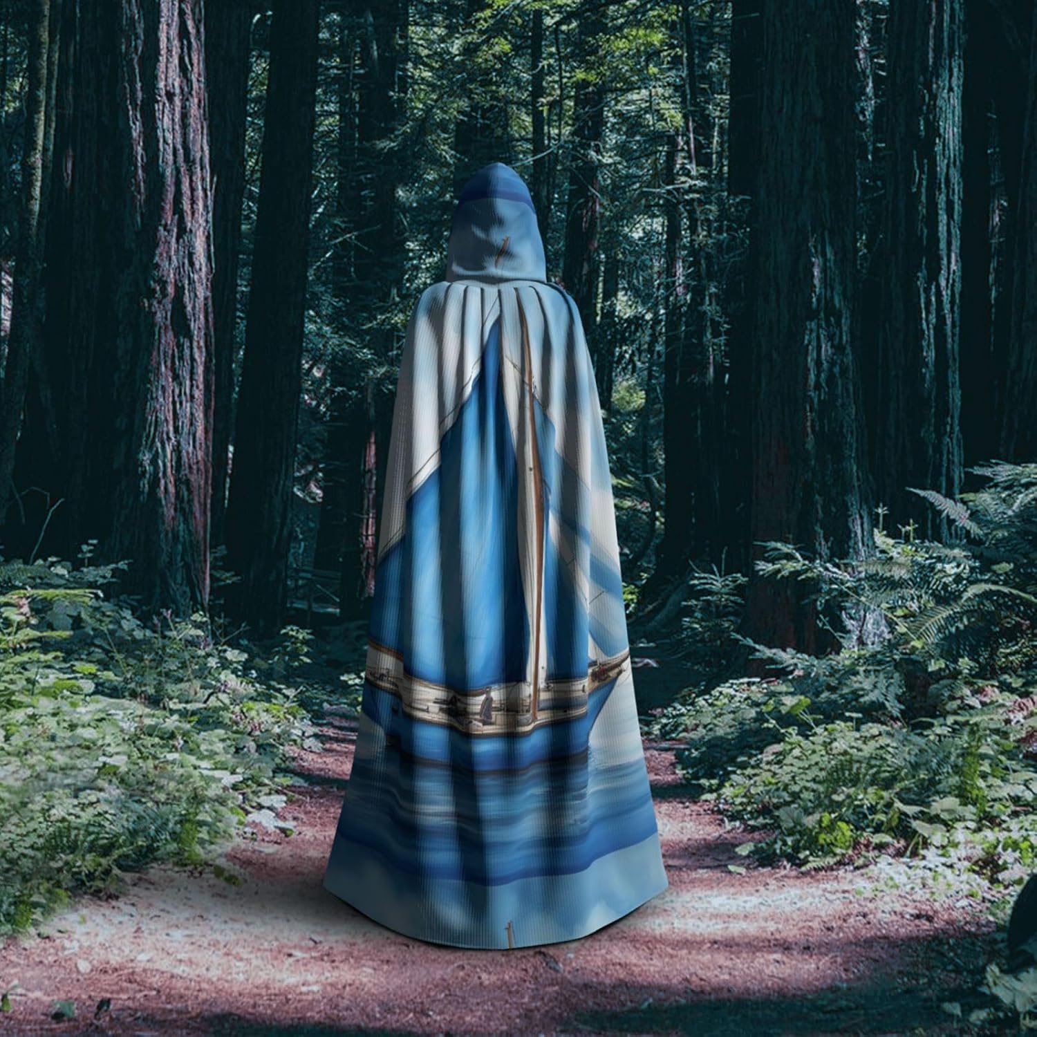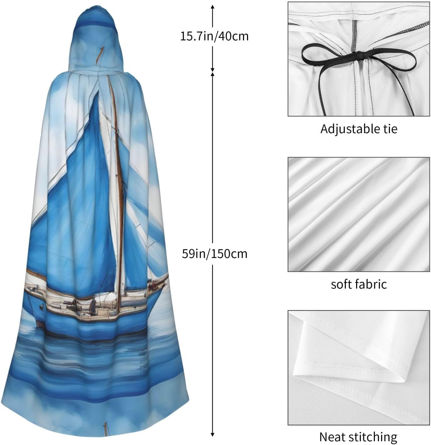 Mantello con cappuccio blu con stampa di barca a vela per tutti i costumi cosplay unisex decorazione di Halloween forniture di carnevale