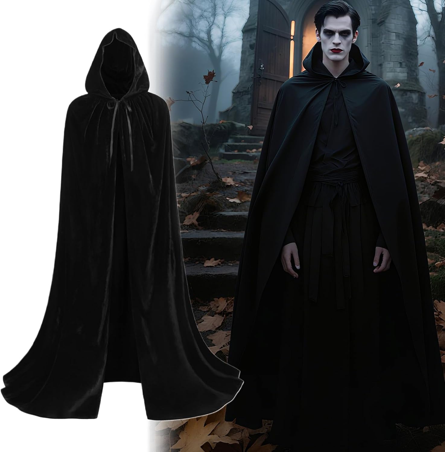 Velvet Halloween Wear: Perfect for Halloween Party Wear, con morbido tessuto in velluto che garantisce comfort e una lussuosa consistenza per la pelle che migliora il mantello con il cappuccio 'esperienza Piano stregonista adattabile: classico silhouette di Cape con cappuccio completa le streghe, i vampiri e i costumi fantasy, offrendo al contempo l'abbinamento senza sforzo con diversi abiti per eventi a tema Mantello con cappuccio versatile: un massimo con un bordo misterioso, il mantello con cappuccio qualsiasi ensemble per incontri di Halloween o attività fantasiose basate sul tema Elegante Silhouette Improver: un lusinghiero coppie di drappeggi con un mantello con cappuccio medievale accomodante promuove la facilità di movimento senza compromettere l'eleganza Design a bassa manutenzione: con attenzione su una facile manutenzione, questo mantello con cappuccio mantiene intatta la sua forma e presentazione, rendendolo adatto per un uso frequente senza sforzo extra