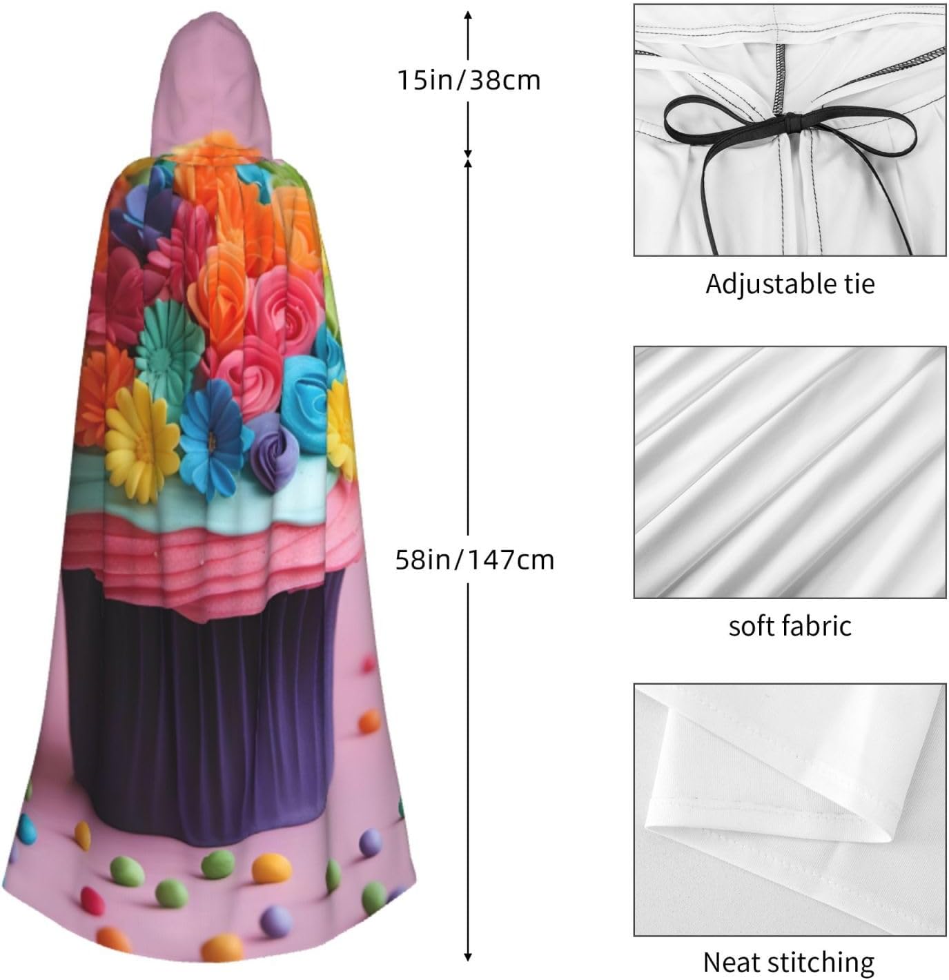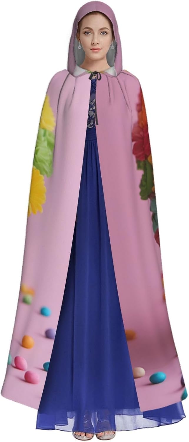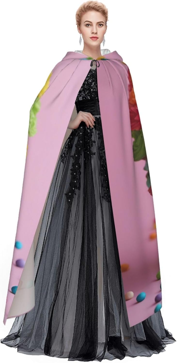 Mantello con cappuccio colorato Cupcakes arcobaleno con stampa di torta floreale con cappuccio un accattivante mantello con cappuccio per adulti per cosplay e Halloween
