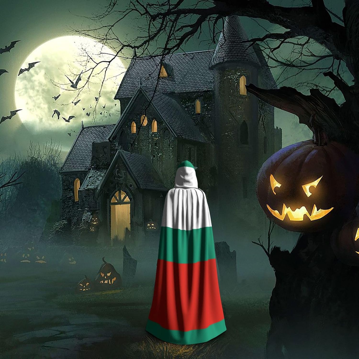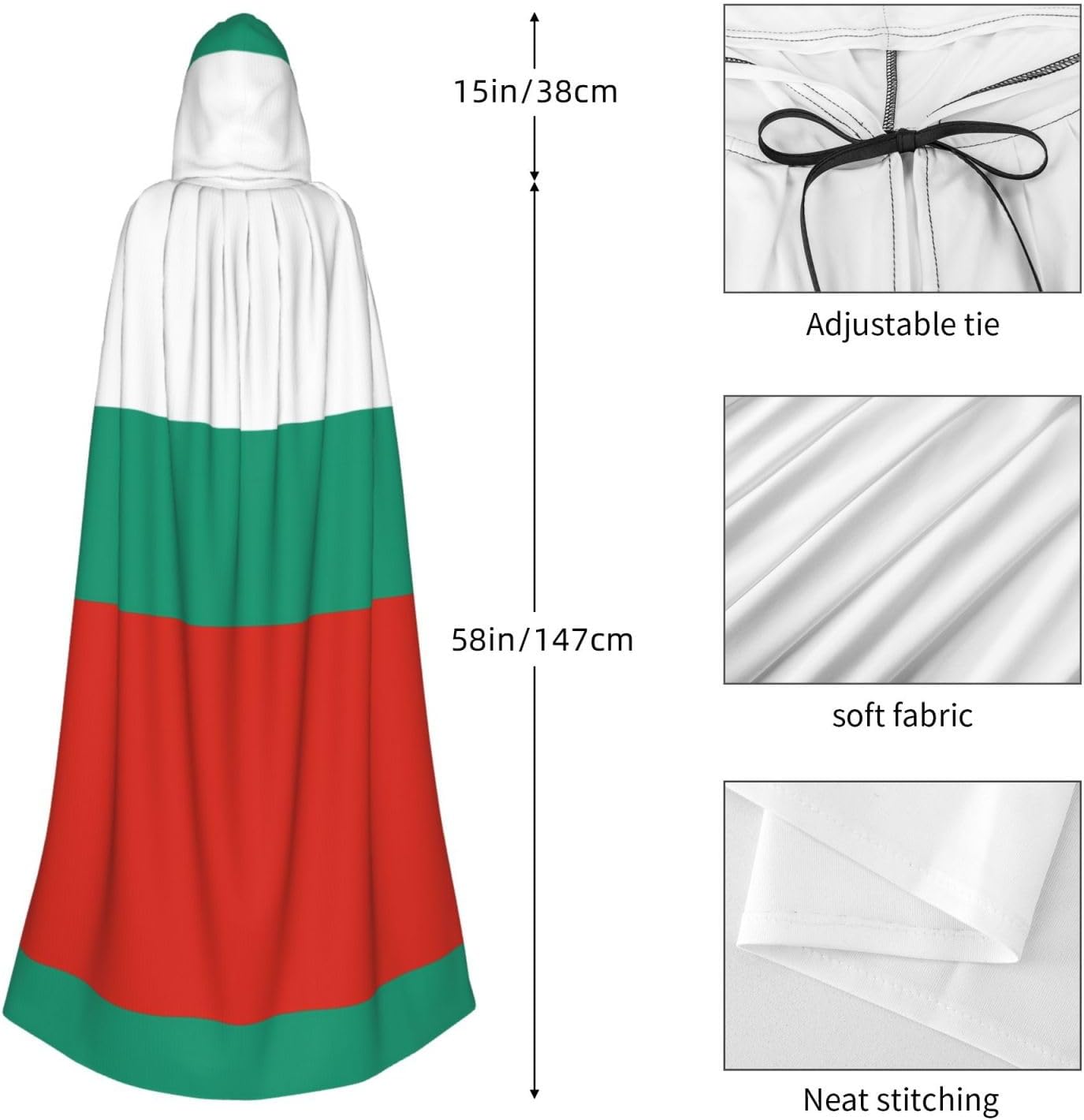 Mantello con cappuccio per adulti con bandiera bulgara con mantello con cappuccio oversize, è con papillon, senza cerniera, adatto per Halloween, costumi cosplay, costumi da palco, feste in maschera, feste a tema, balli, fumetti, ecc. Può essere utilizzato per feste, martedì grasso, Halloween, feste in costume e molto altro ancora.