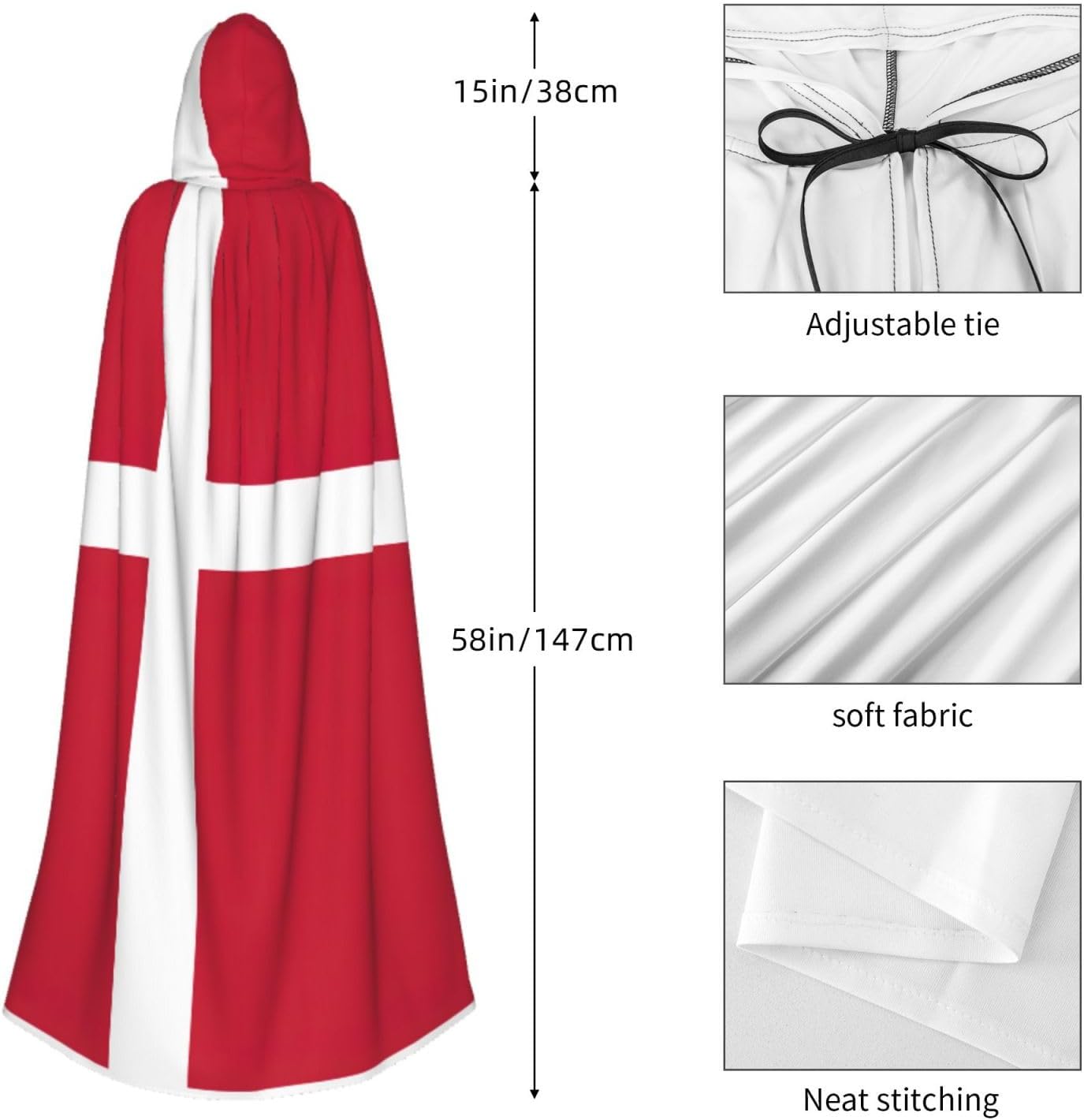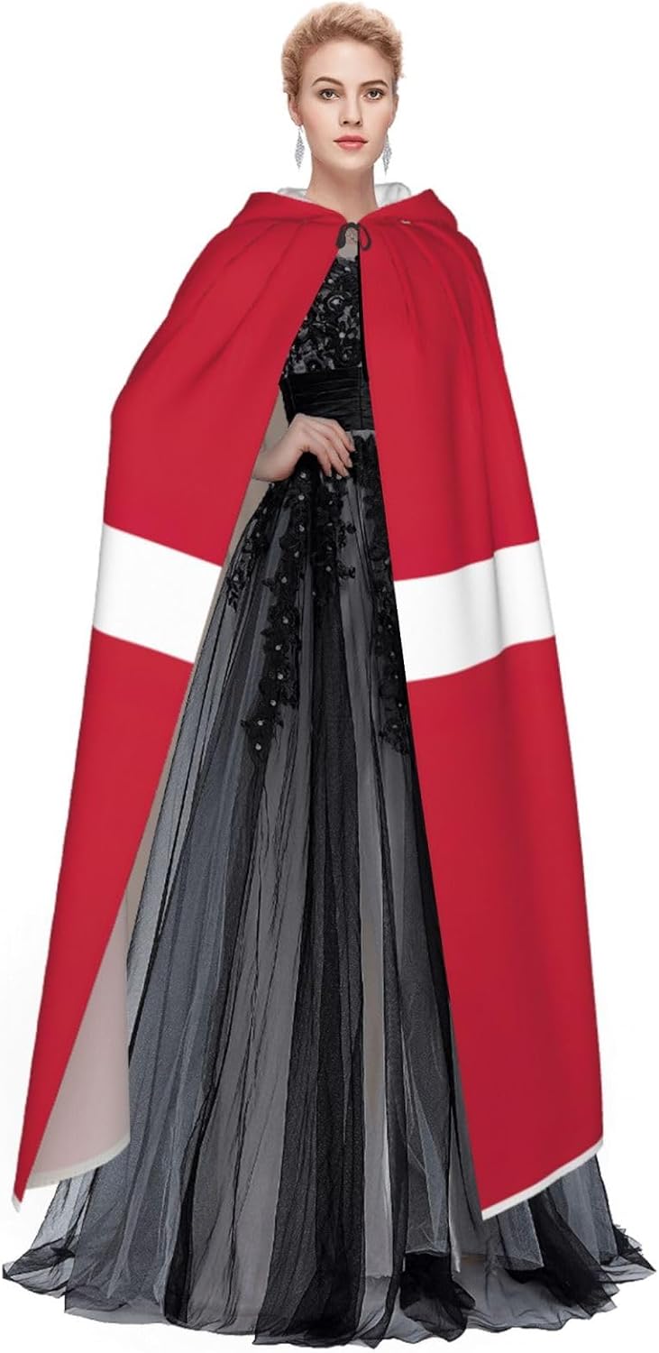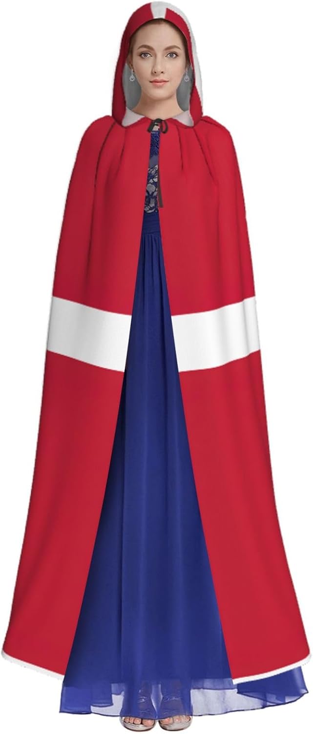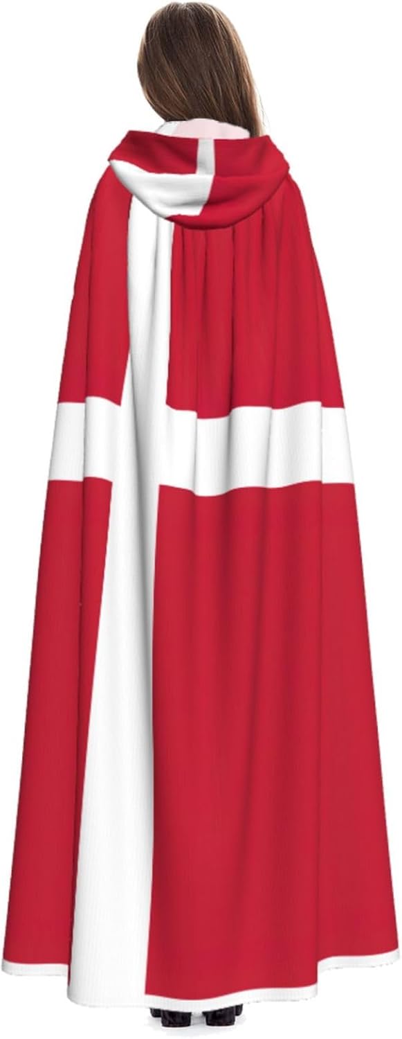 Mantello con cappuccio con bandiera danese mantello medievale mantello da mago mantello nero per adulti costume da strega