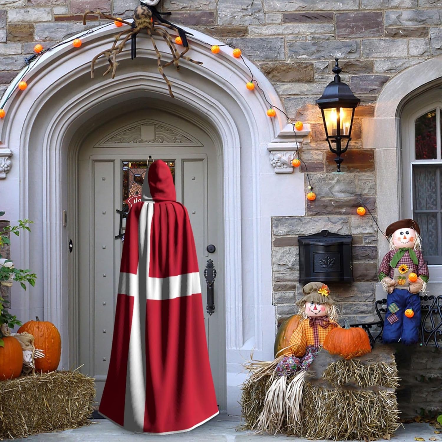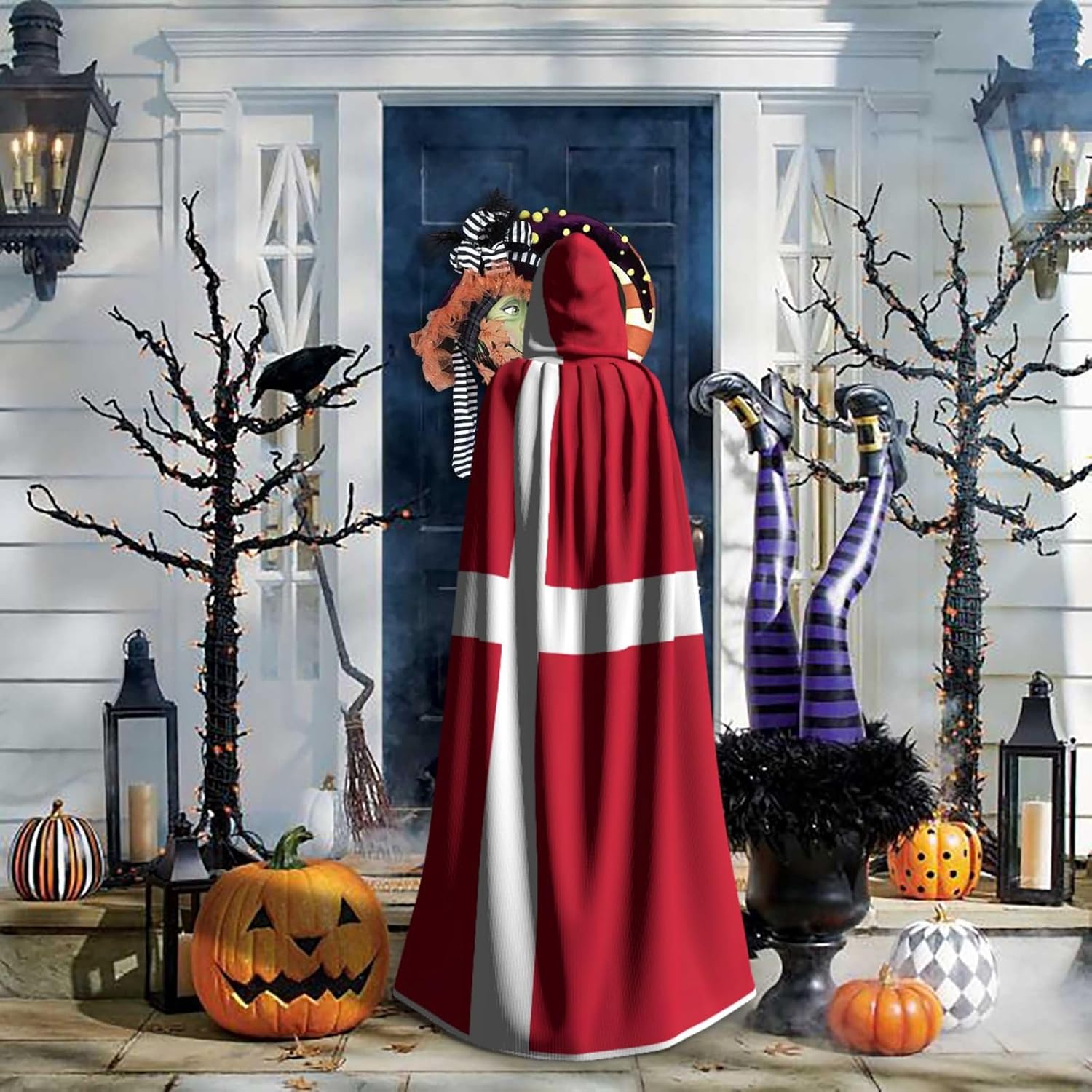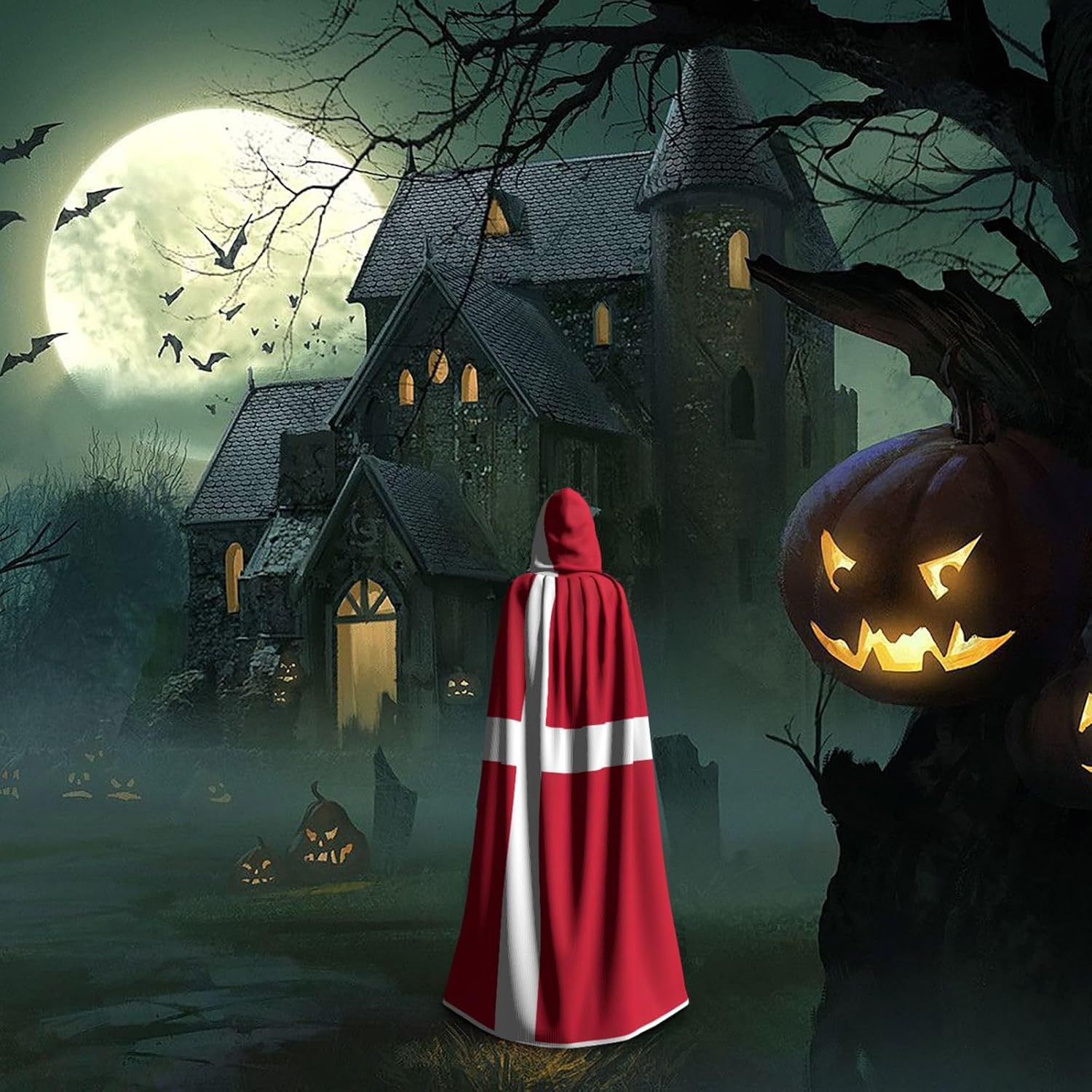 Mantello con cappuccio con bandiera danese mantello medievale mantello da mago mantello nero per adulti costume da strega