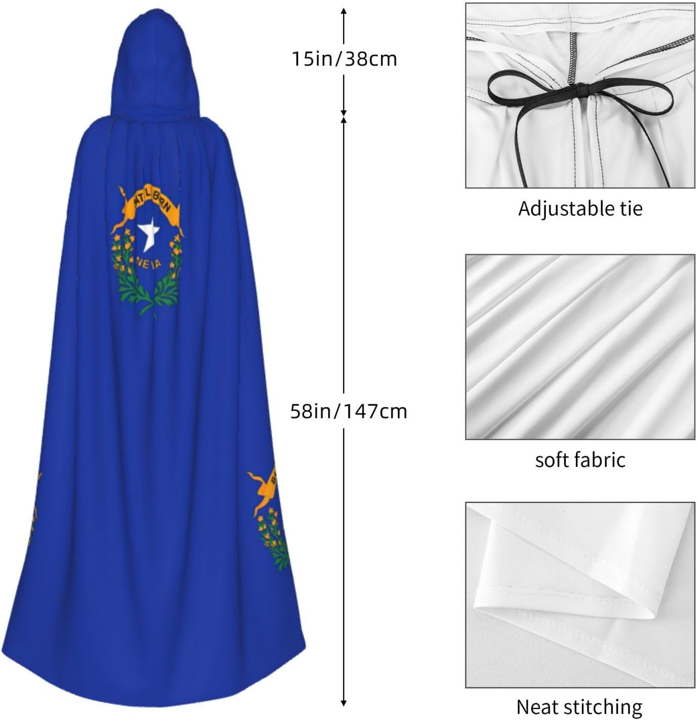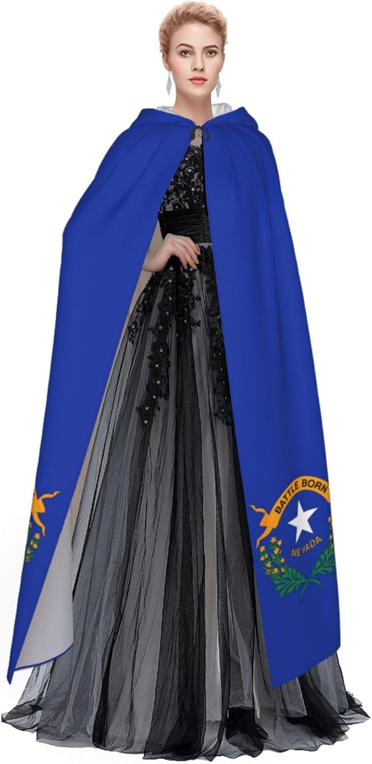 Mantello con cappuccio con bandiera del Nevada, mantello medievale per Halloween, mantello da mago, mantello nero, costume da strega per adulti