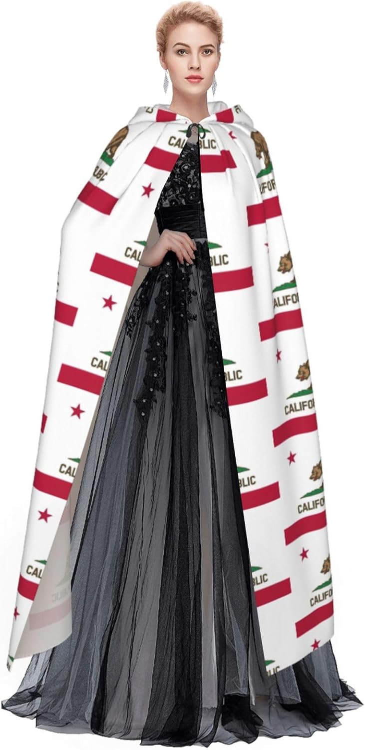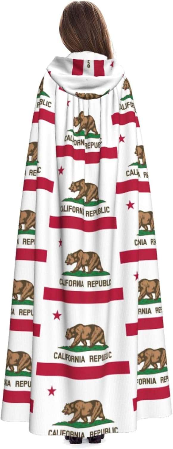 Mantello con cappuccio con bandiera della California, unisex, per Halloween, Natale, vampiro, stregone, costume cosplay