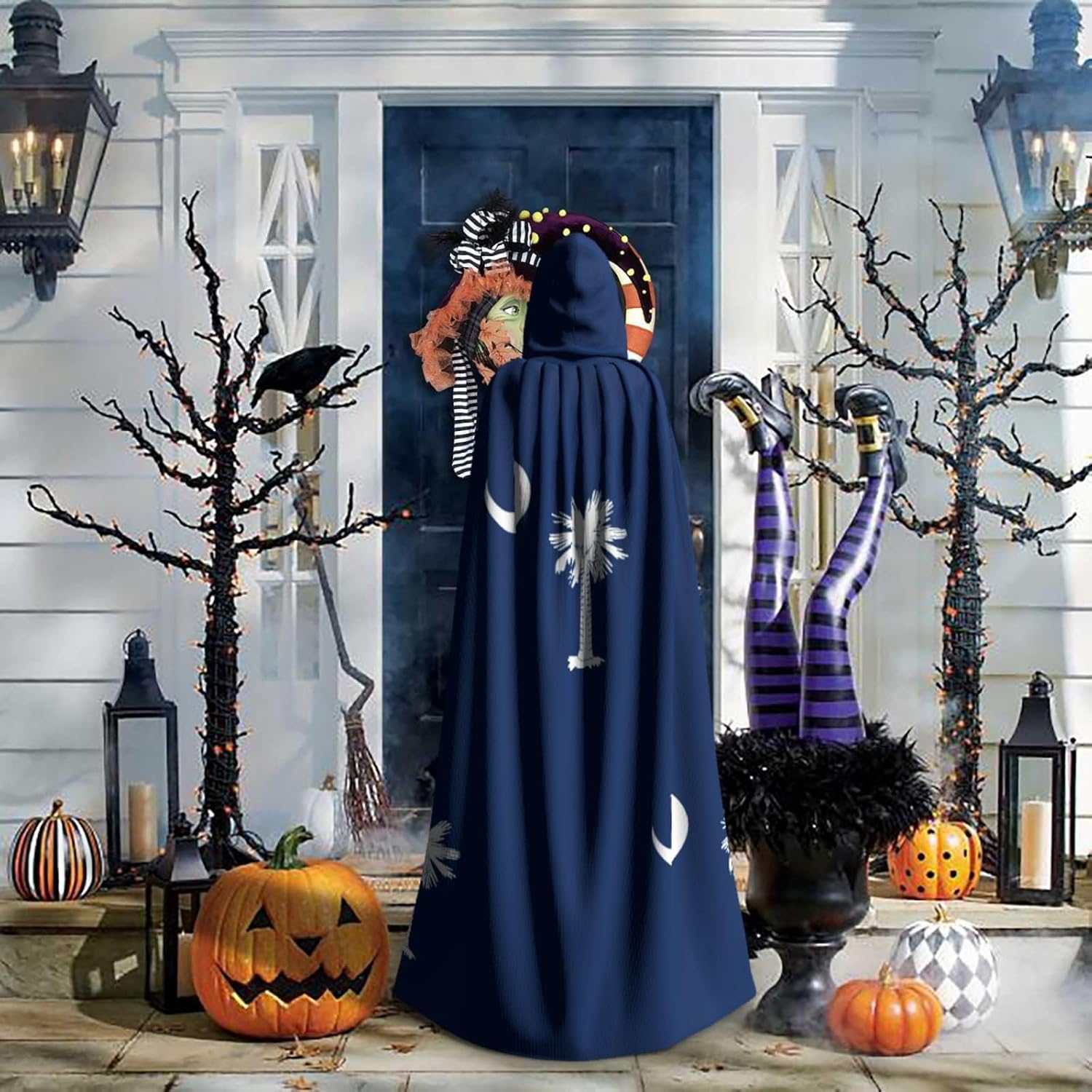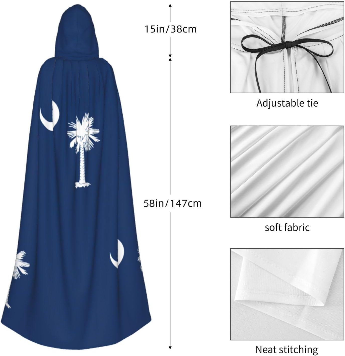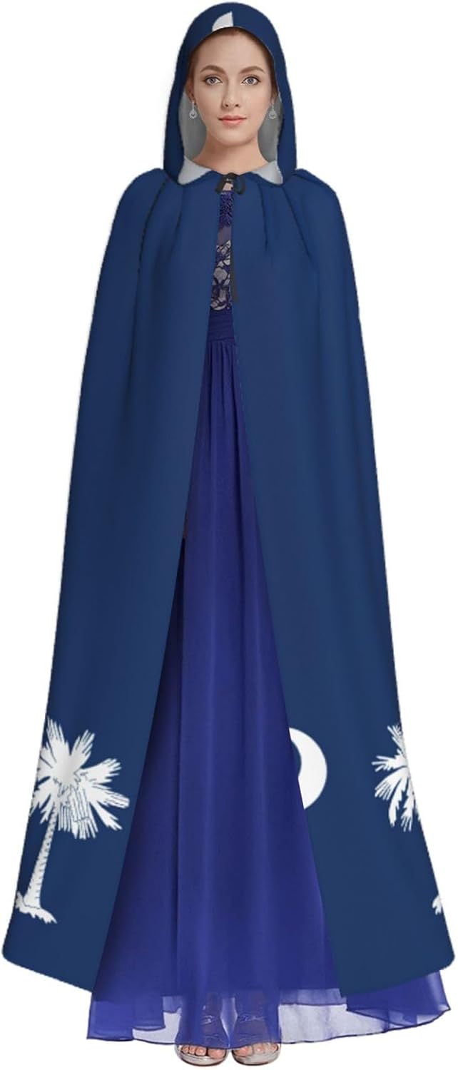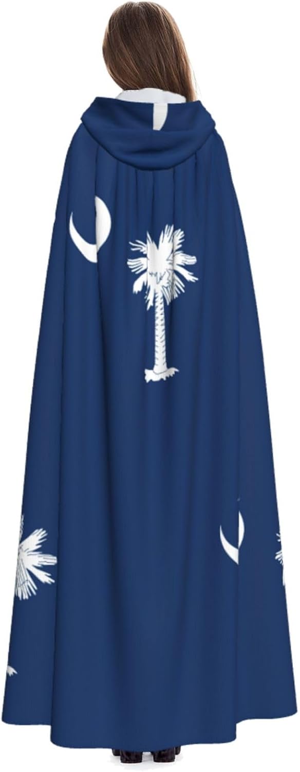 Mantello con cappuccio con bandiera della Carolina del Sud, mantello medievale per Halloween, mantello da mago, mantello nero, costume da strega per adulti