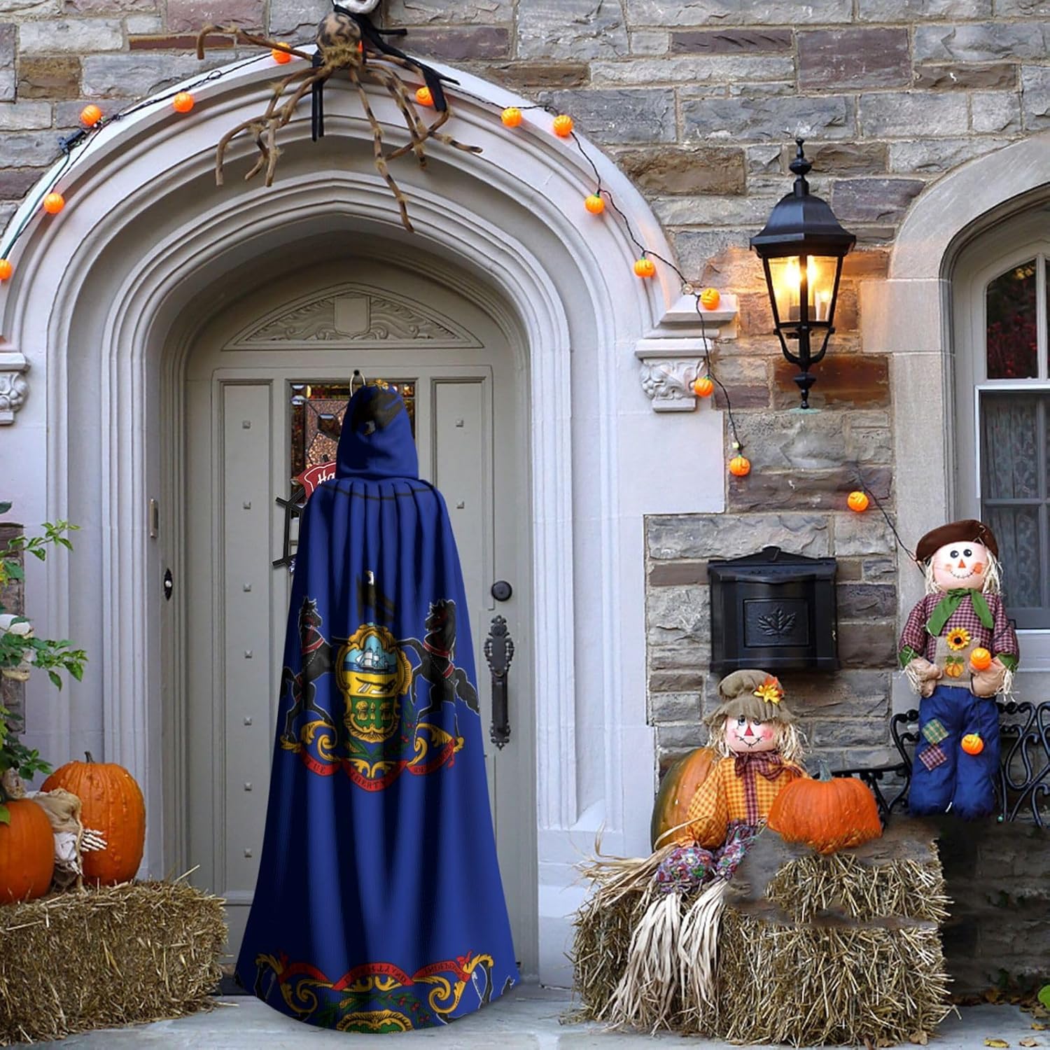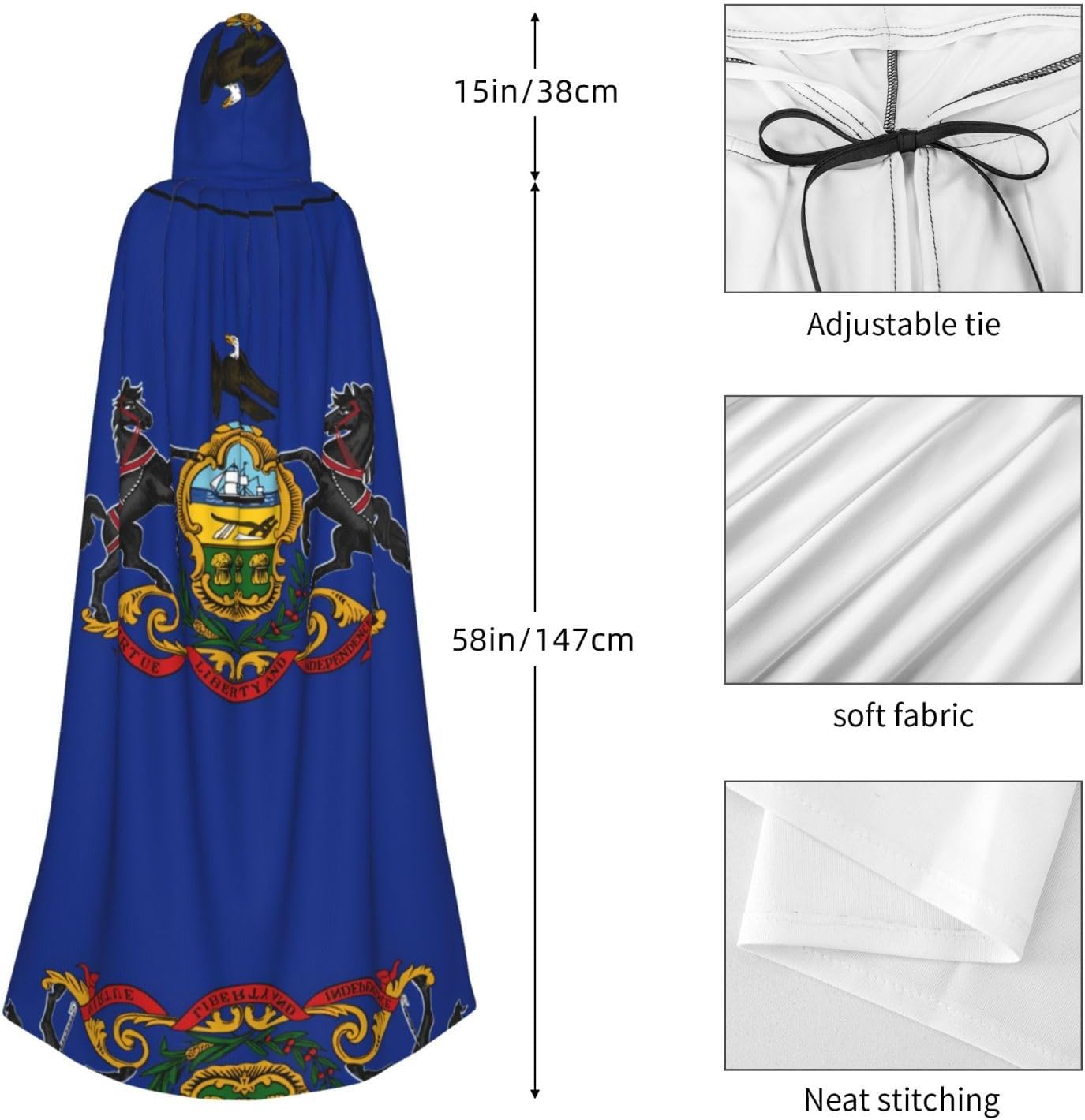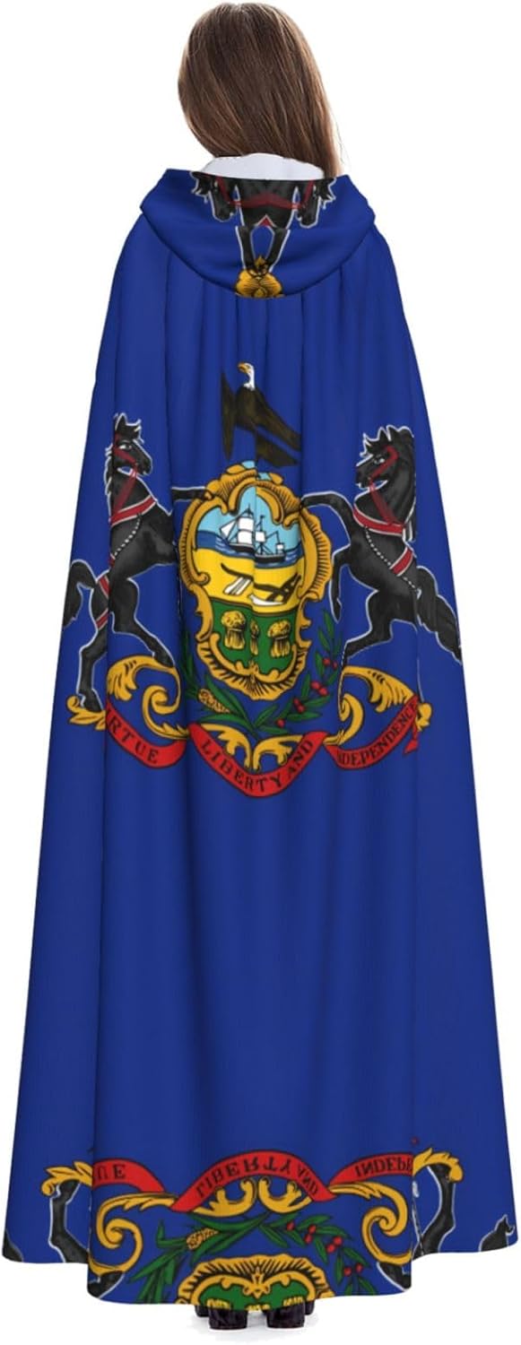 Mantello con cappuccio per adulti con bandiera della Pennsylvania, con papillon, senza cerniera, adatto per Halloween, costumi cosplay, costumi da palcoscenico, feste in maschera, feste a tema, balli, fumetti, ecc. Può essere utilizzato per feste, martedì grasso, Halloween, feste in costume e molto altro ancora.