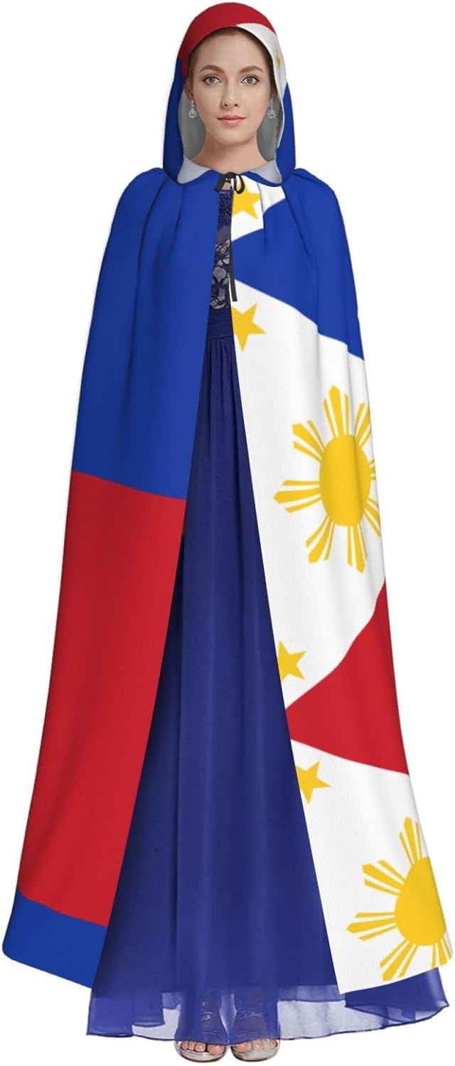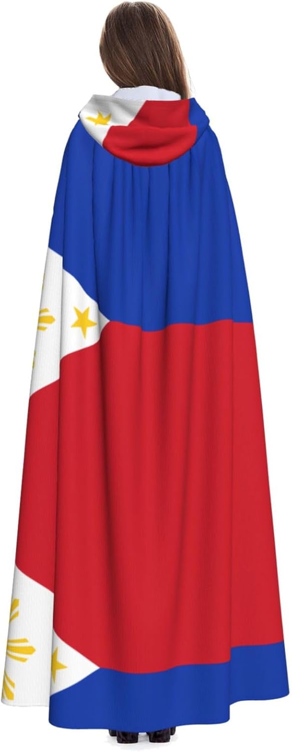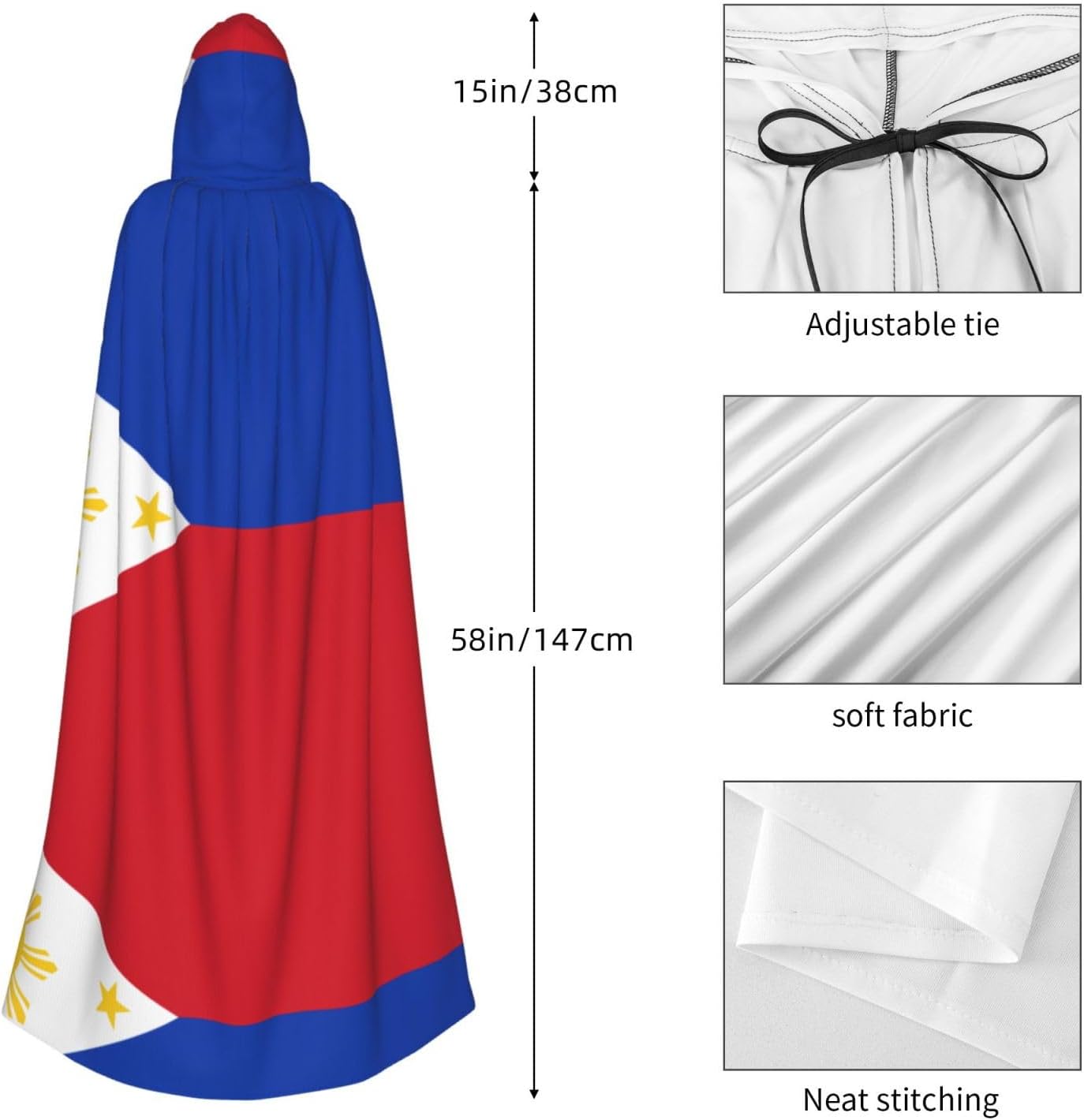 Mantello con cappuccio per adulti con bandiera delle Filippine con mantello con cappuccio oversize, è con papillon, senza cerniera, adatto per Halloween, costumi cosplay, costumi da palco, mascherata, feste a tema, balli, fumetti, ecc. Può essere utilizzato per feste, martedì grasso, Halloween, feste in costume e molto altro ancora.